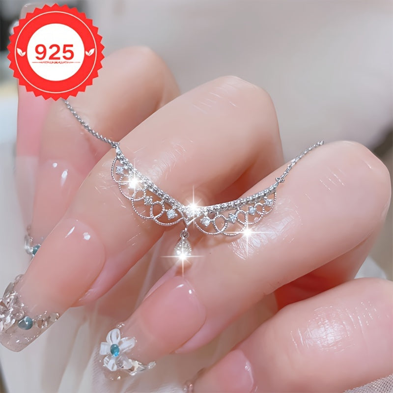 Light and elegant, this fashionable necklace is suitable for daily wear and parties. Crafted in S925 silver with a lace pattern design.