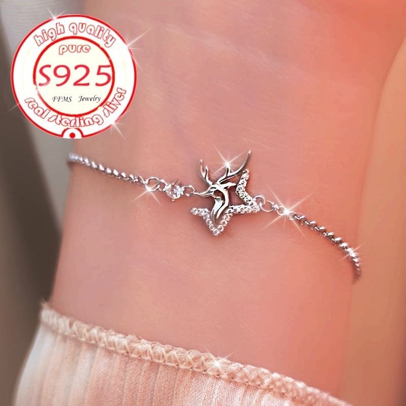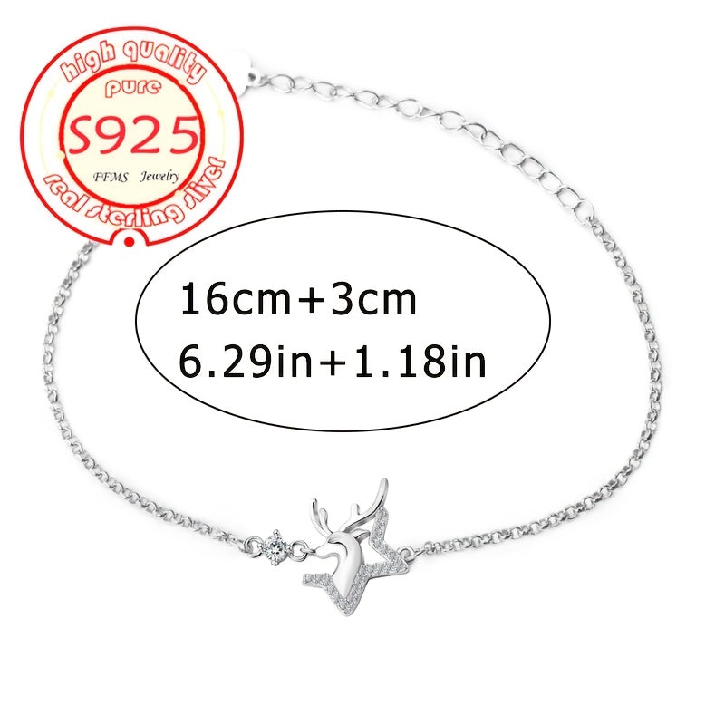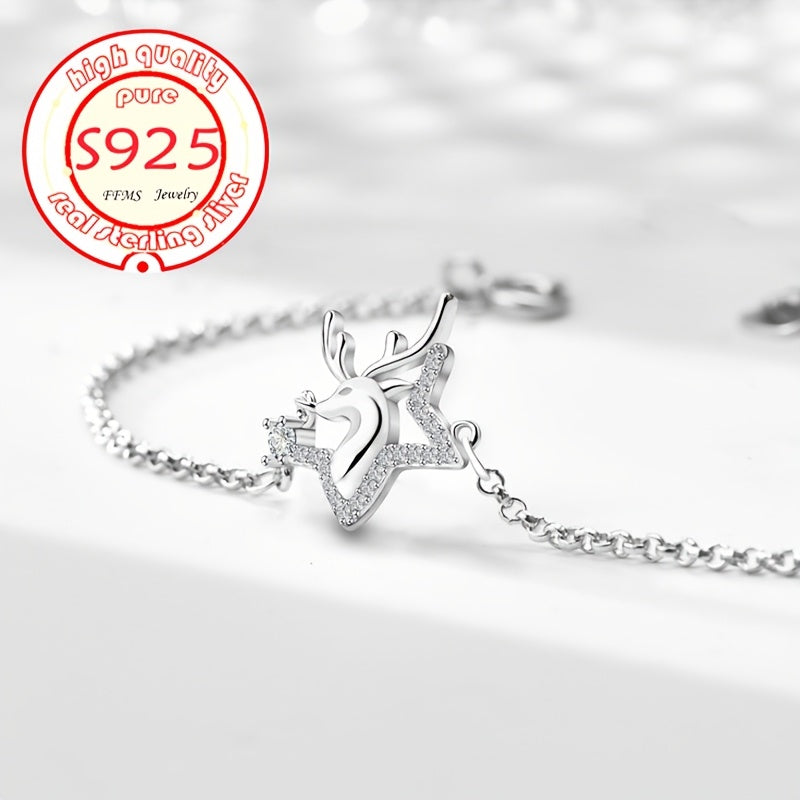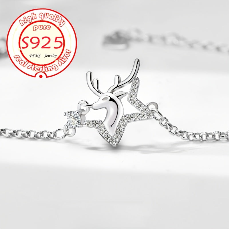 This sterling silver reindeer bracelet features zirconia, weighs 3.6g, and is ideal for daily wear. Perfect as a gift for women.