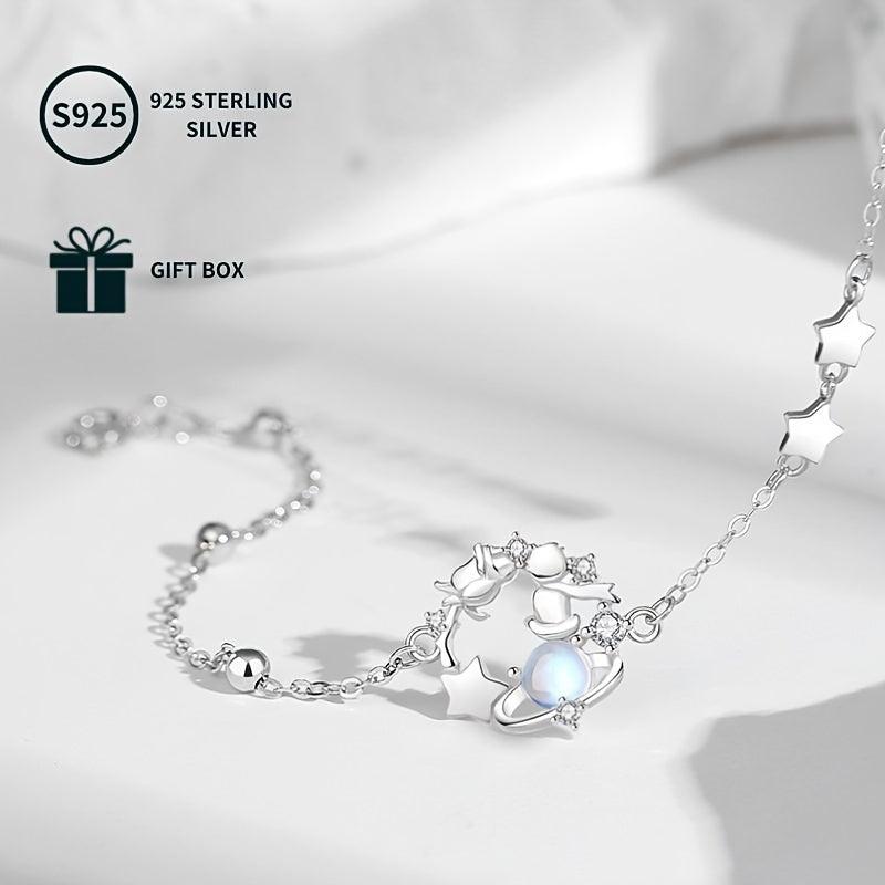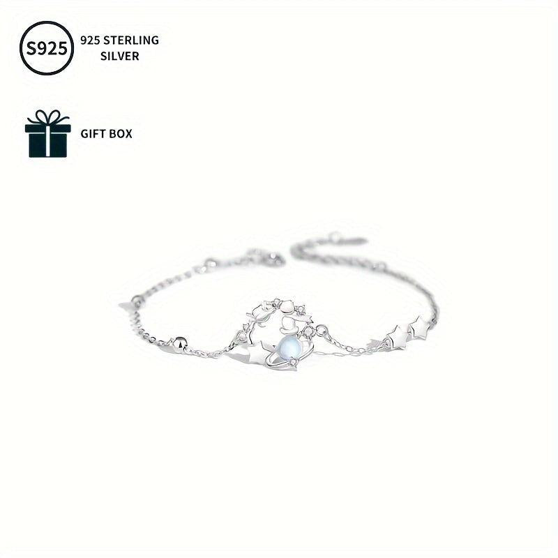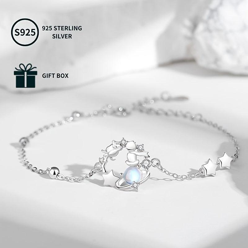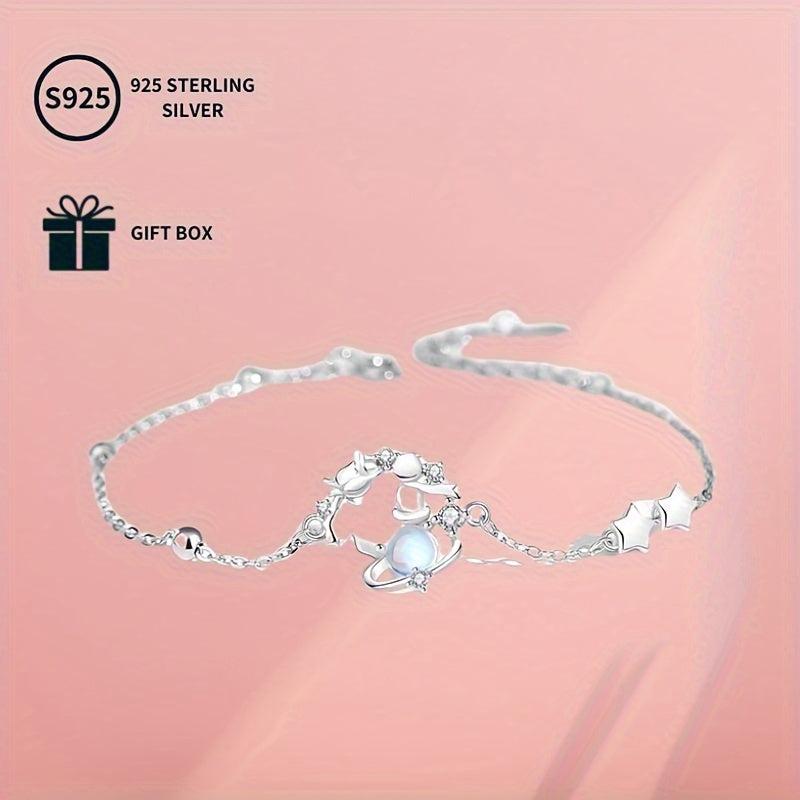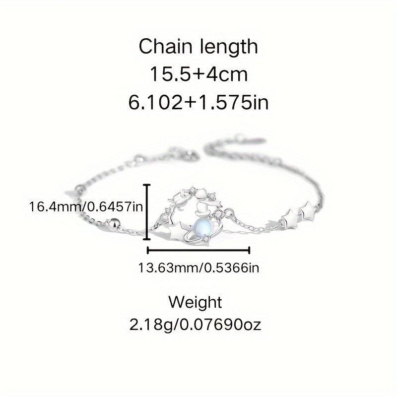 This S925 sterling silver bracelet features a stunning rose planet moonstone design, weighing 2.18g. It is perfect for mothers, parties, celebrations, and banquets with its retro style theme decorations.