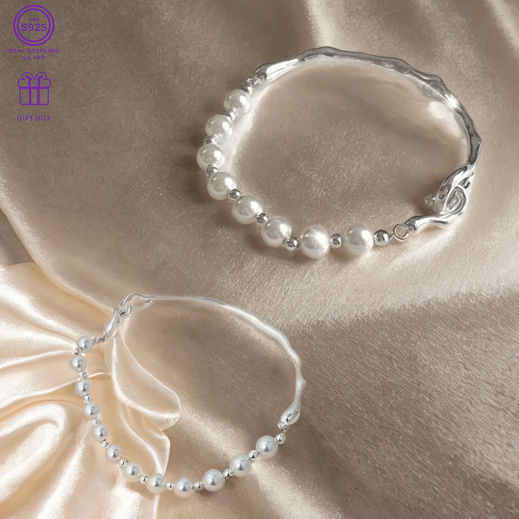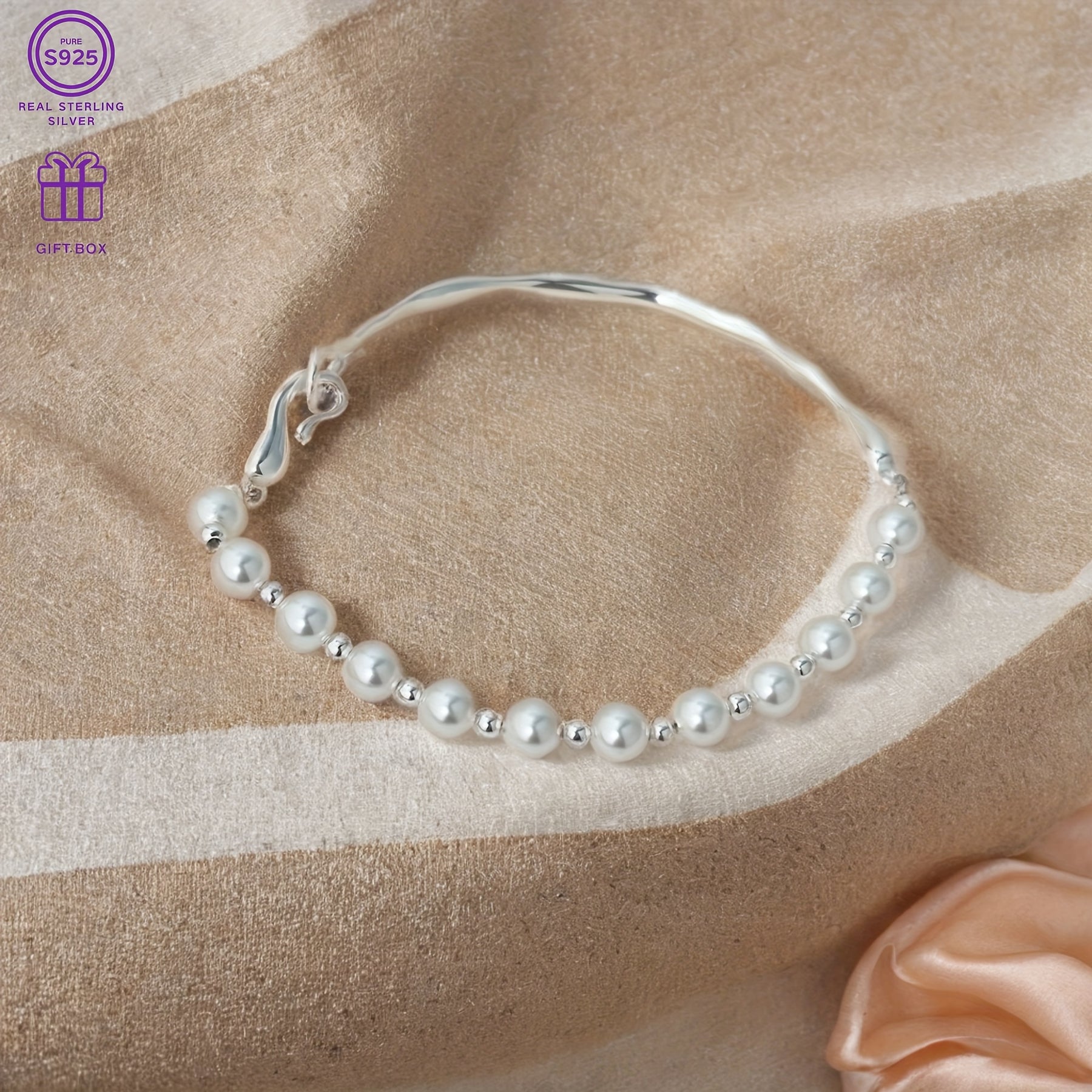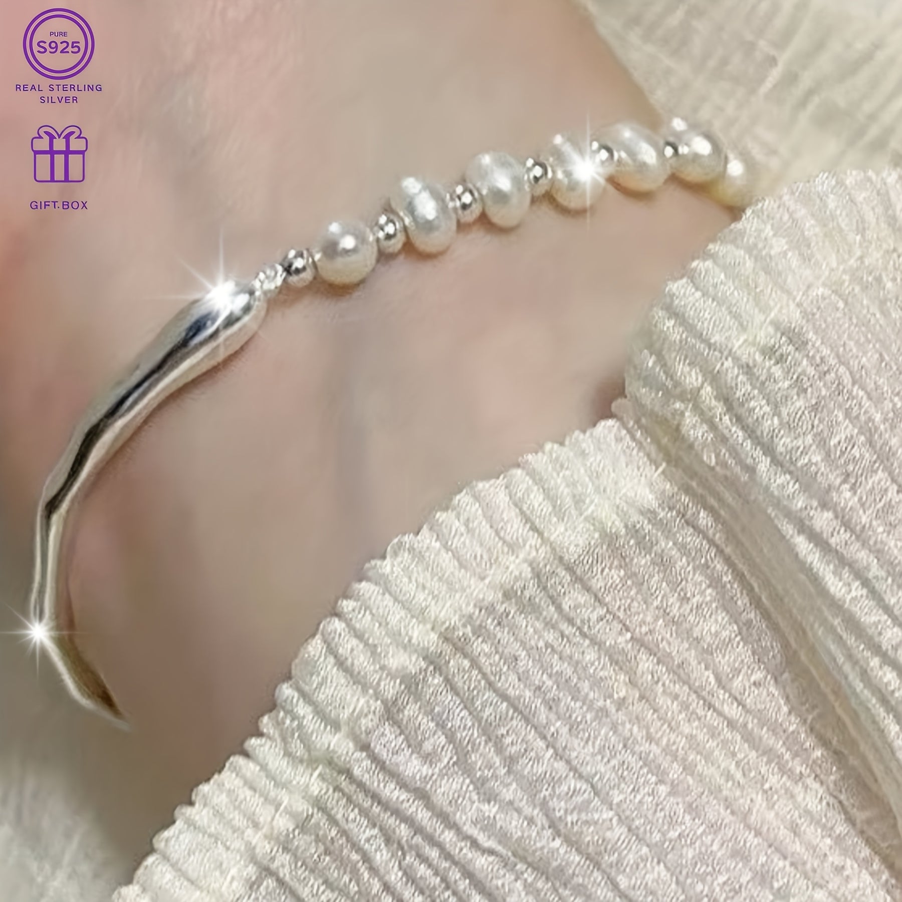 Unique silver bracelet with varying bead sizes and patterns. Crafted with natural freshwater pearls for an elegant look.