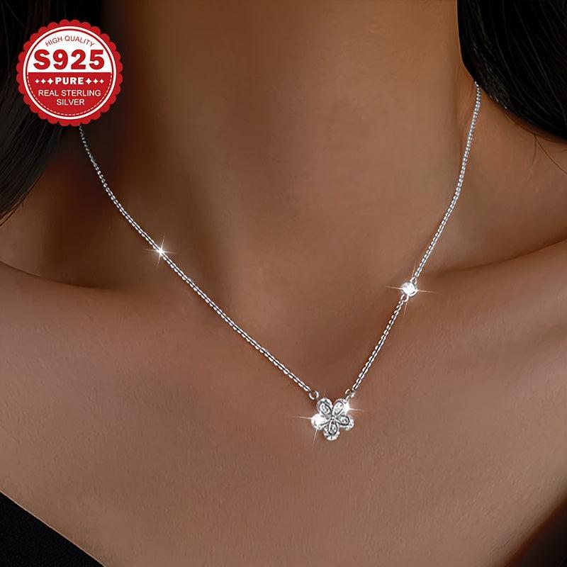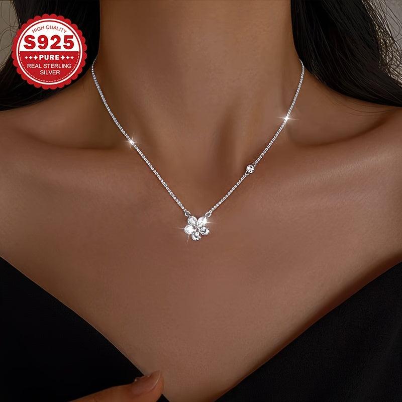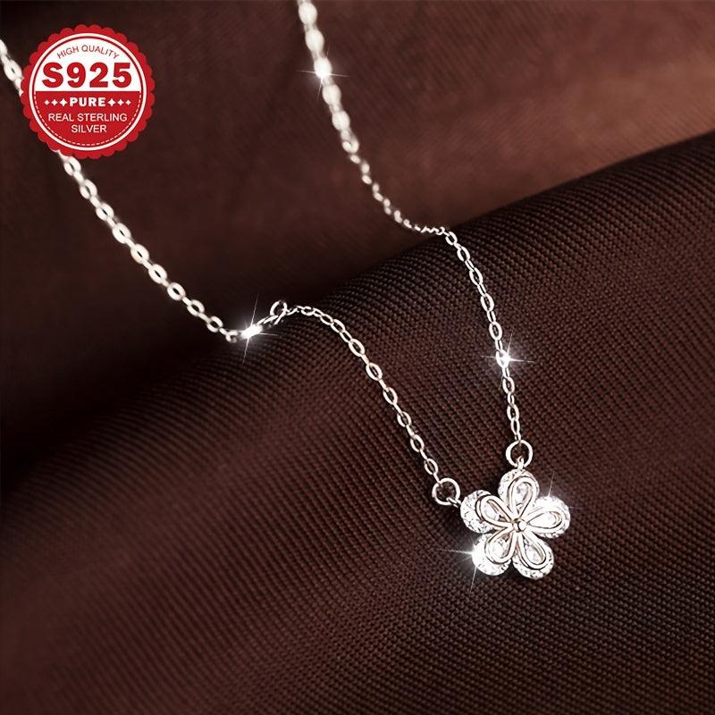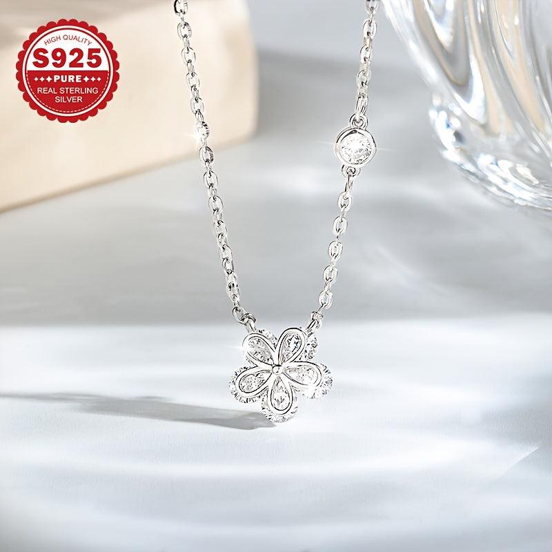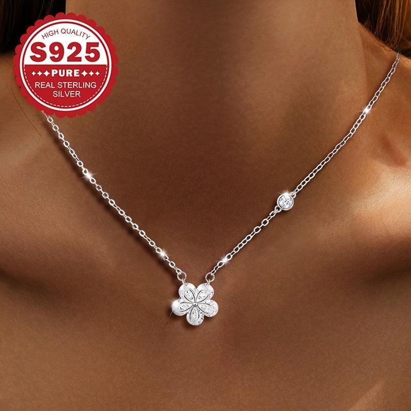This stunning S925 pure silvery necklace features a flower round zirconia design that is classic and suitable for daily wear. It is low allergy and weighs only 3.8g, making it a perfect gift for your girlfriend.
