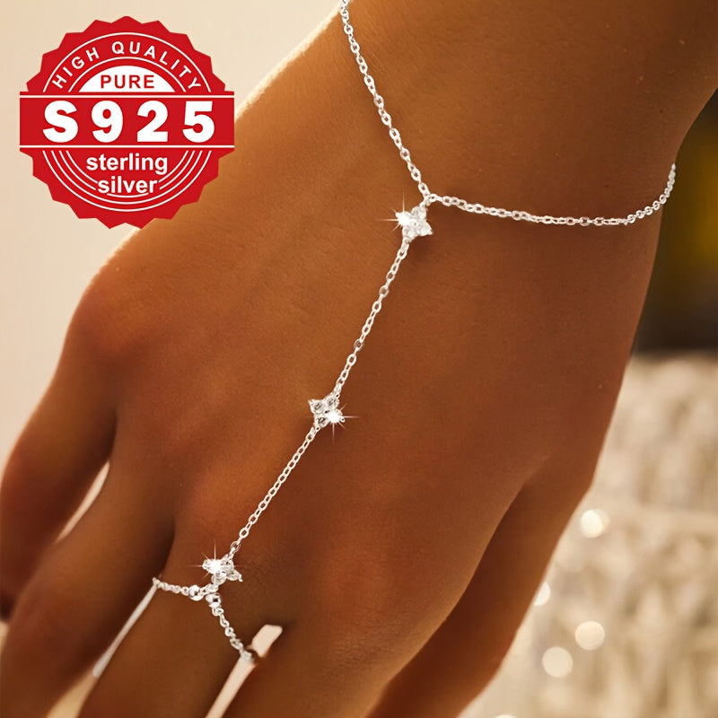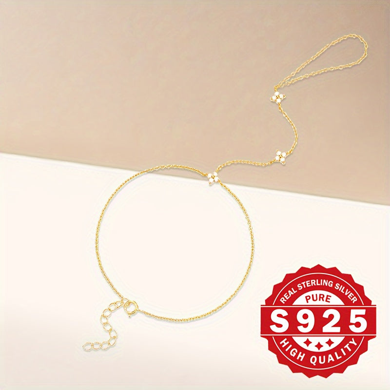 This elegant bracelet features a four leaf clover design set with synthetic zirconia. It is hypoallergenic and perfect for gifting.