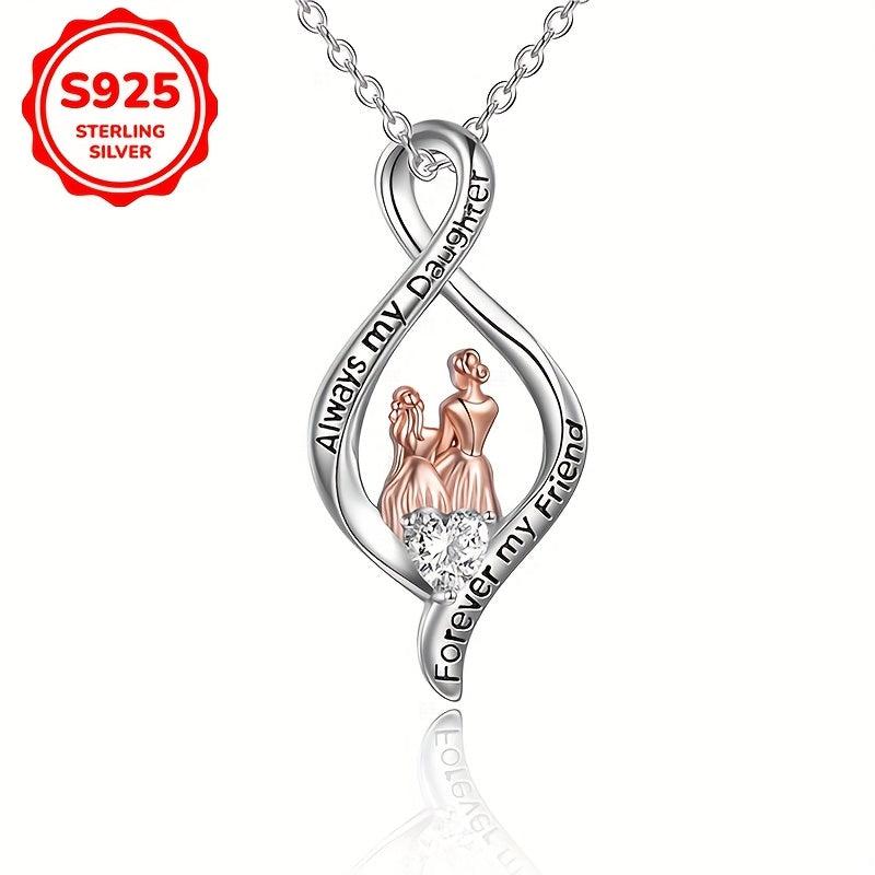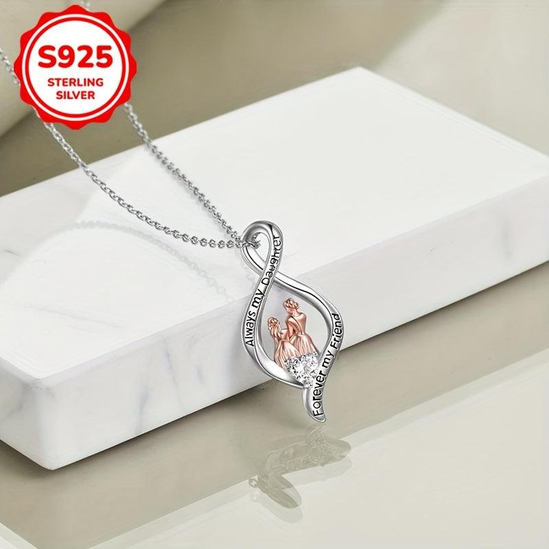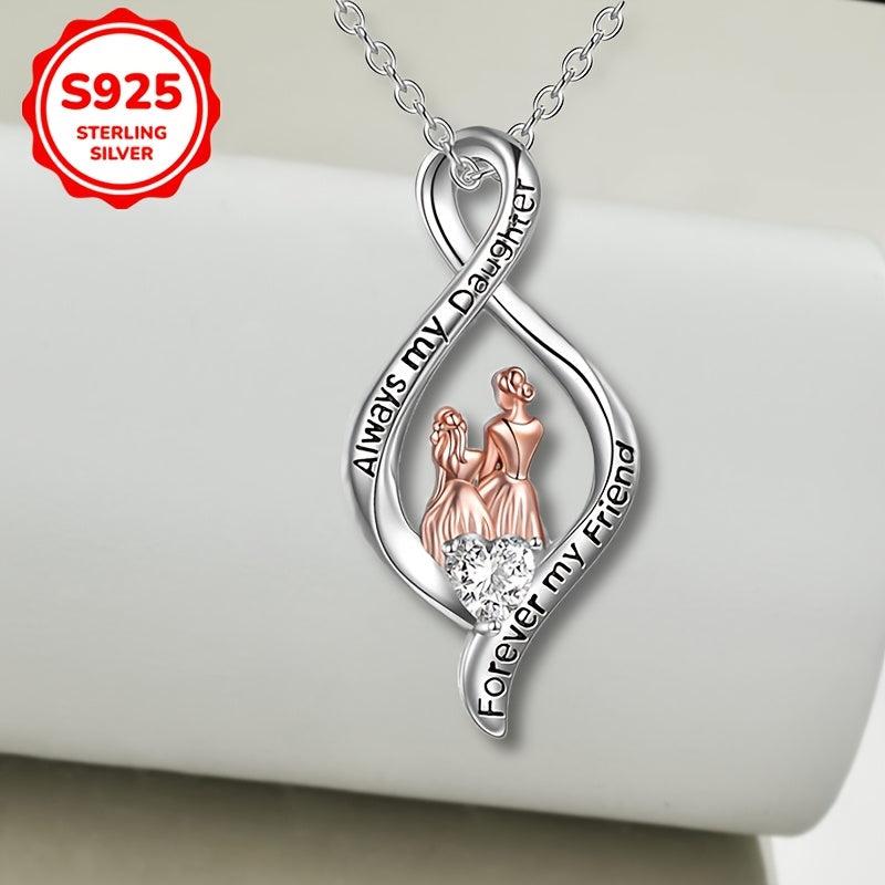 This beautiful pendant necklace features a heart design with synthetic zirconia, symbolizing the love between mother and daughter. A perfect gift for mothers to show appreciation.