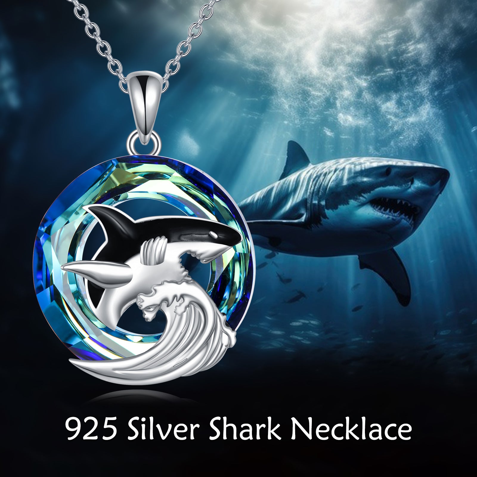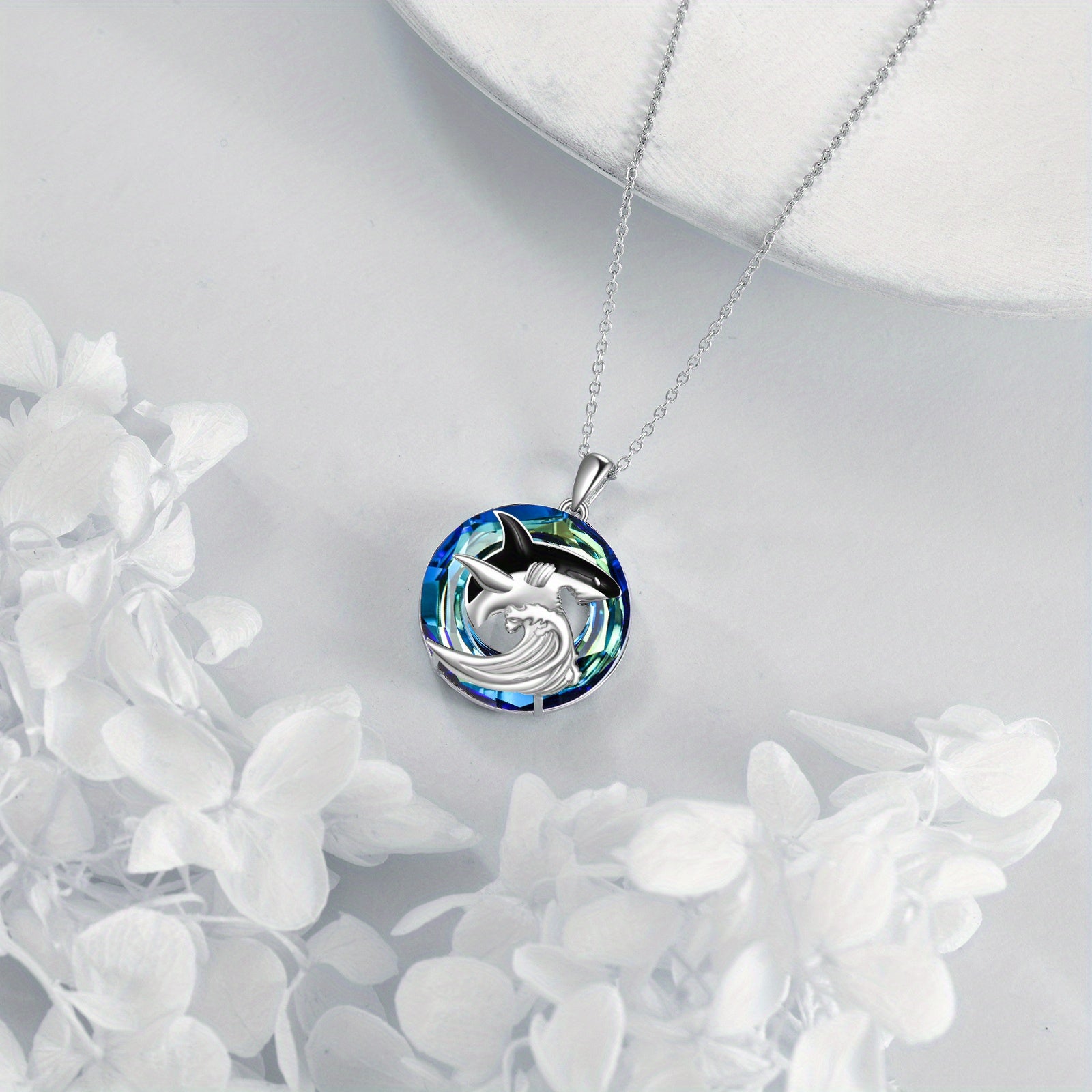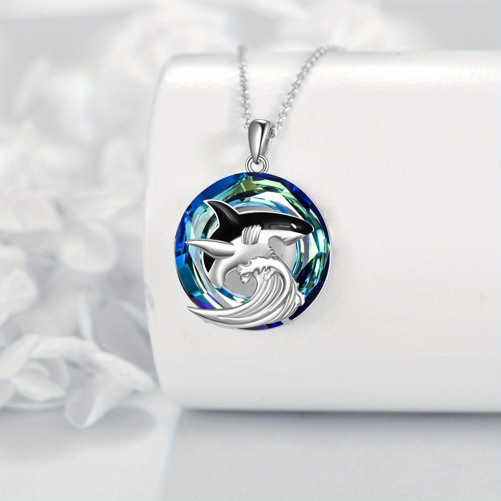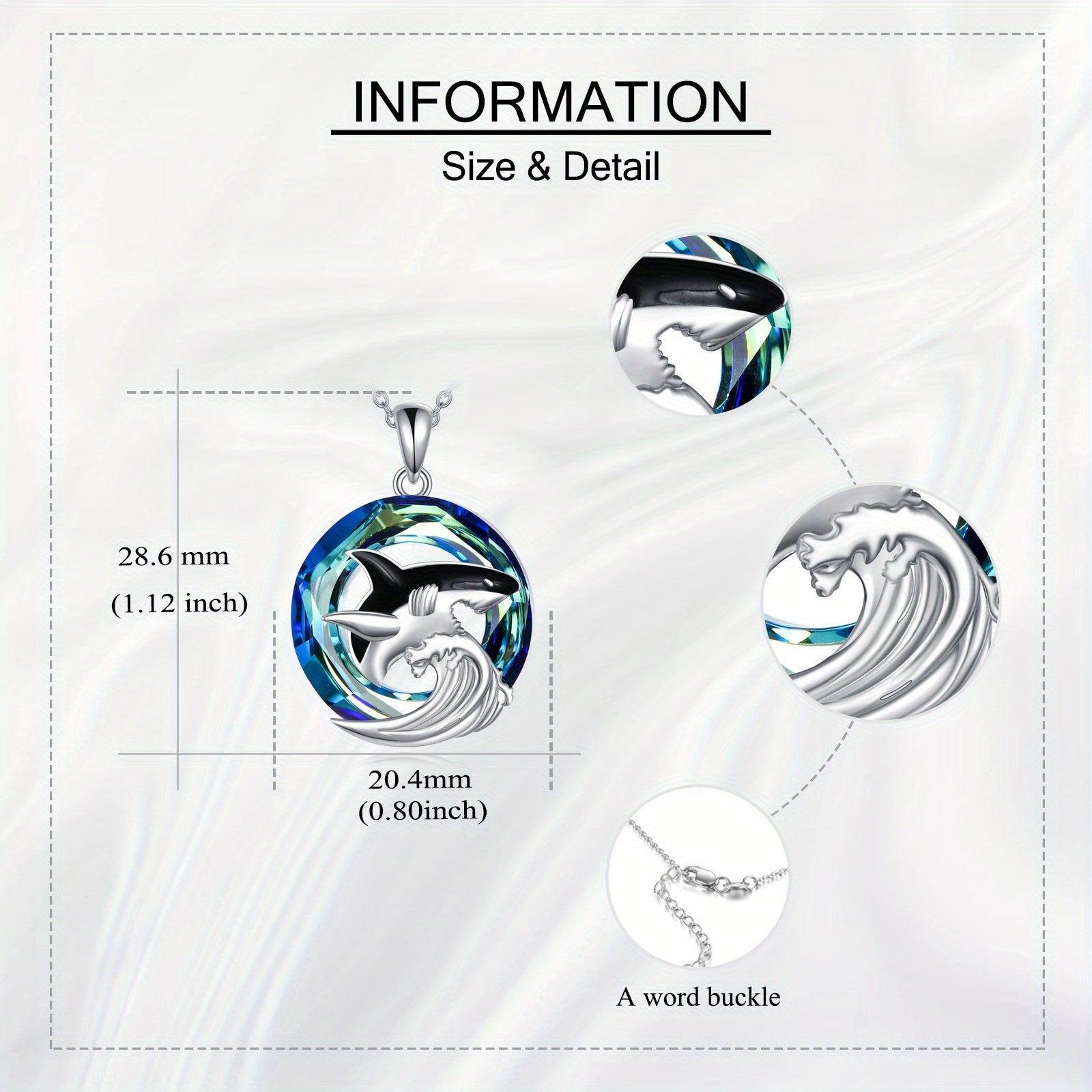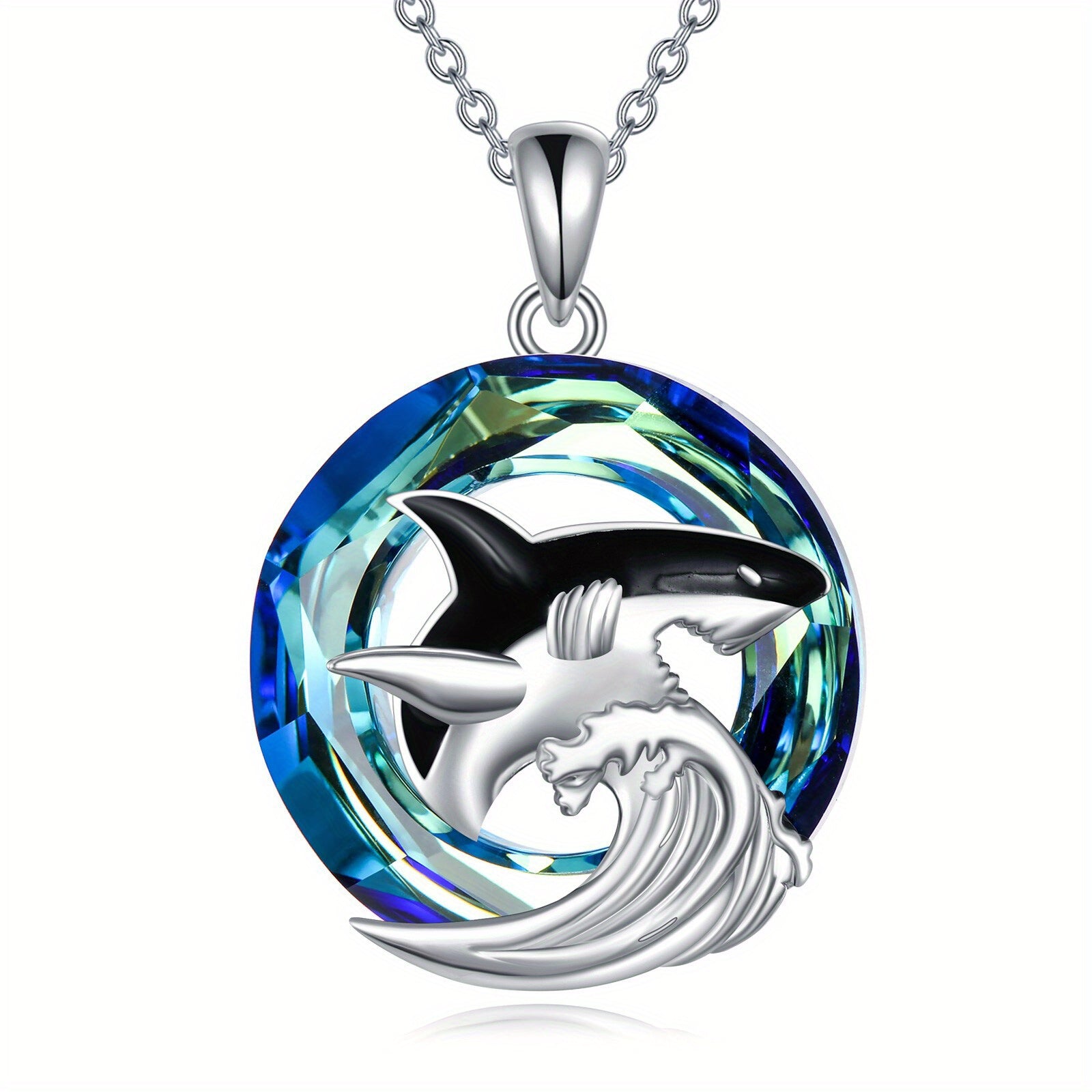This stunning shark pendant necklace is crafted from 925 sterling silver with synthetic crystal accents. The design features a shark swimming through a wave, creating a dynamic and eye-catching piece of jewelry. Perfect for shark lovers, this necklace makes a great gift for women and girls.