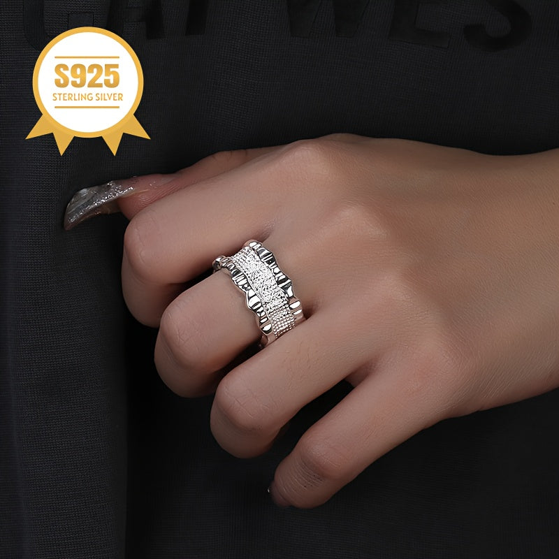 Unique and chic ring perfect for women with allergies. Ideal as a mother's gift. Features a small irregular wave sand surface for a geometric and stylish look.