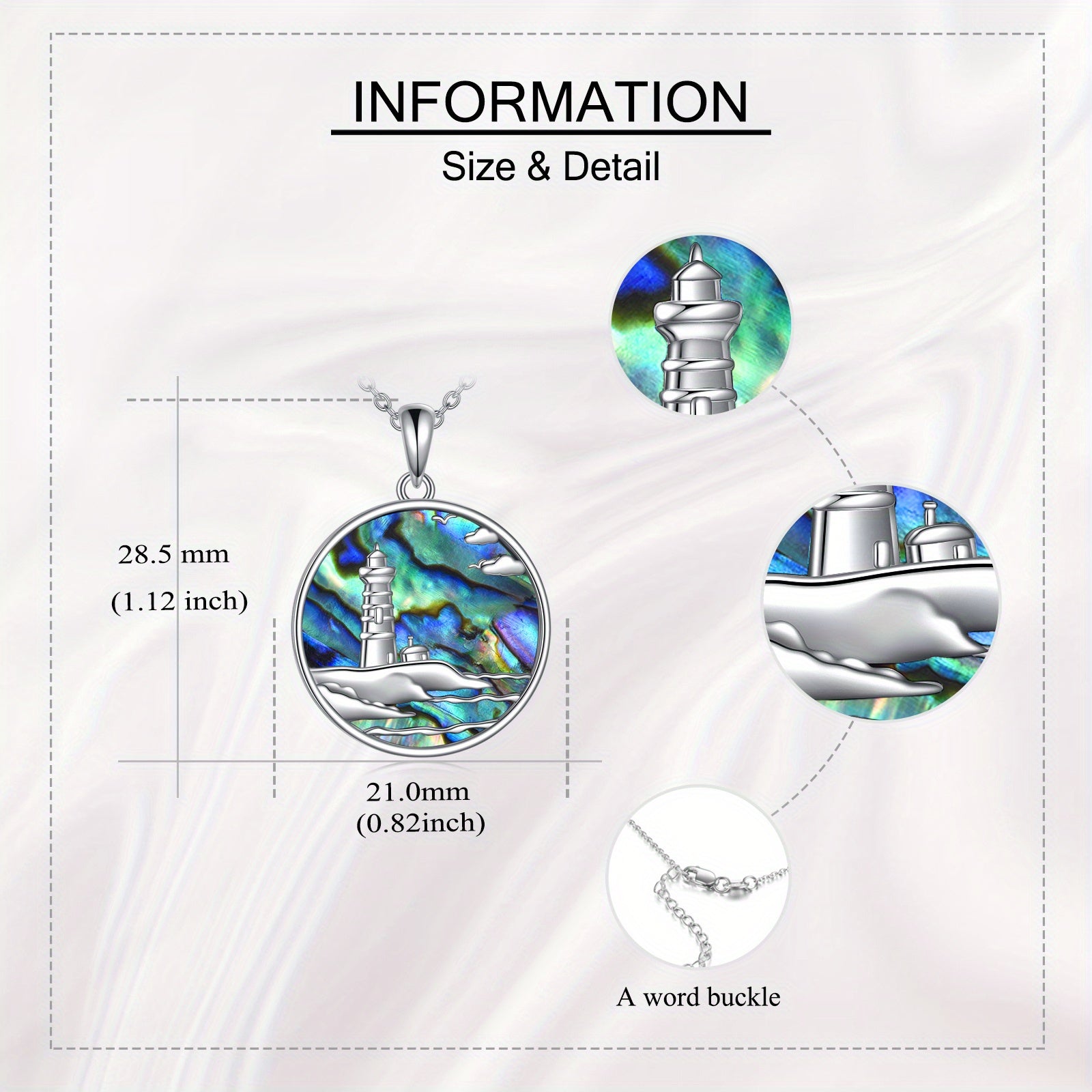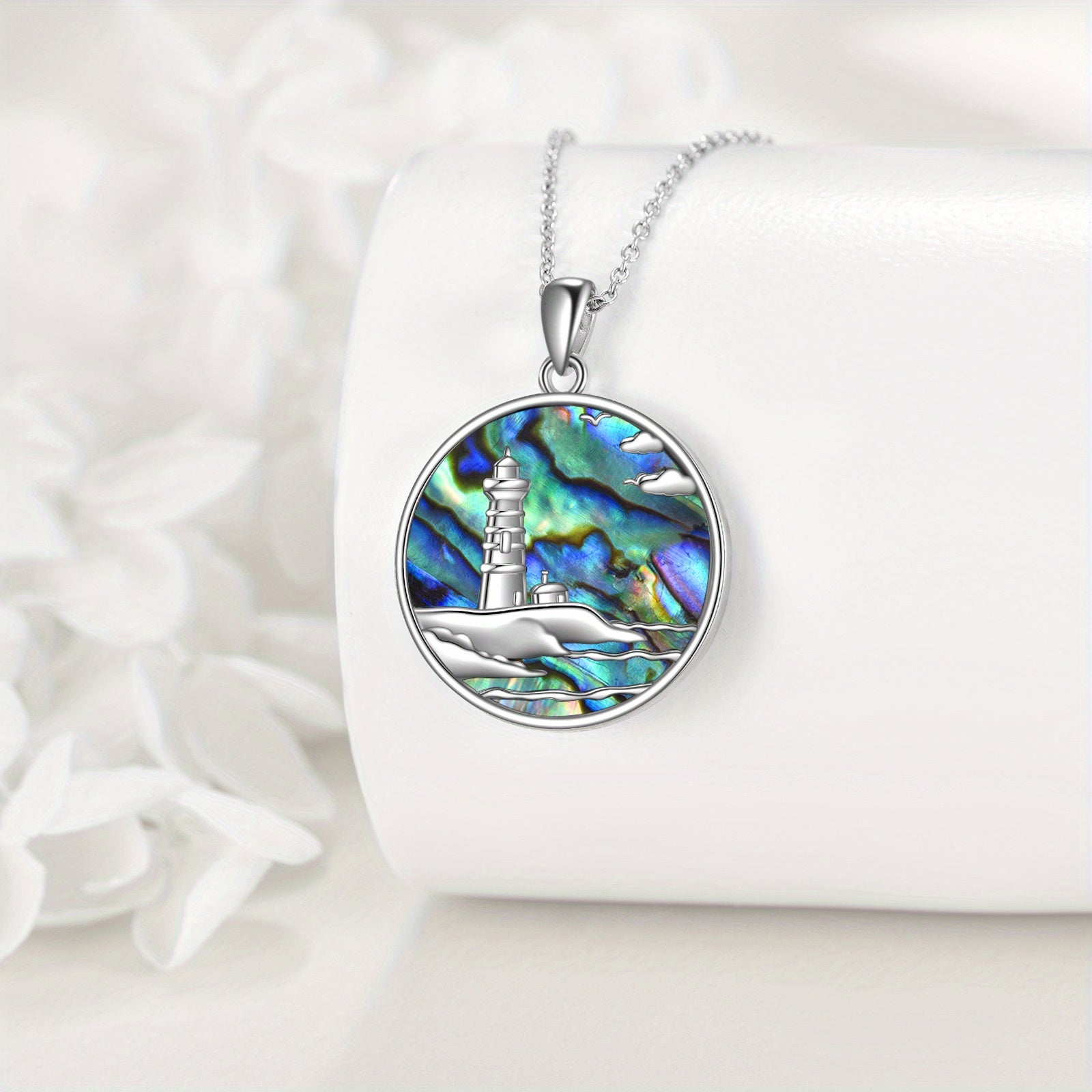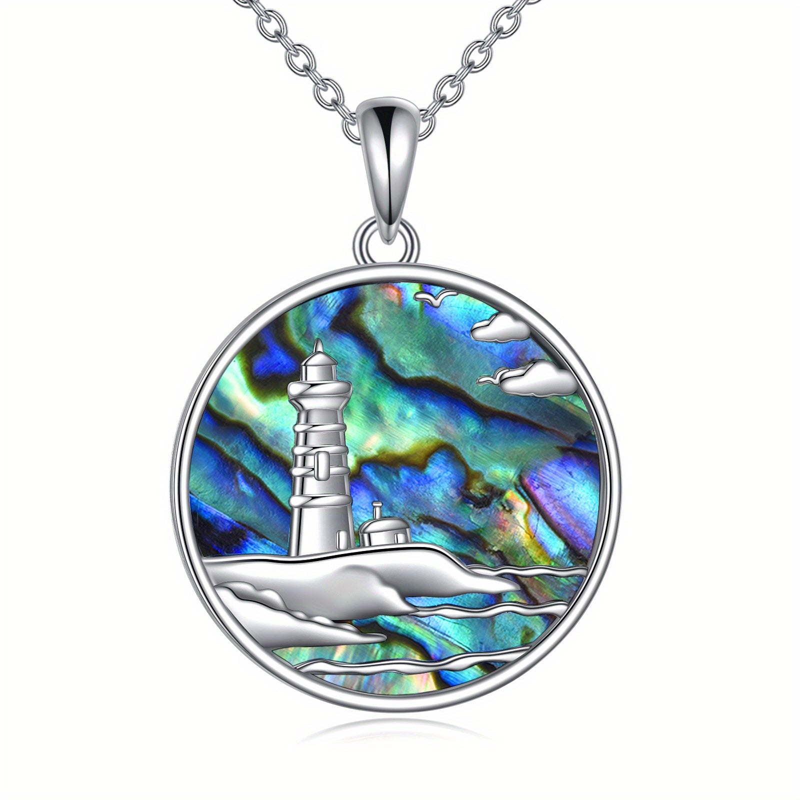 Beautiful lighthouse necklace crafted from 925 sterling silver with abalone shell accent, making it a perfect gift for women and girls.
