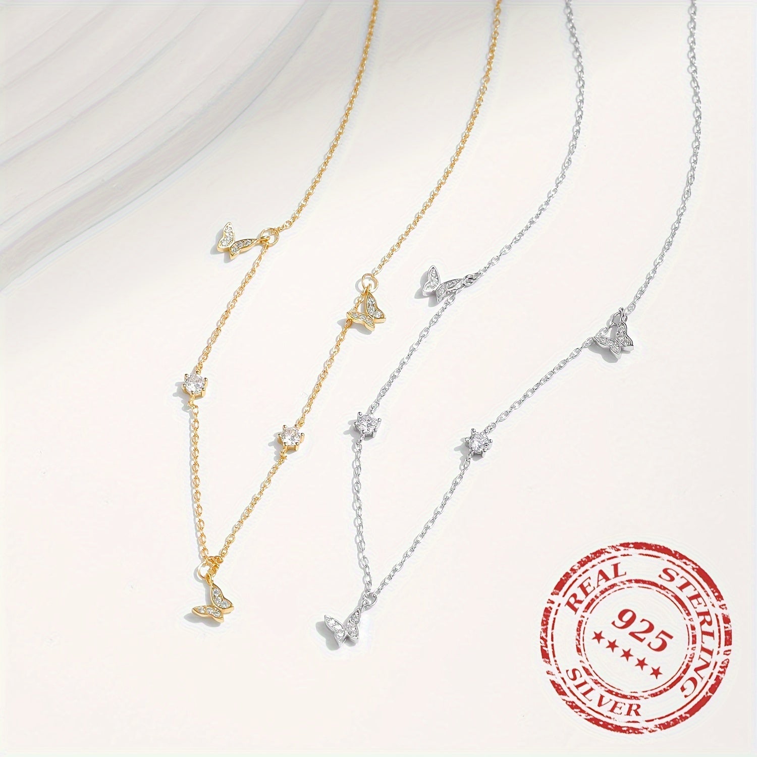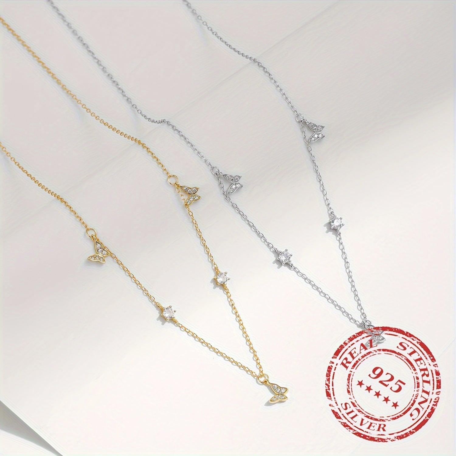 Elevate your style with this vintage S925 sterling silver necklace featuring delicate butterfly and star charms adorned with synthetic cubic zirconia. Perfect for layering.