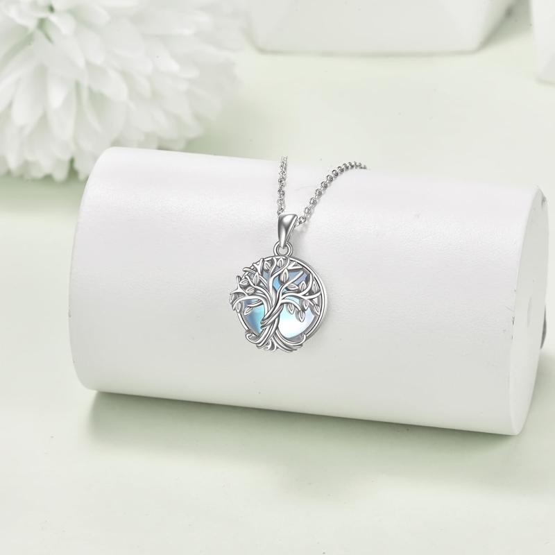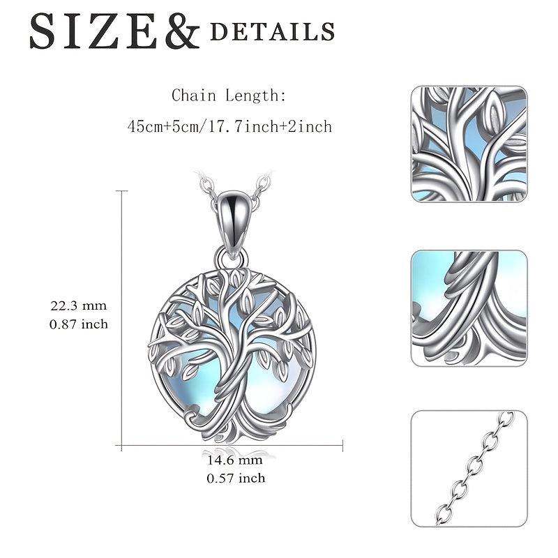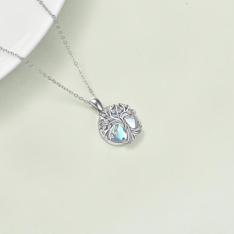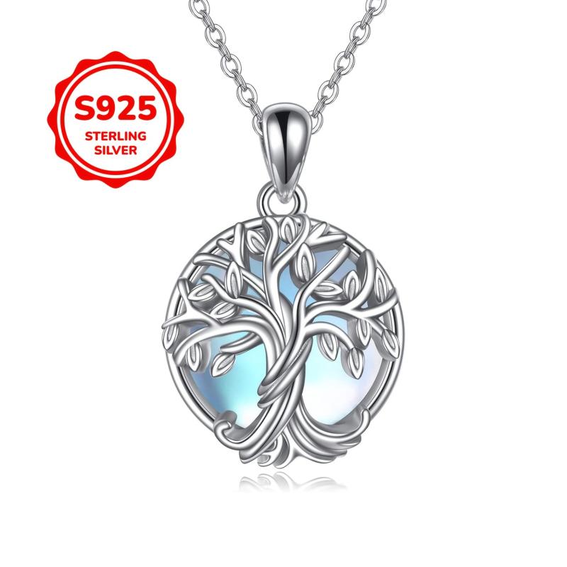 Embrace eternal vitality with this stunning necklace featuring a tree of life symbol. Crafted from S925 silver, the pendant is inlaid with moonstone, making it perfect for everyday wear.