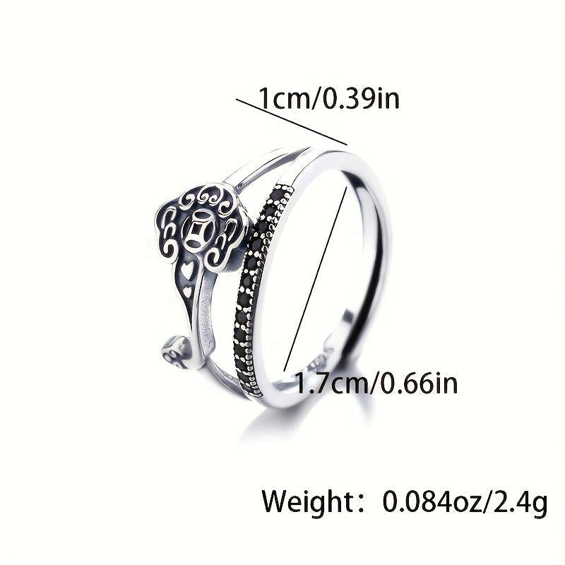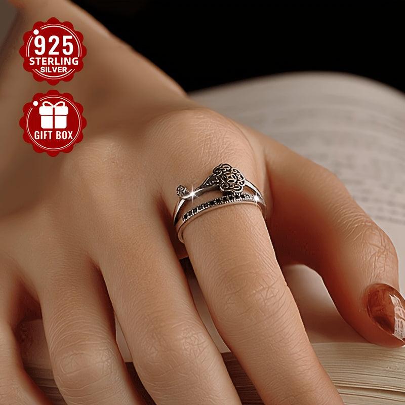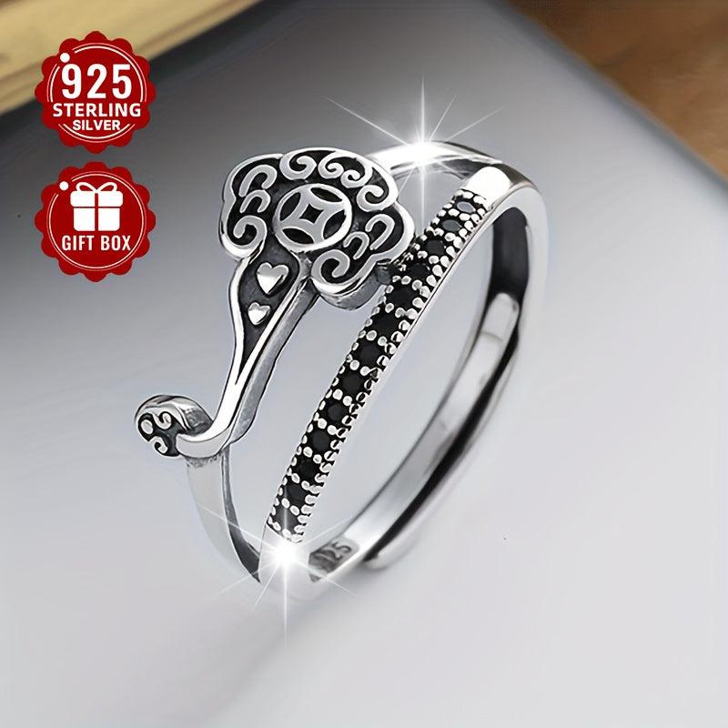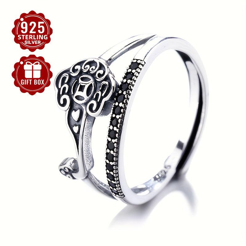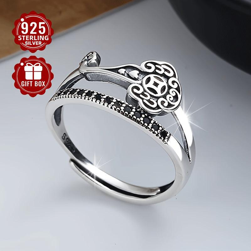 This stylish and unique ring for women features an artistic design in 925 sterling silver, symbolizing luck, wealth, and peace. The ring has a niche suitable for showcasing elegance.
