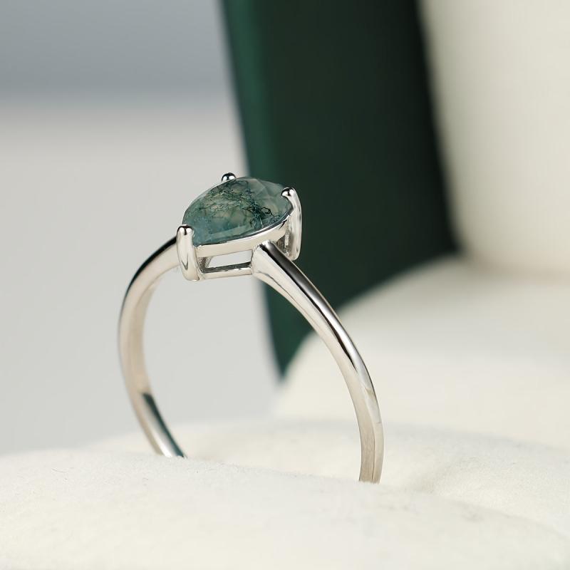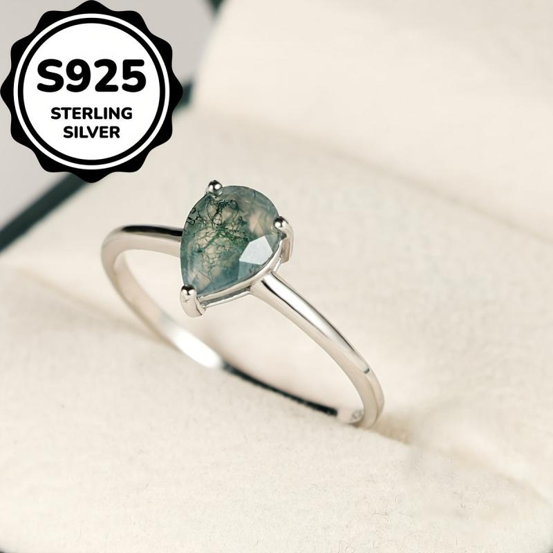 Exquisite S925 silver ring featuring a genuine water grass agate stone. Each ring is unique with a natural pattern.