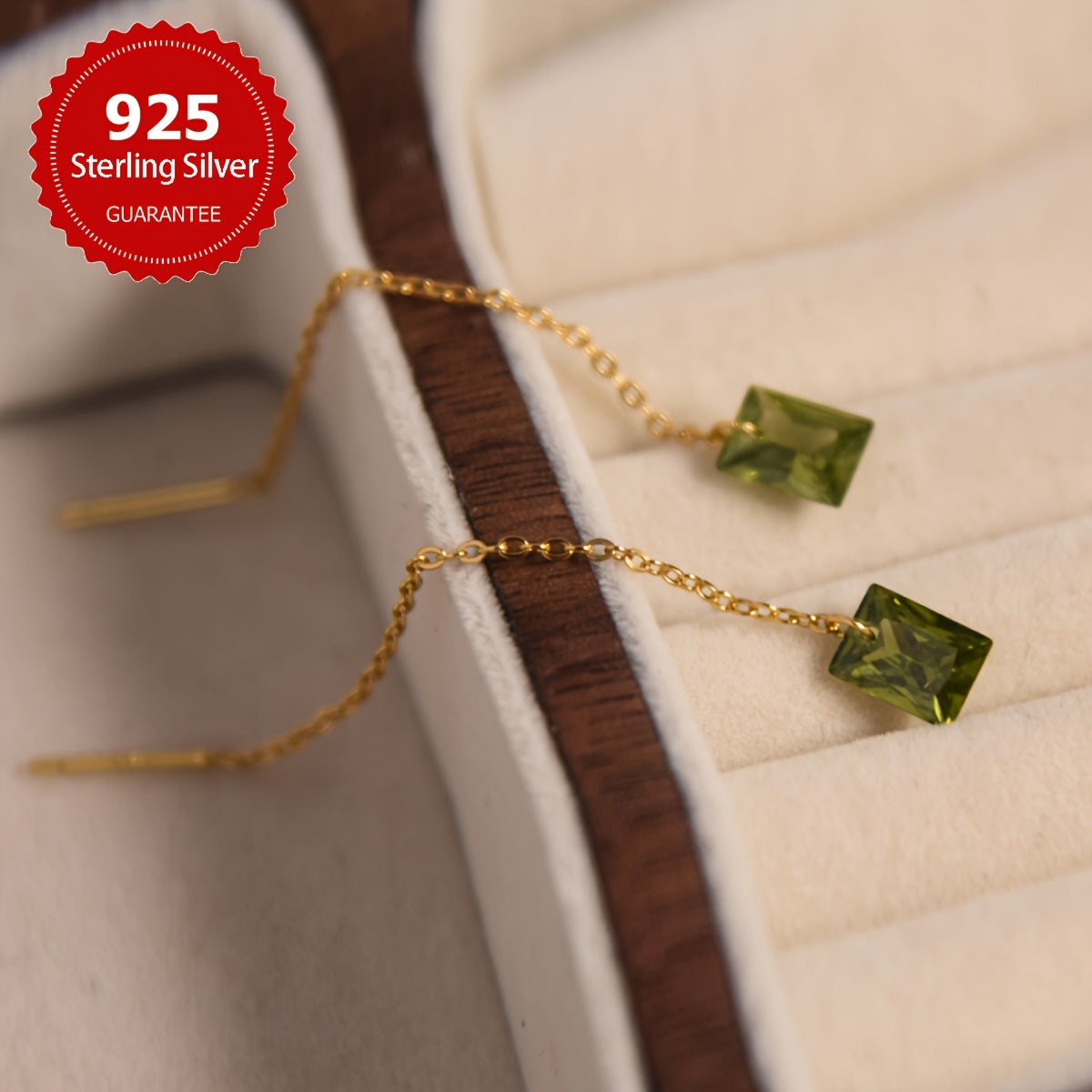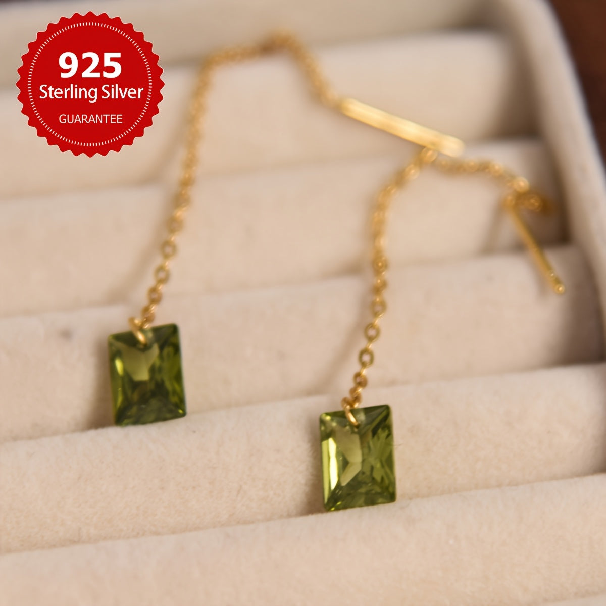 Elegant and timeless, these vintage olive green synthetic zirconia earrings are crafted with S925 pure silver. They feature a charming green stone and a classic silvery finish.