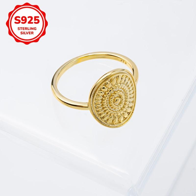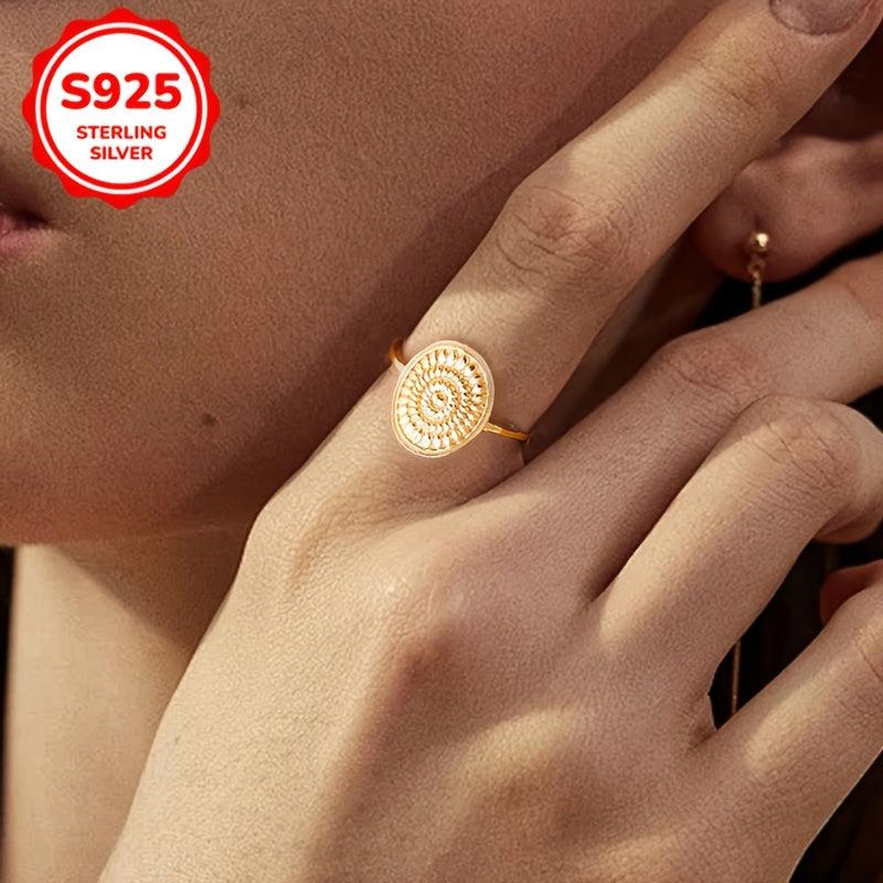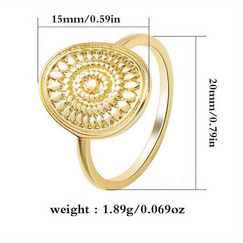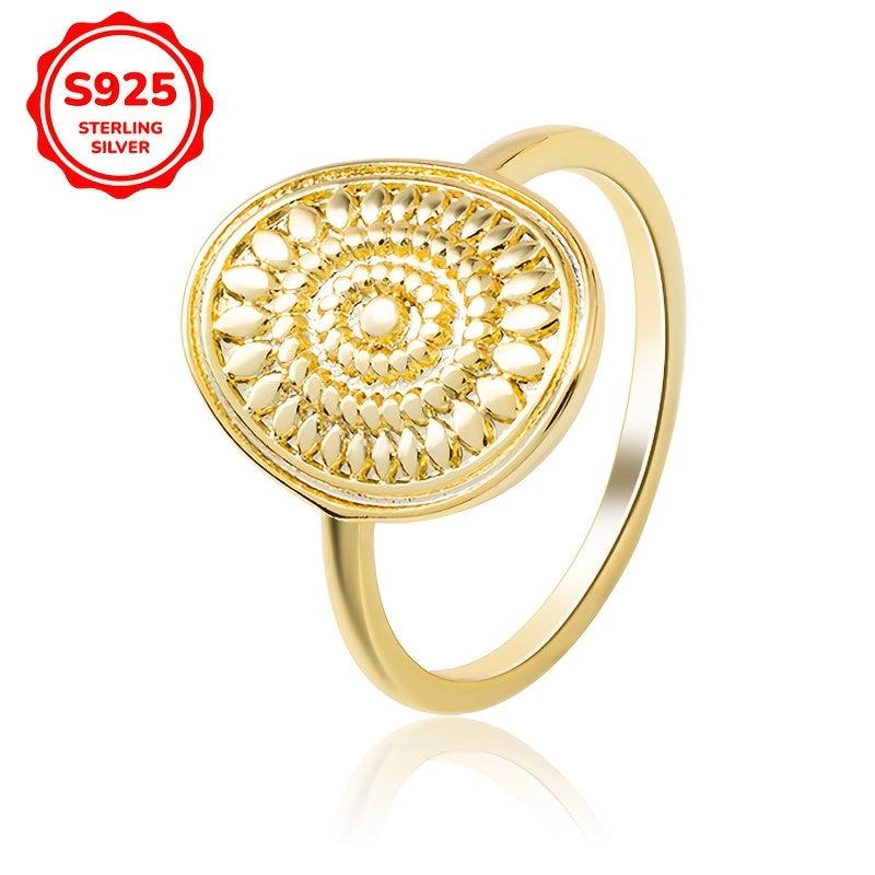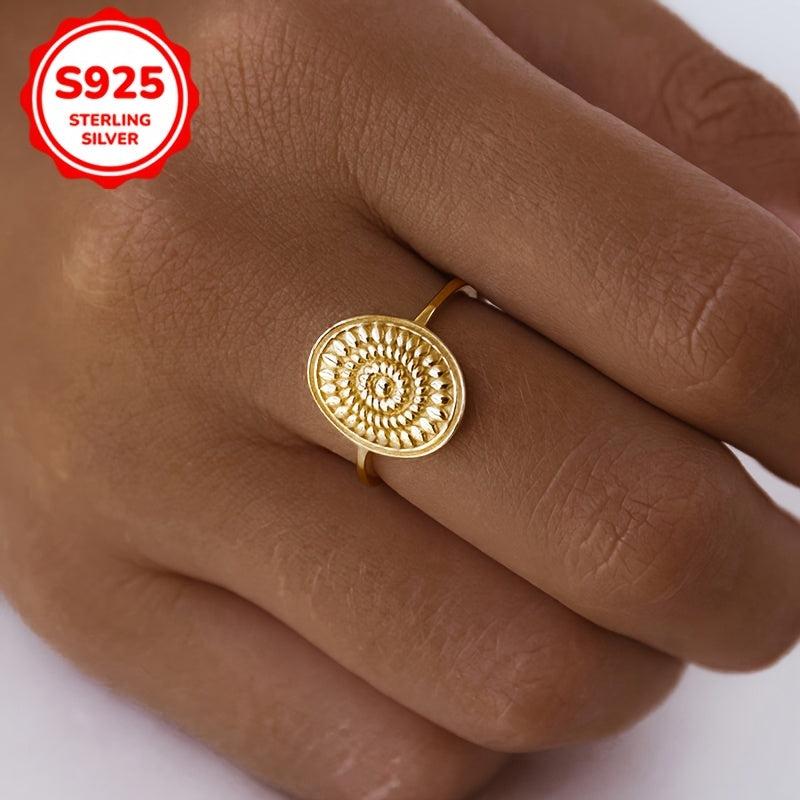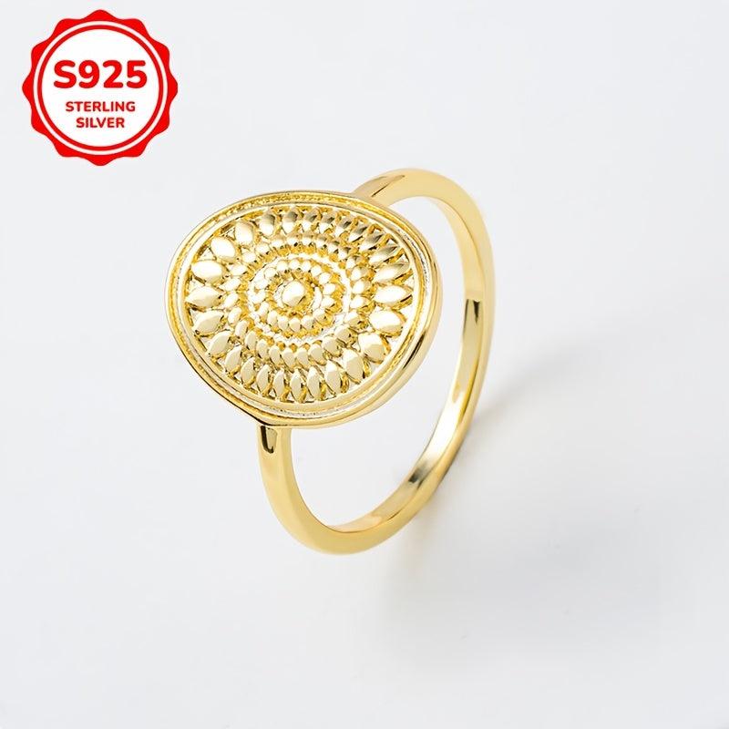 Add a touch of elegance with this vintage style S925 sterling silver ring featuring a sunflower embossed oval design. Lightweight and suitable for daily and vacation wear in all seasons.