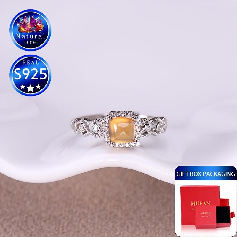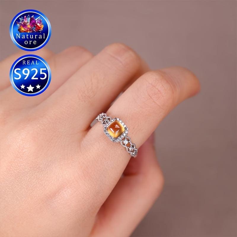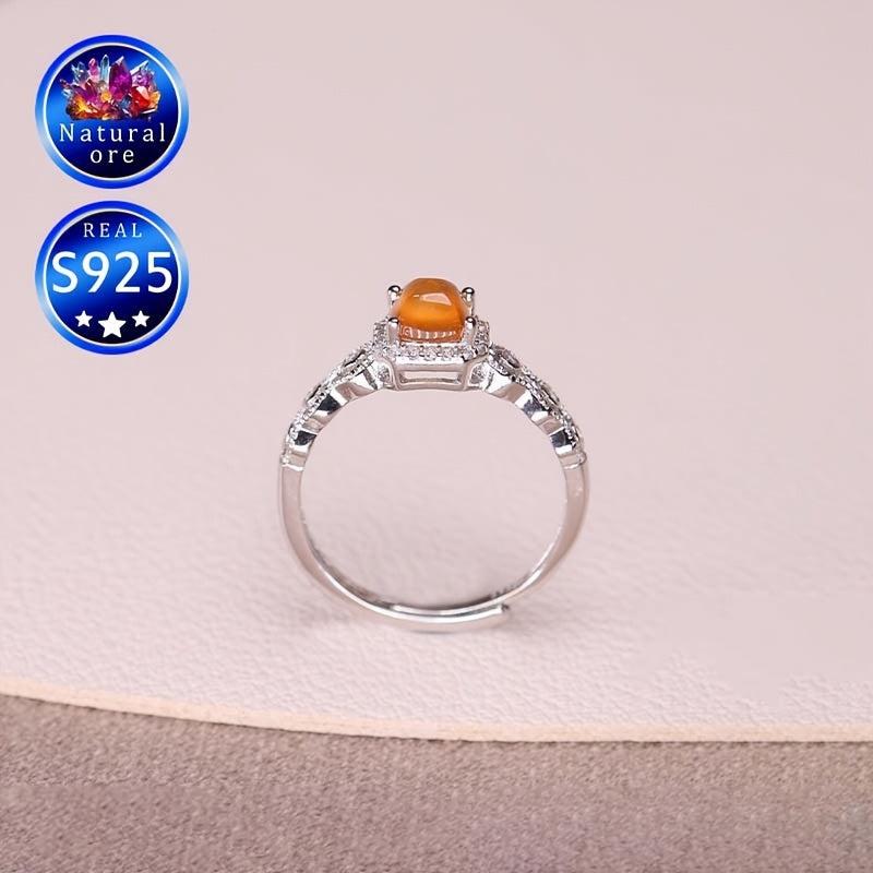 This stunning vintage ring features a natural orange sunstone mosaic inlay set in 925 silver with an adjustable opening.