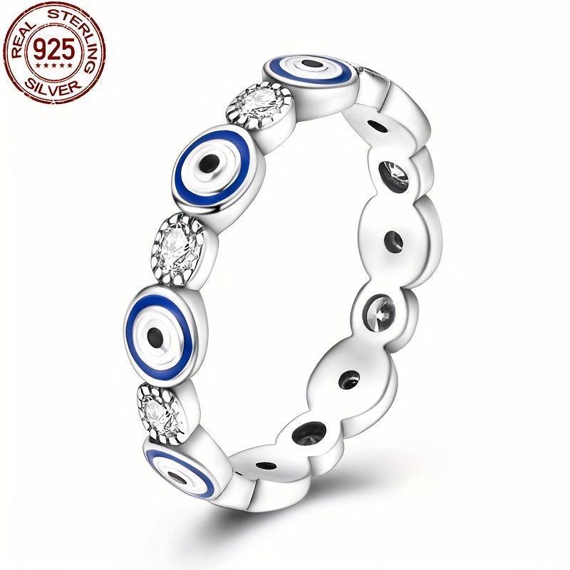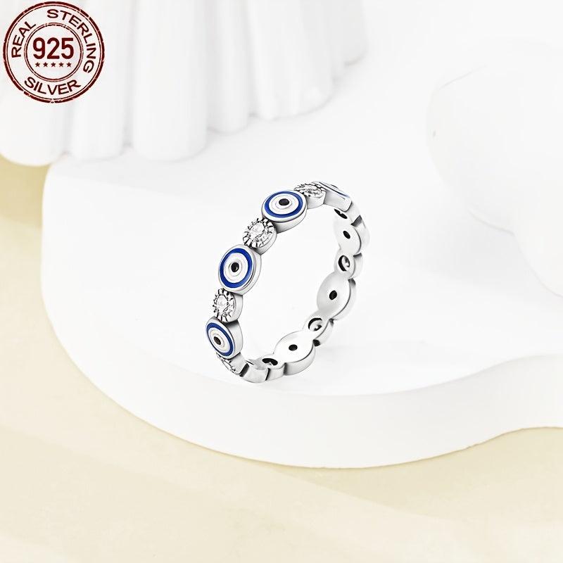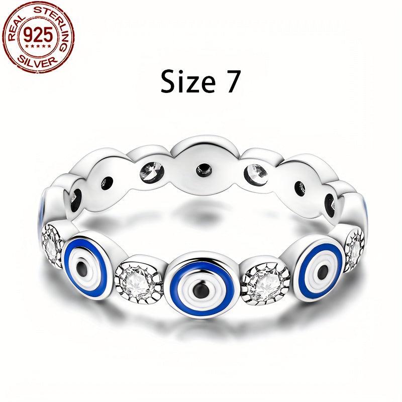 Add a touch of mystique with this Evil Eye ring featuring a synthetic stone set in 925 sterling silver. Perfect for daily wear or special occasions.
