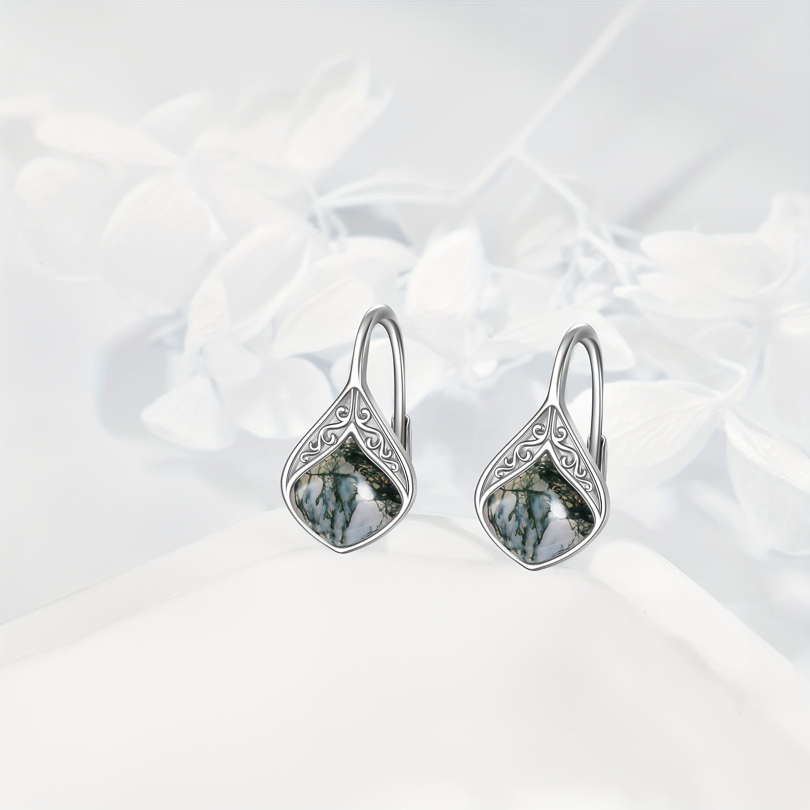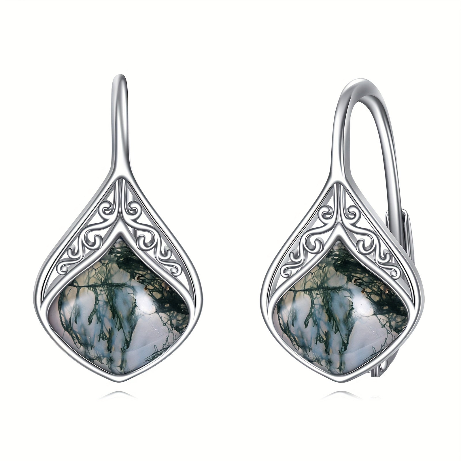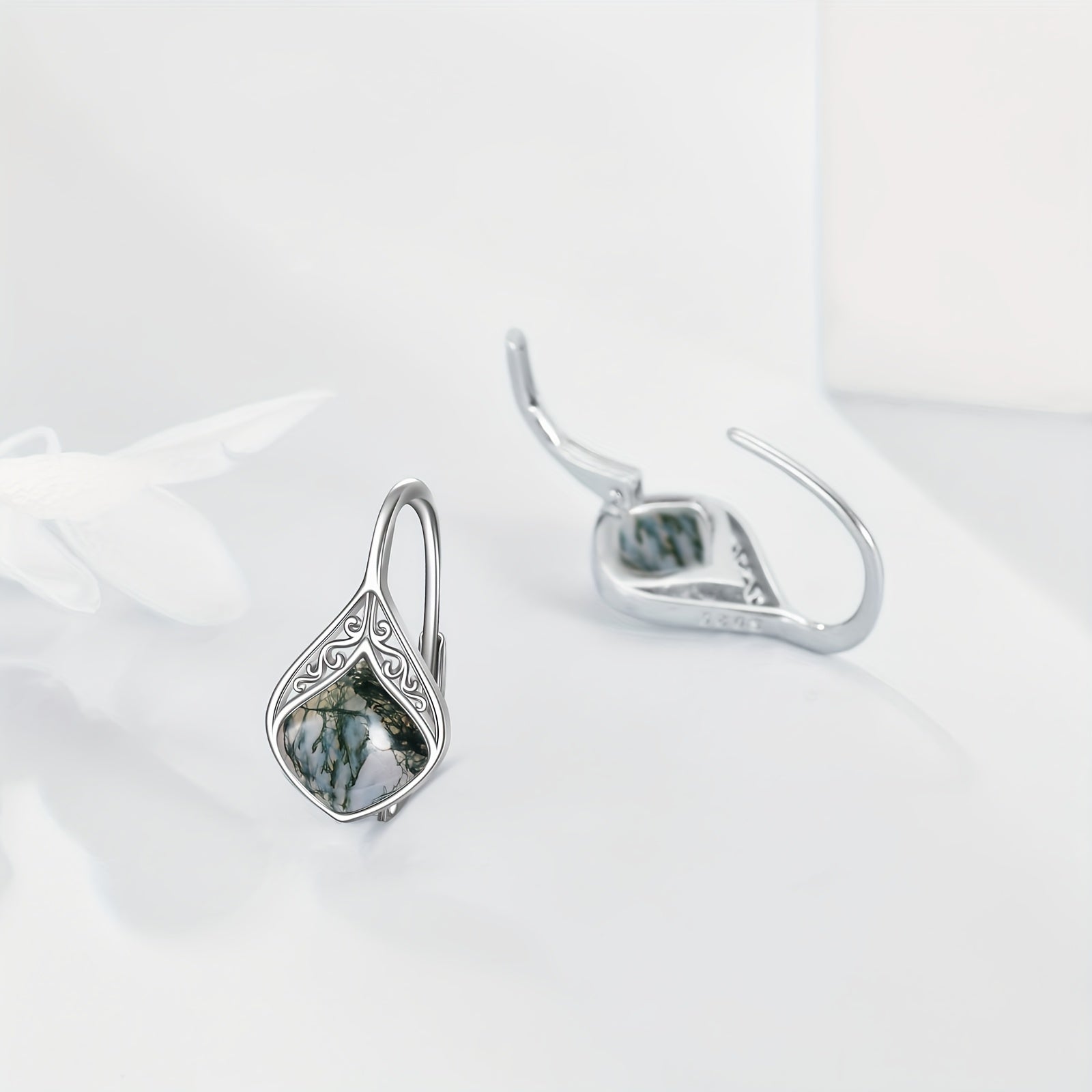 Elegant water grass agate teardrop earrings made from 925 pure silver. Perfect for women with sensitive ears.