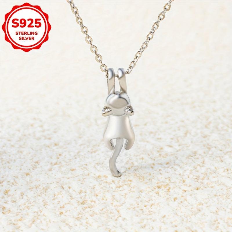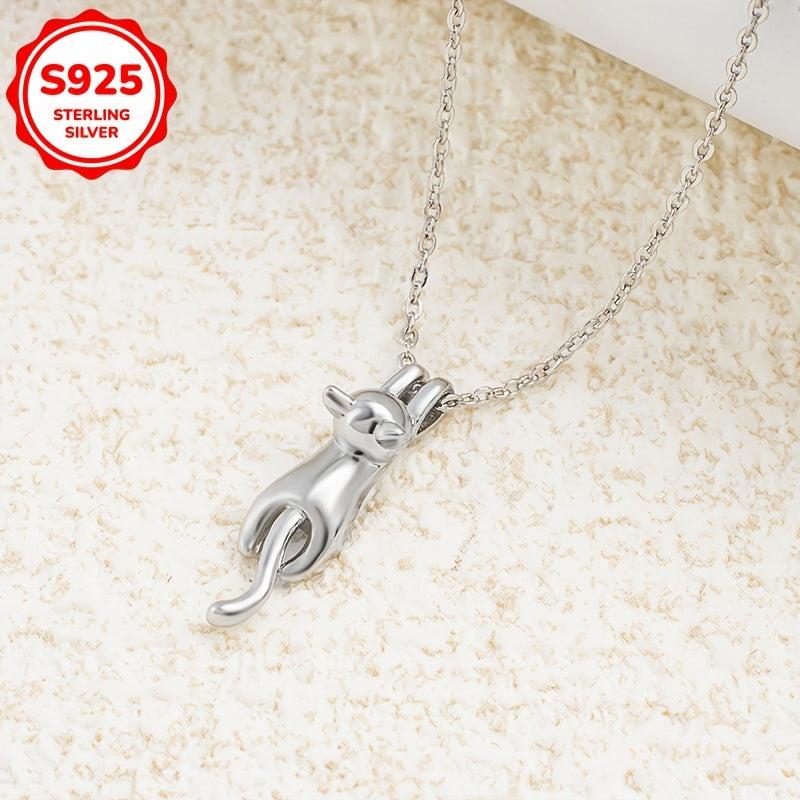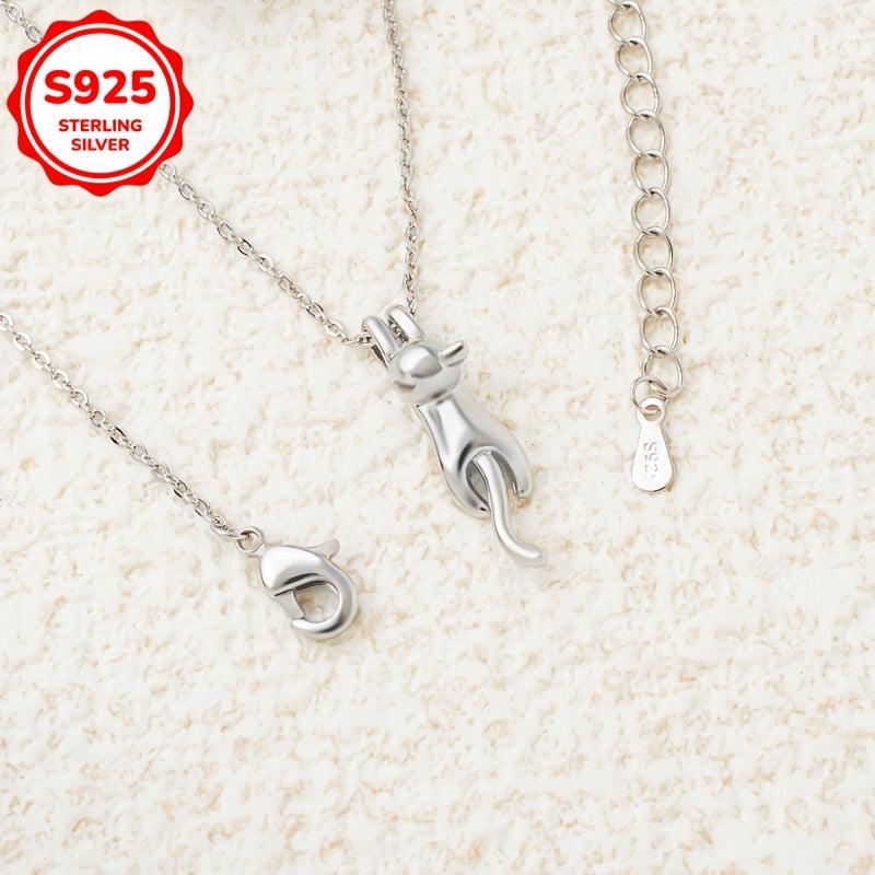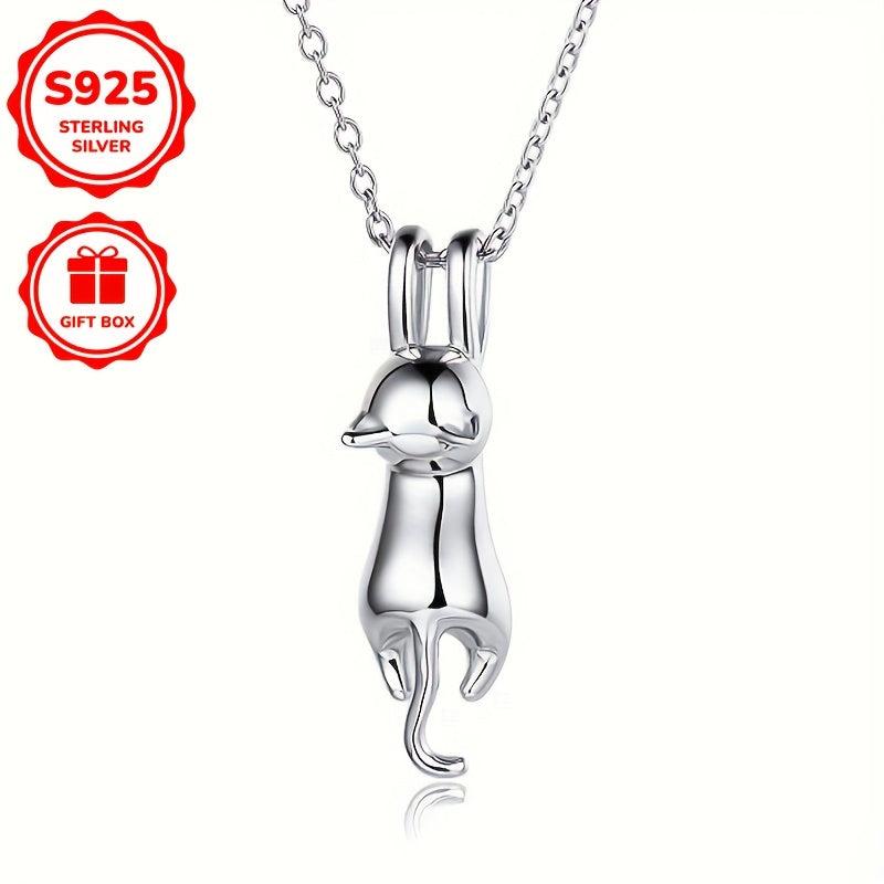 This stylish pendant necklace is perfect for daily wear or special occasions. It features a sleek cat design in 925 silver, weighing 3.6 grams. Ideal for vacations and makes a thoughtful gift for Mother's Day.