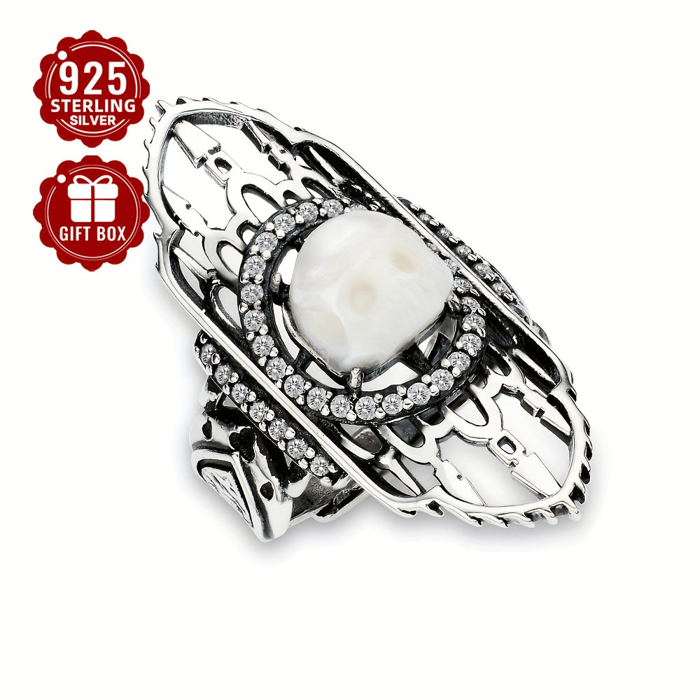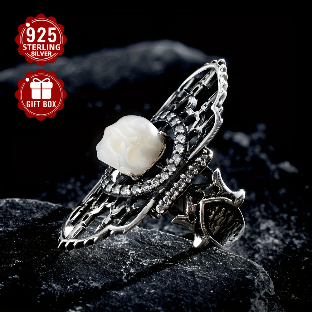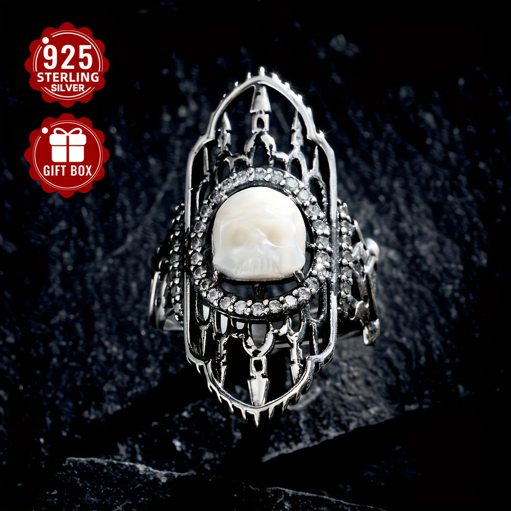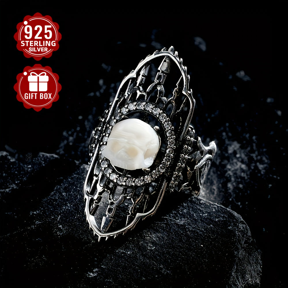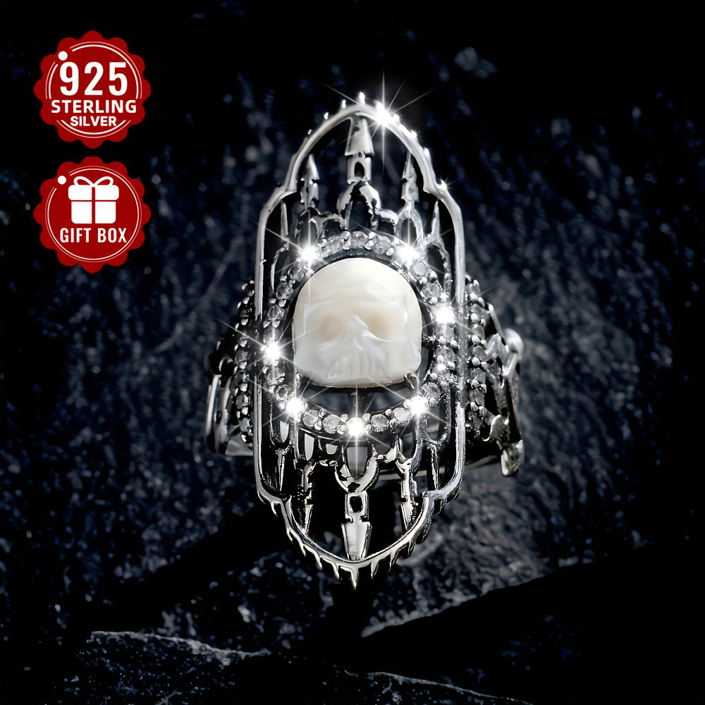 Embrace your unique style with this edgy Gothic skull ring. Made of 925 pure silver, it features a wide face design and an open adjustable fit. Perfect for a bold and edgy look.
