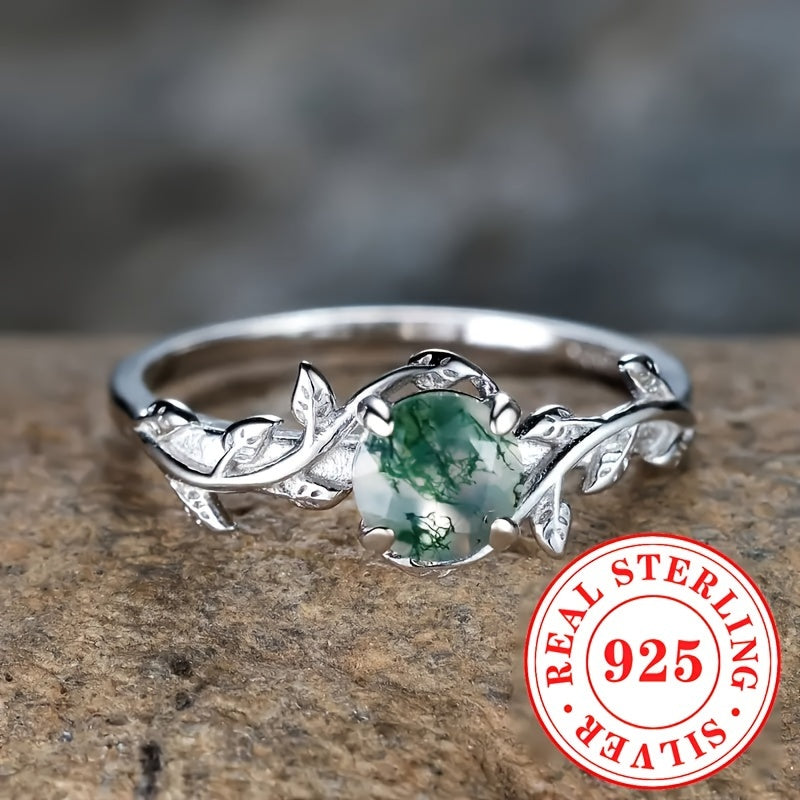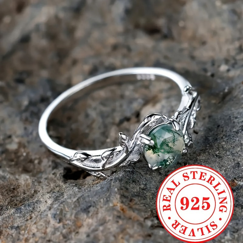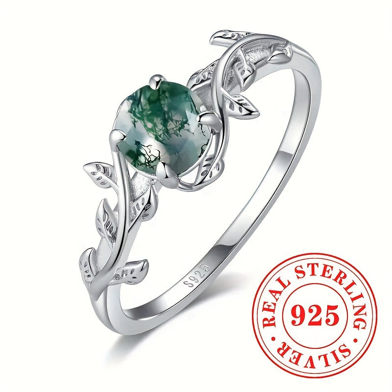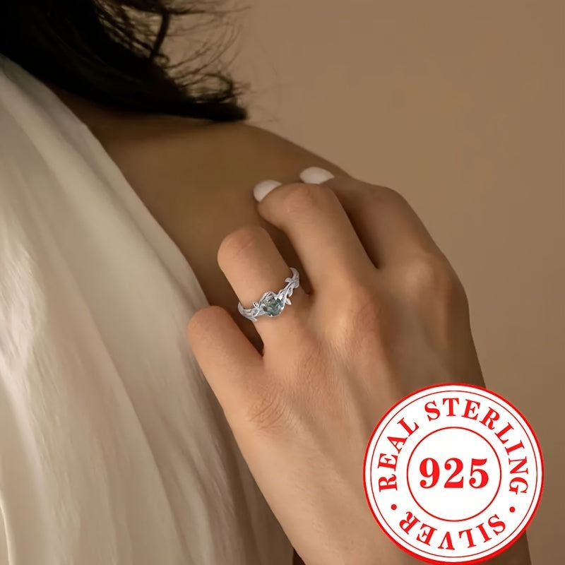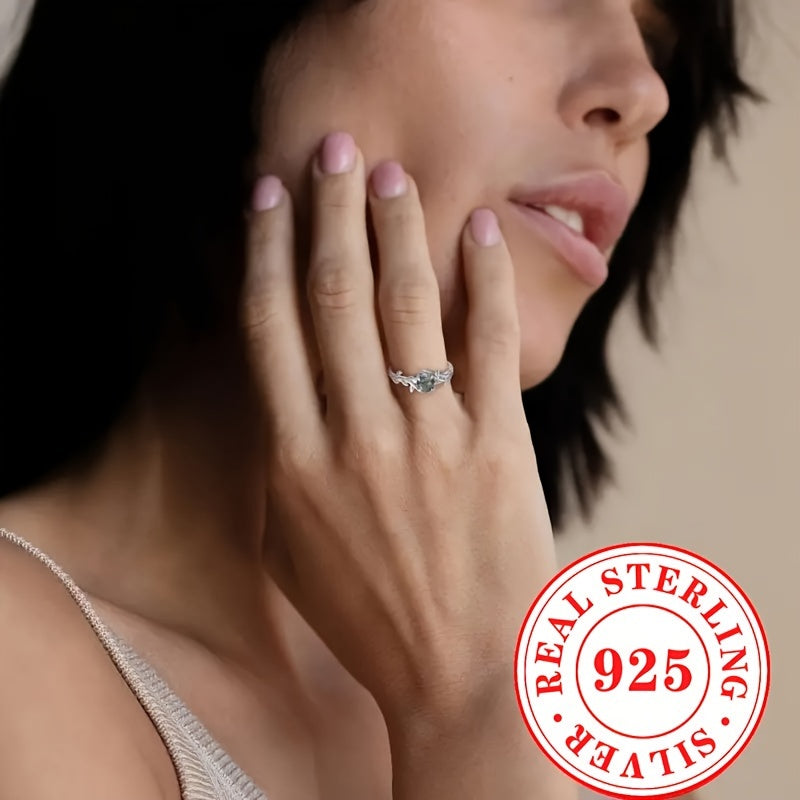 This stunning women's ring features a leaf design with synthetic zirconia stone in a pure silvery setting. The stone pattern will be randomly selected for a unique touch.