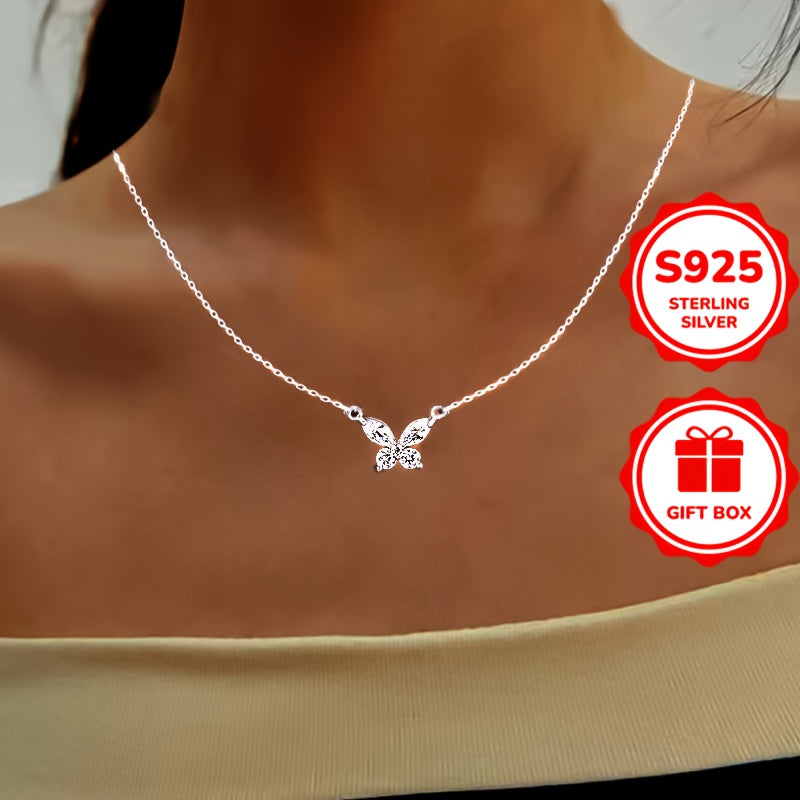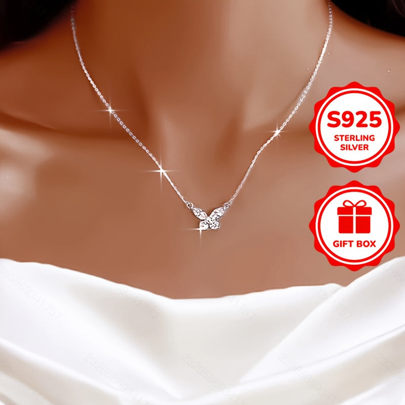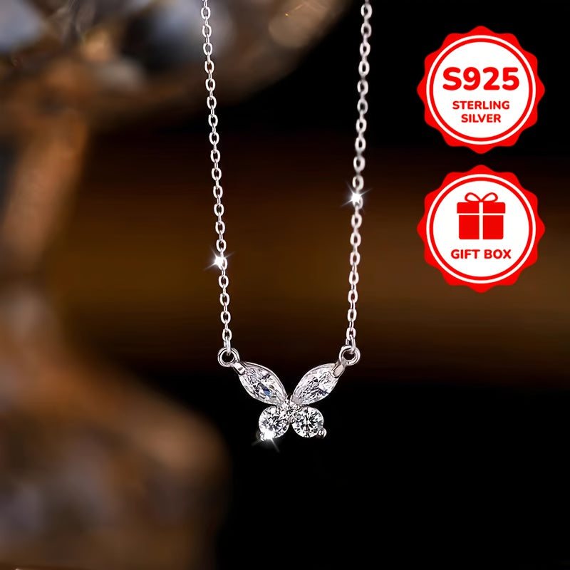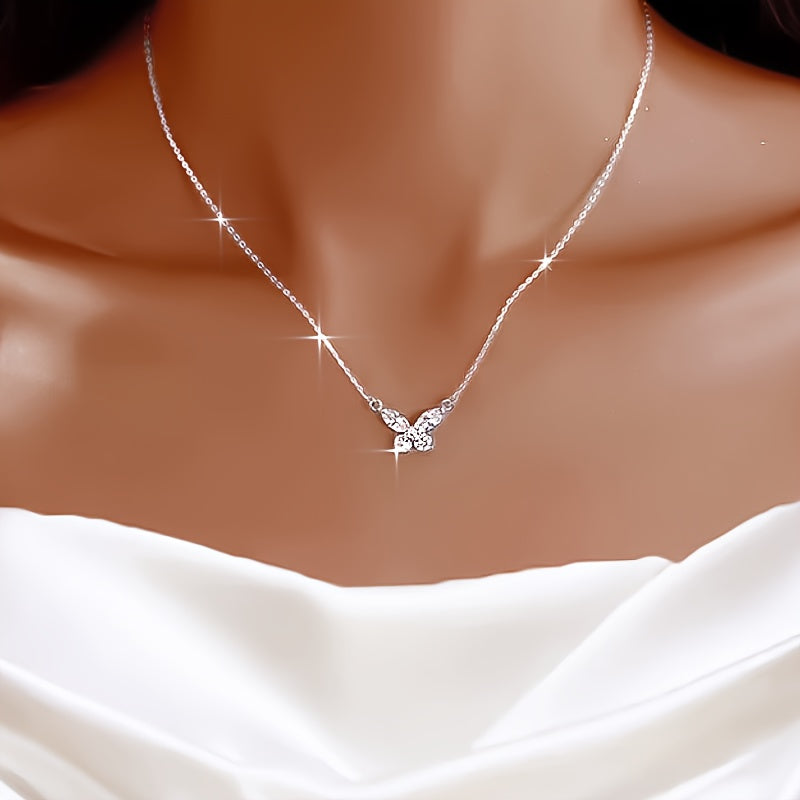 Elegant necklace featuring a combination of pure silvery synthetic zirconia and cubic zirconia, perfect for birthdays and special occasions.