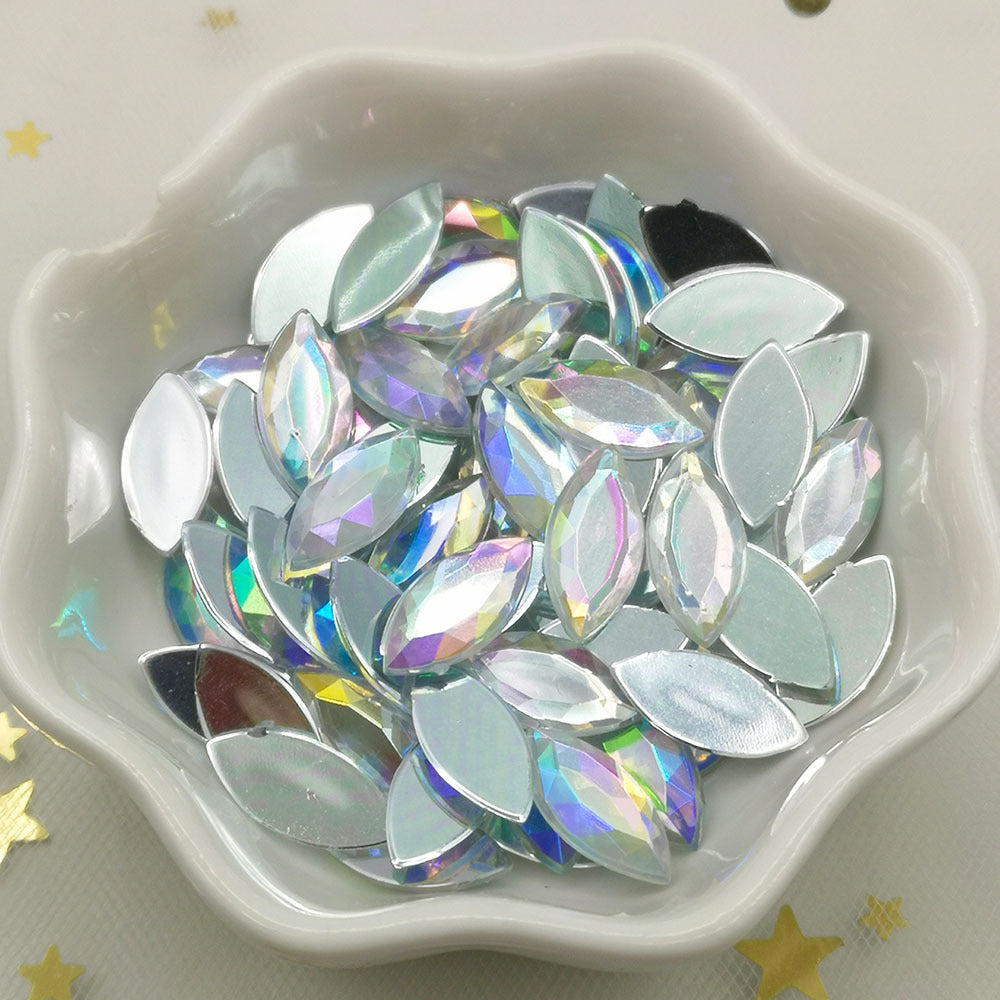 Add a touch of elegance with these 100pcs resin horse eye rhinestones. Perfect for wedding dress decorations, crafts, and DIY projects.
