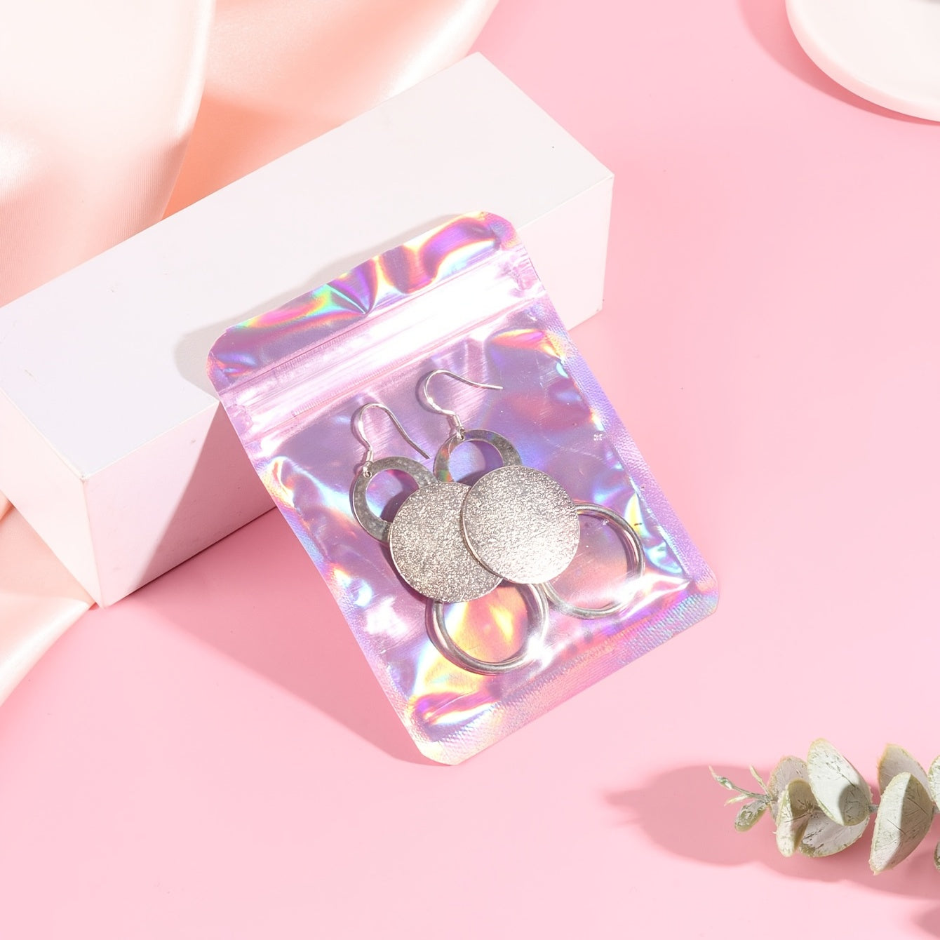 This set includes 10 laser pink transparent clear ring earrings necklace jewelry holder hand display stands for showcasing your favorite jewelry pieces.