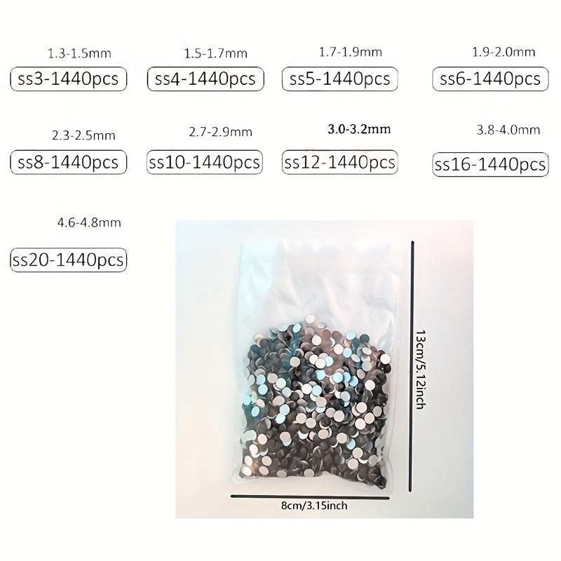 Enhance your jewelry projects with this pack of 1440 flat bottom rhinestones. Perfect for DIY jewelry making and crafts.