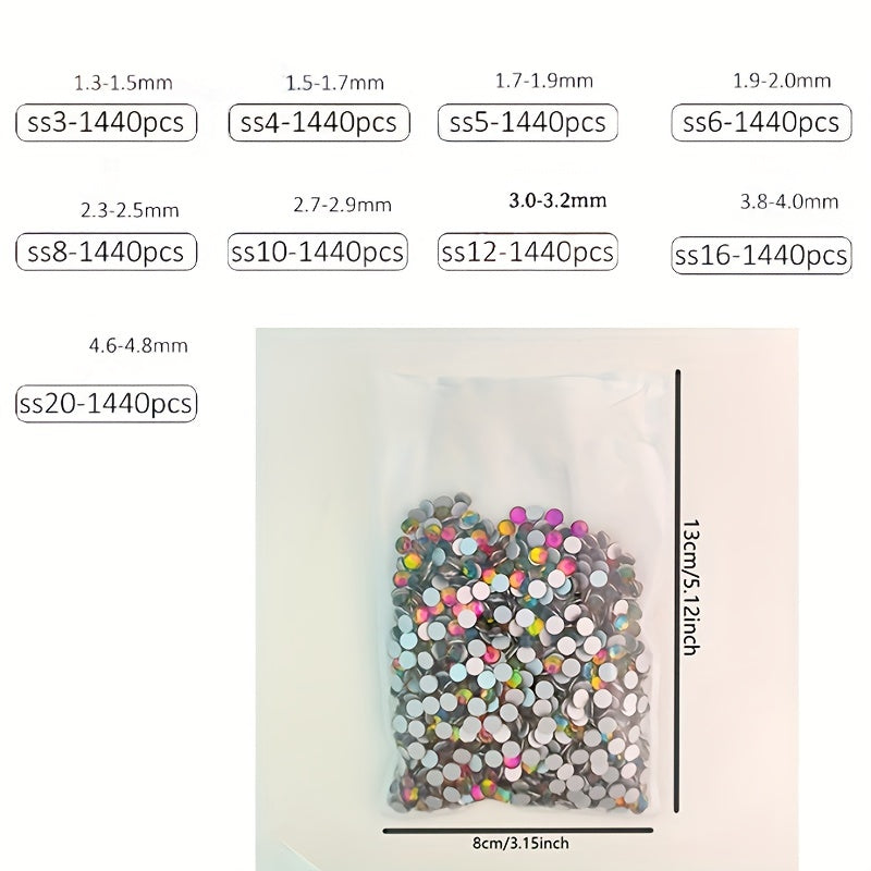 1440pcs Flat Bottom Rhinestones for DIY Jewelry Phone Case Manicure