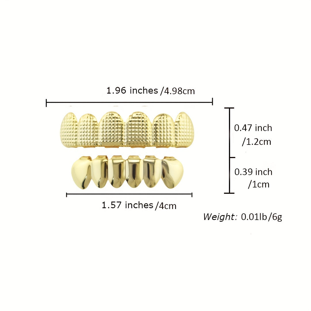 Enhance your style with these top and bottom grillz caps. Made with 18k gold plating, these hip hop teeth grillz will make you stand out.