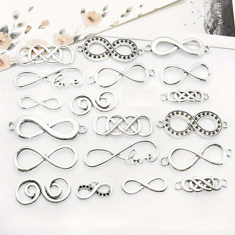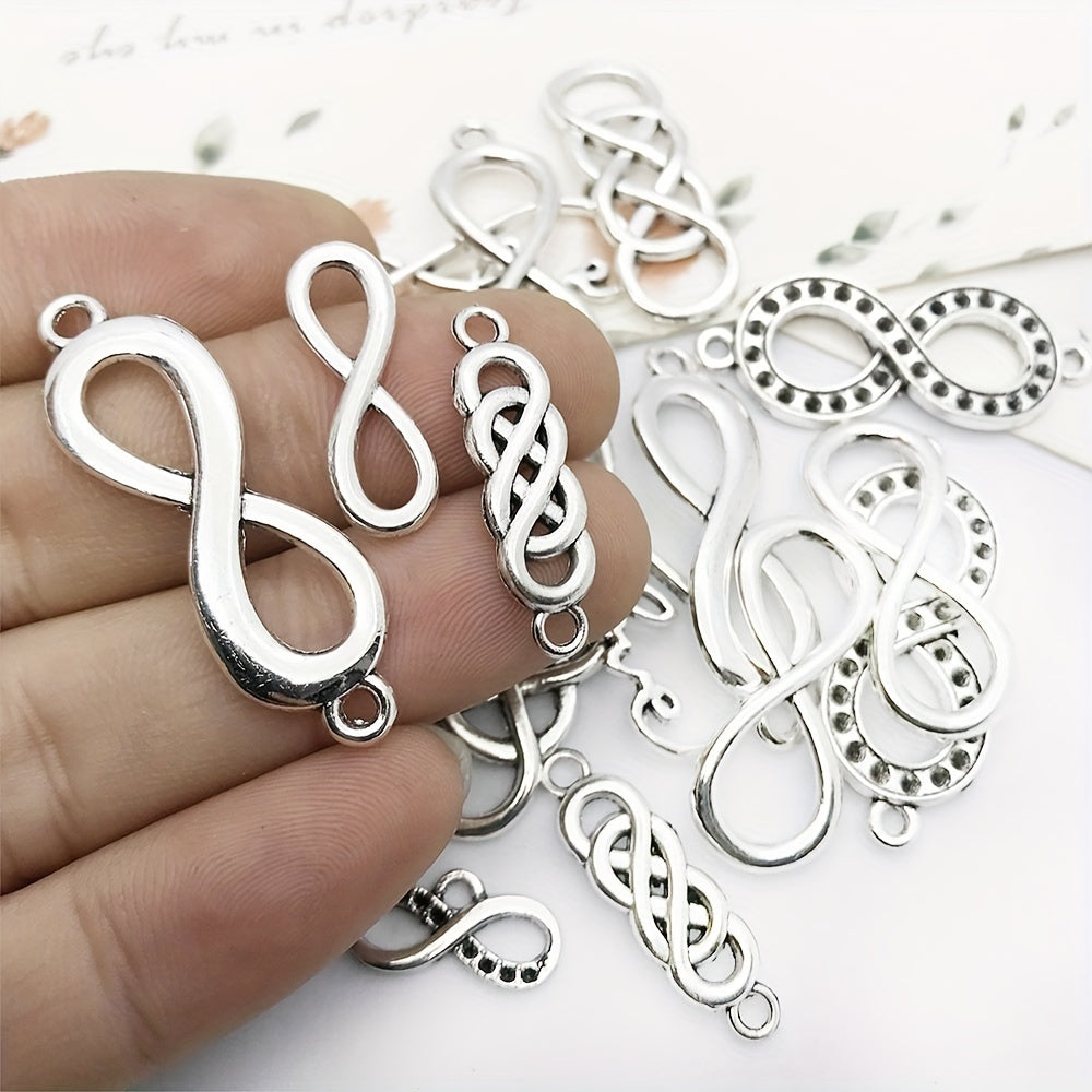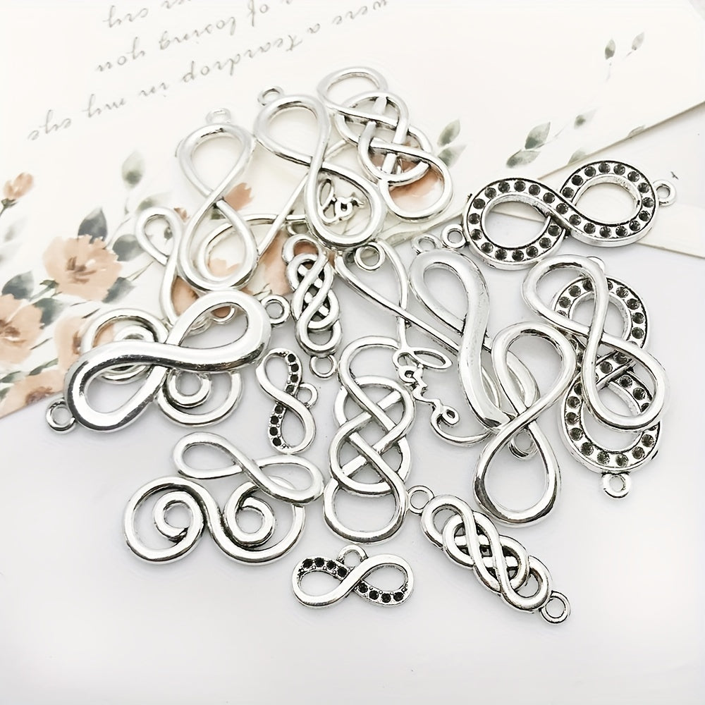Create stunning jewelry pieces with these antique silver infinity symbol charms. Perfect for DIY necklace and bracelet making, crafting, and accessorizing.