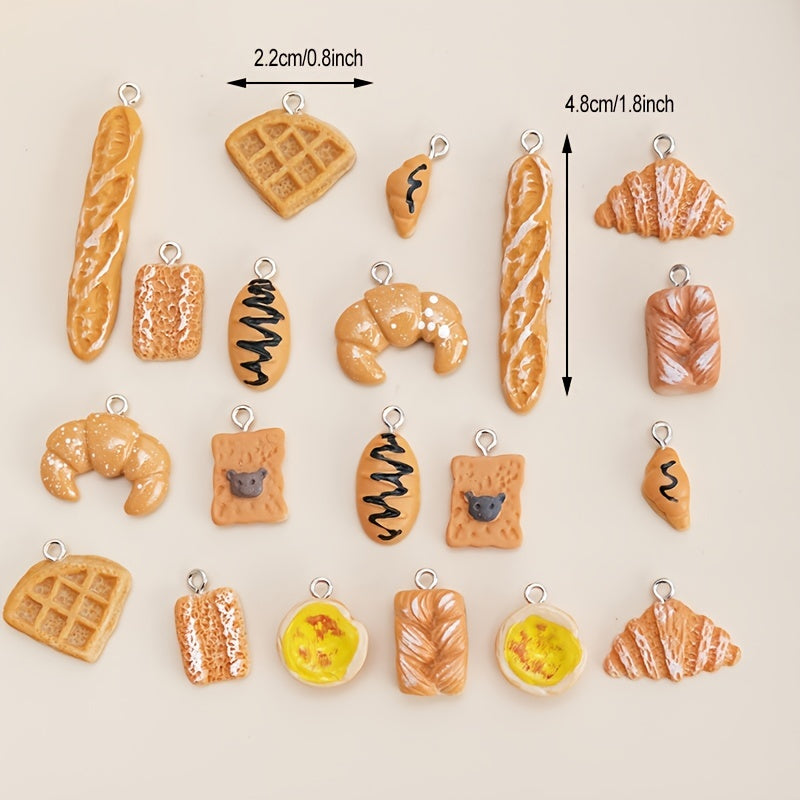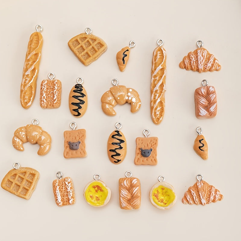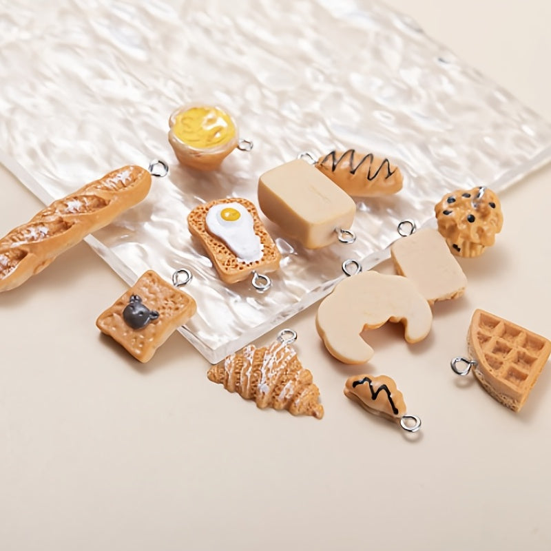 Get creative with this set of simulated food charms in the shape of egg tart, cake, bread, and cookies. Perfect for making earrings, keychains, and other jewelry pieces.