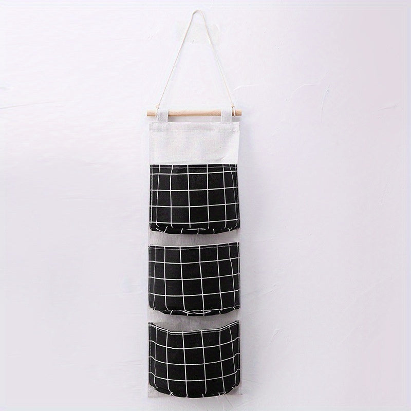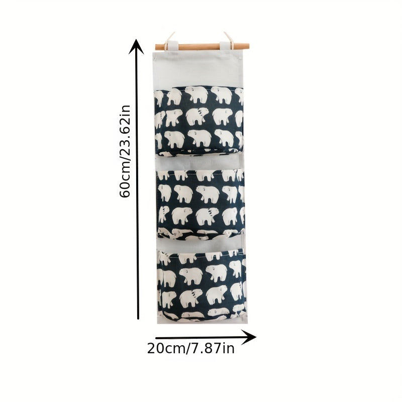 Maximize your space with this convenient hanging storage bag featuring 3 pockets. Made of durable linen fabric, this organizer is perfect for small items like accessories, toys, and more.