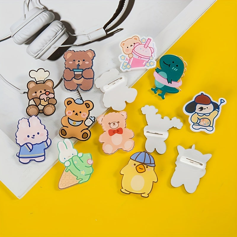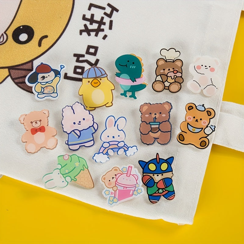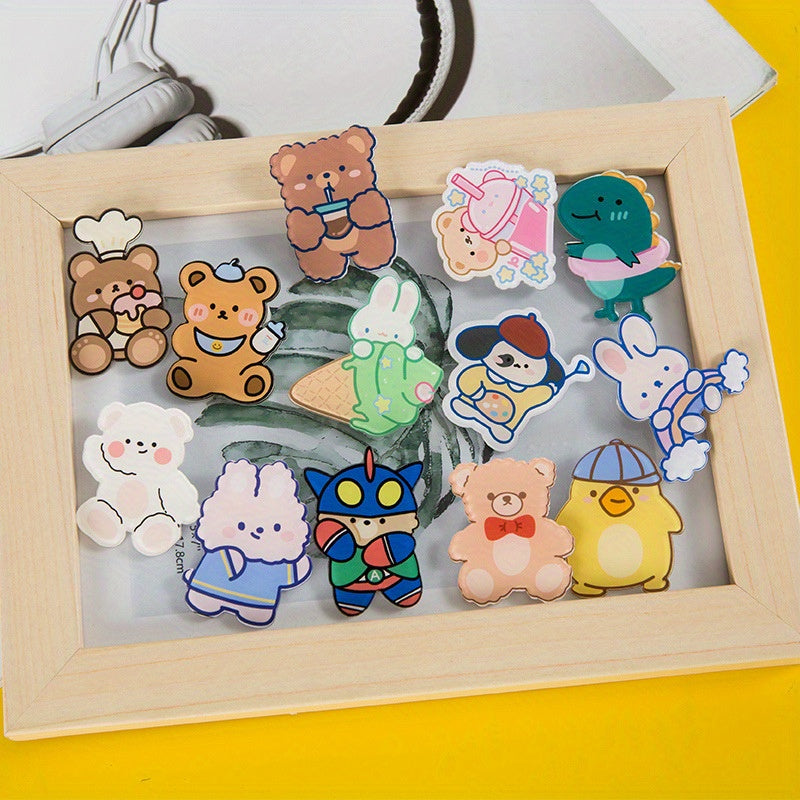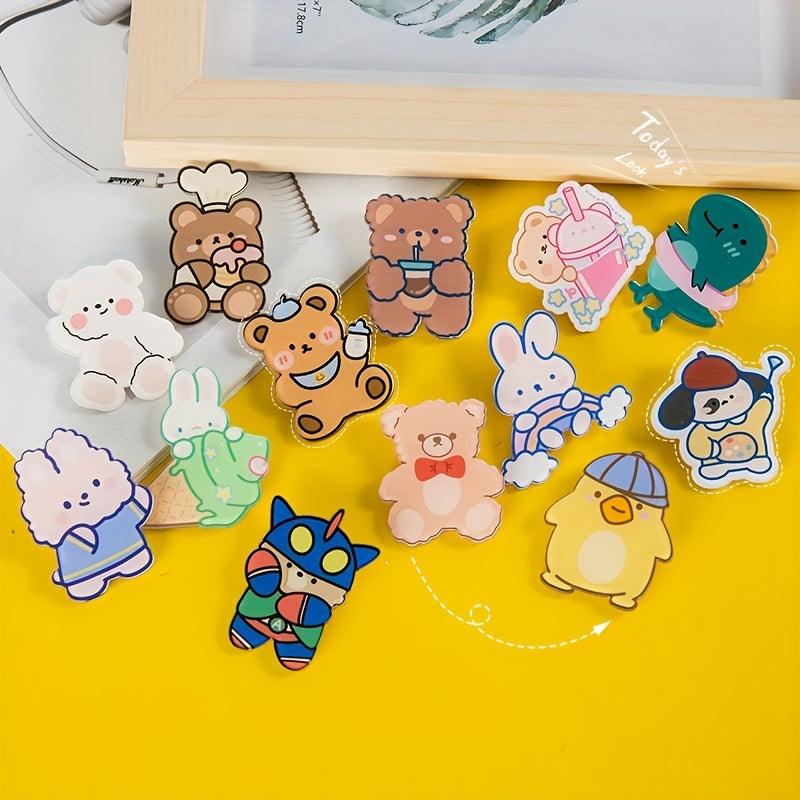 Add a touch of cuteness to your outfits with these 30 Pcs Cartoon Brooch Pins featuring bear and rabbit designs. Perfect for decorating coats, suits, and collars.