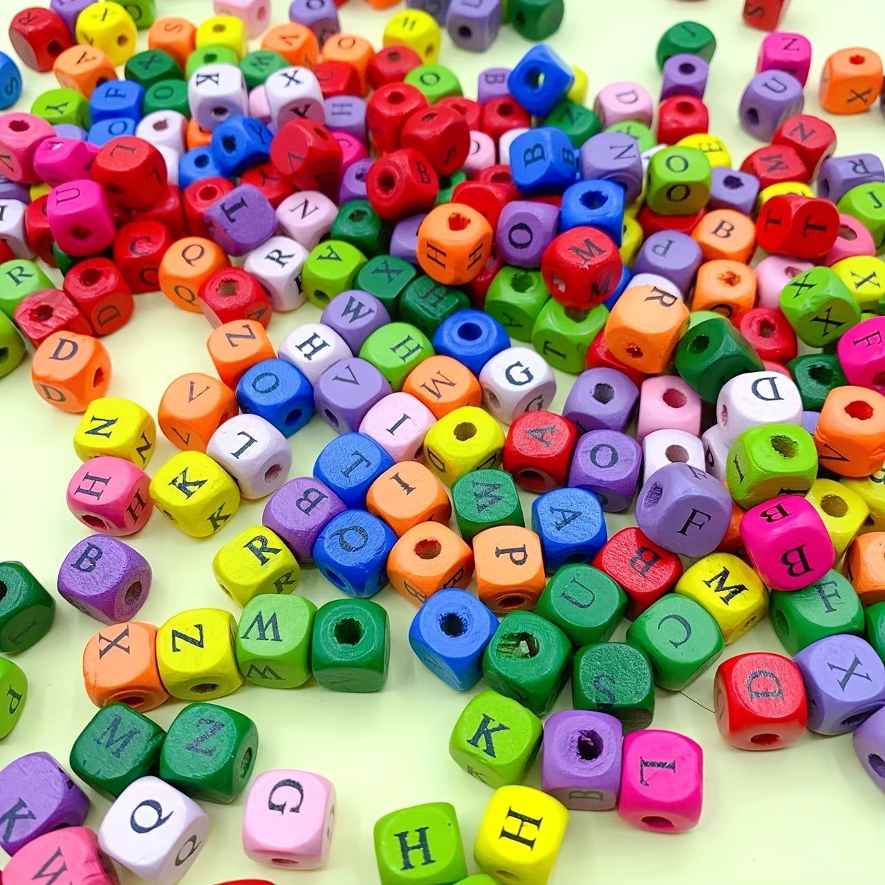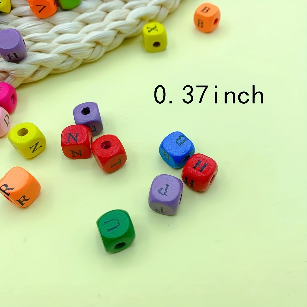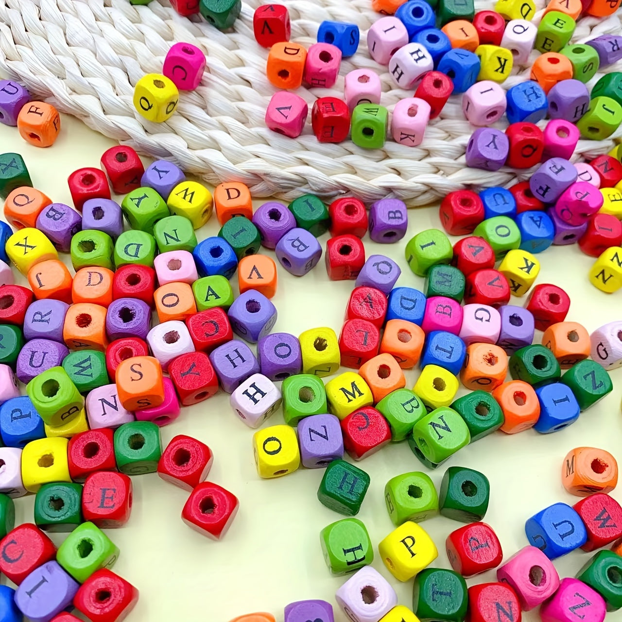 These square wooden beads are perfect for DIY jewelry making. Each bead is dyed with a vibrant color and features one of the 26 letters of the alphabet. Use them to create personalized bracelets, necklaces, or keychains.
