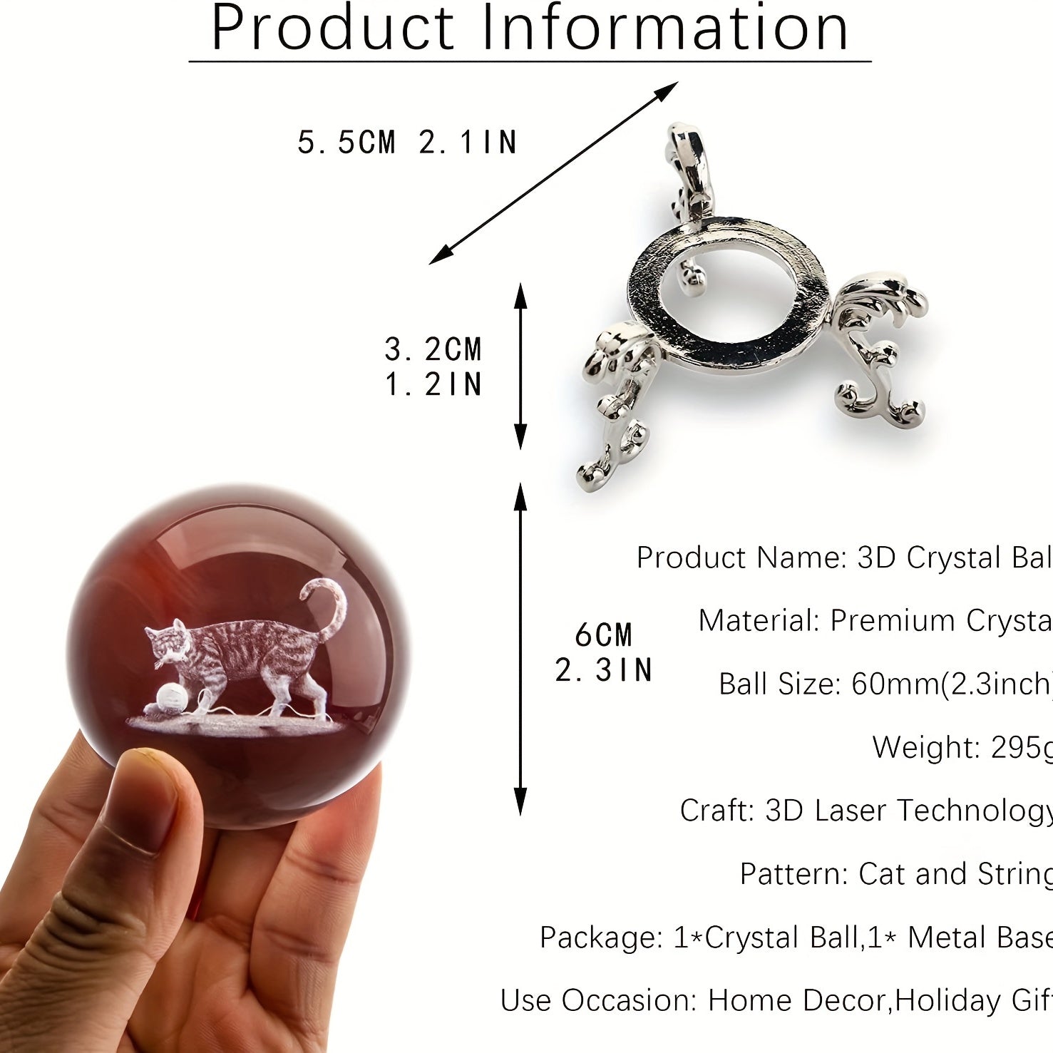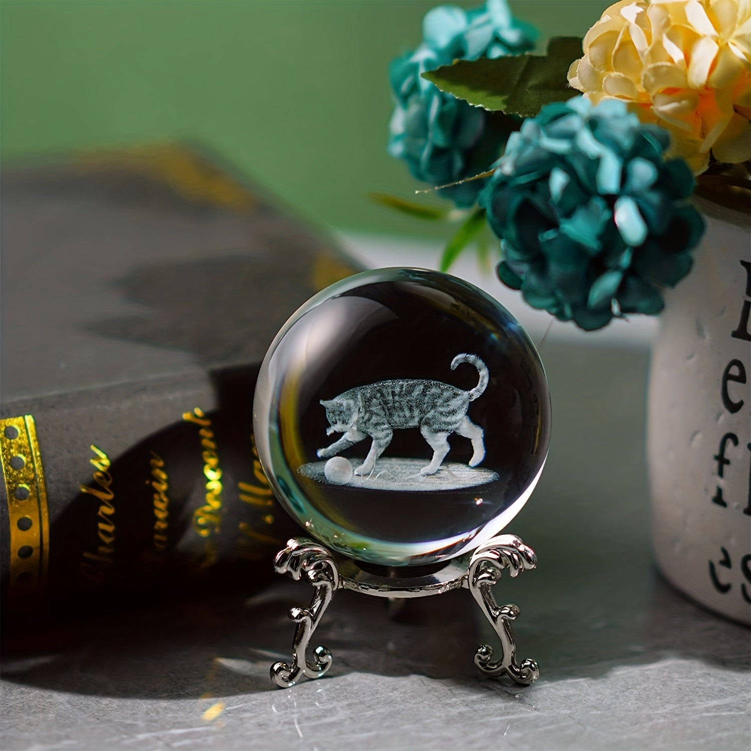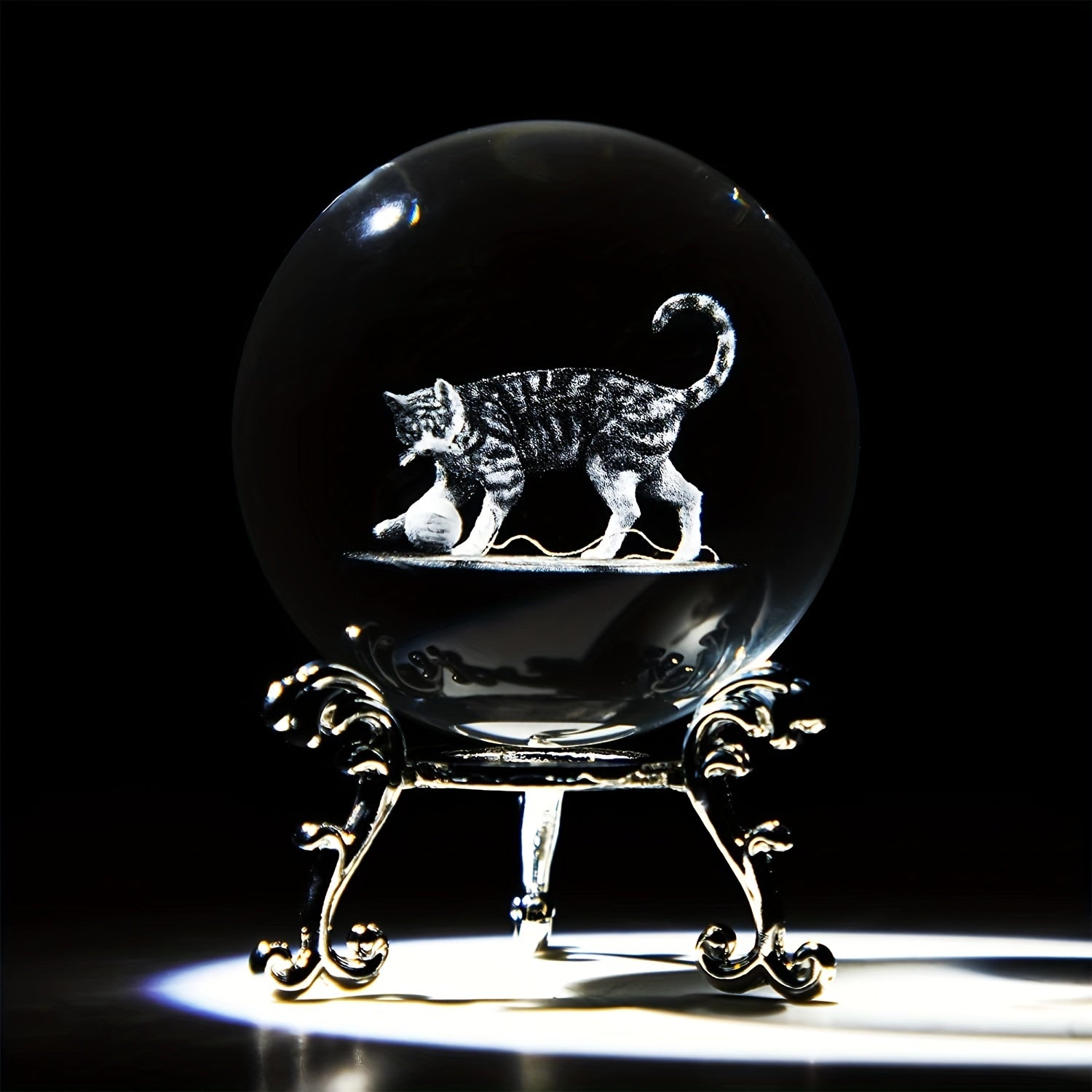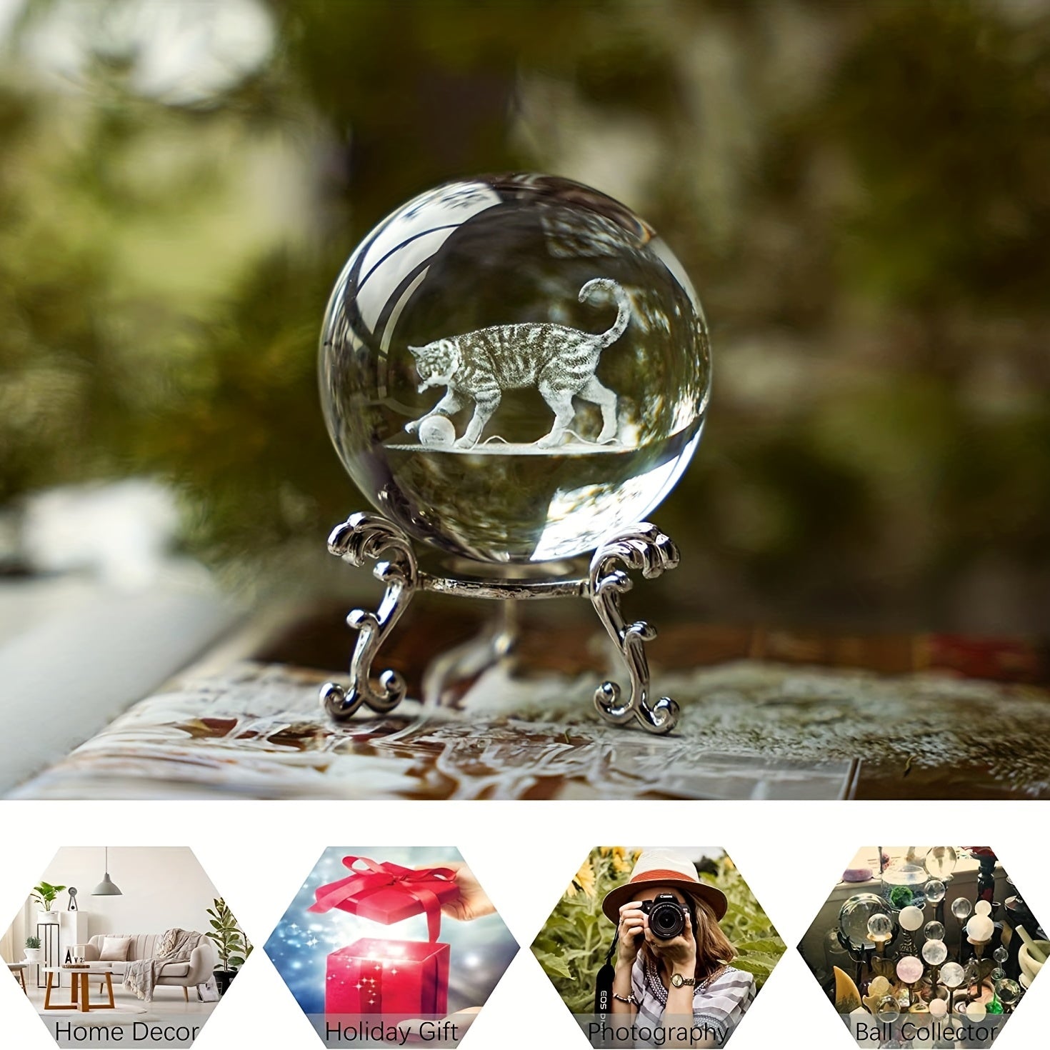 This 3D laser cat statue crystal ball is a unique home decor item that adds a touch of elegance to any space. It makes a perfect gift for cat lovers or anyone who appreciates beautiful art pieces.
