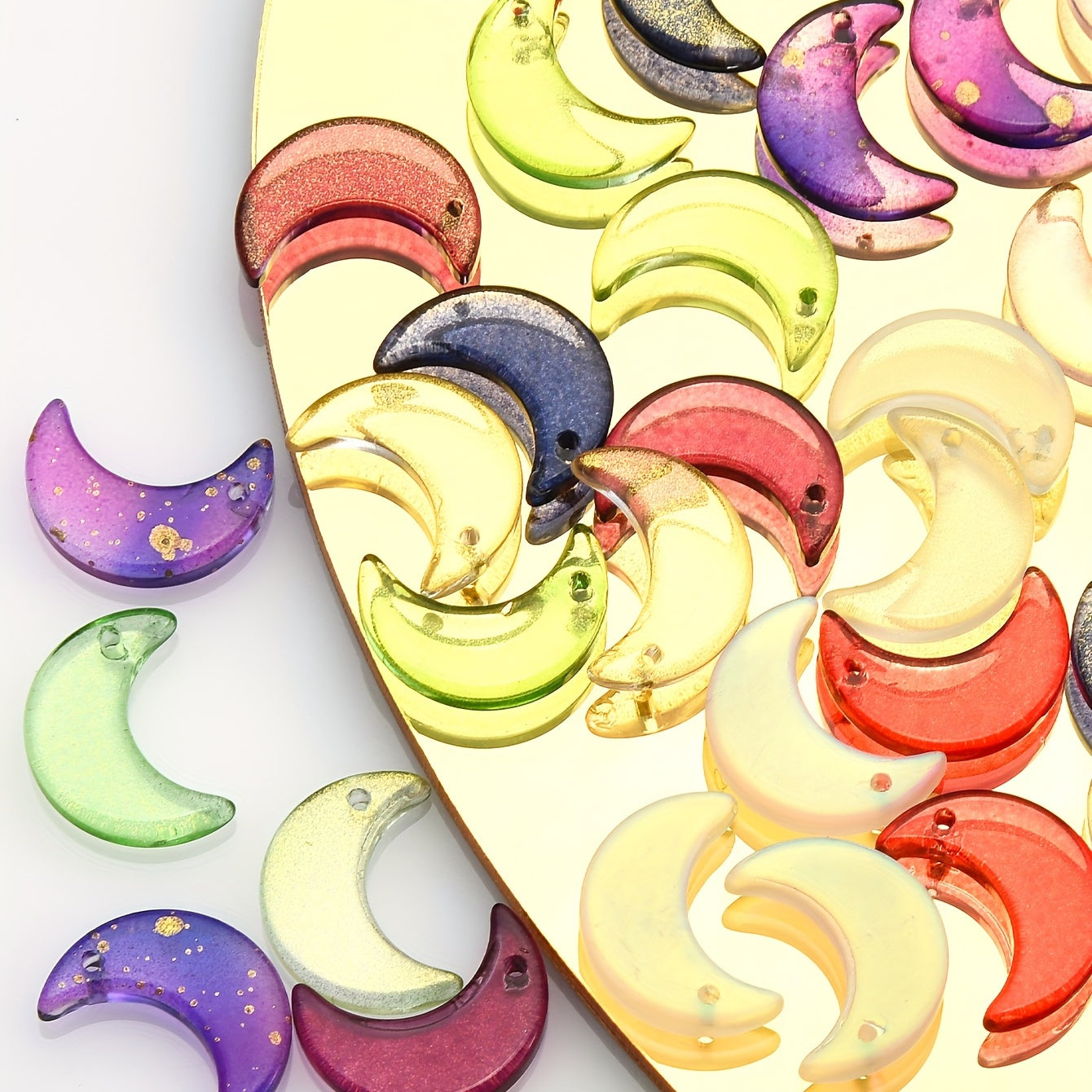 Enhance your jewelry making projects with this set of 48 moon gradient crystal glass beads. Perfect for creating earrings and bracelets.