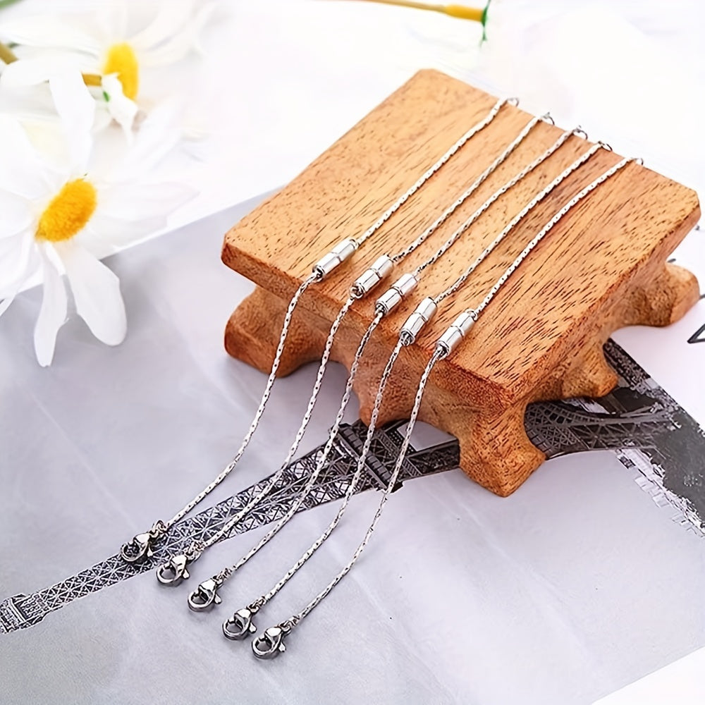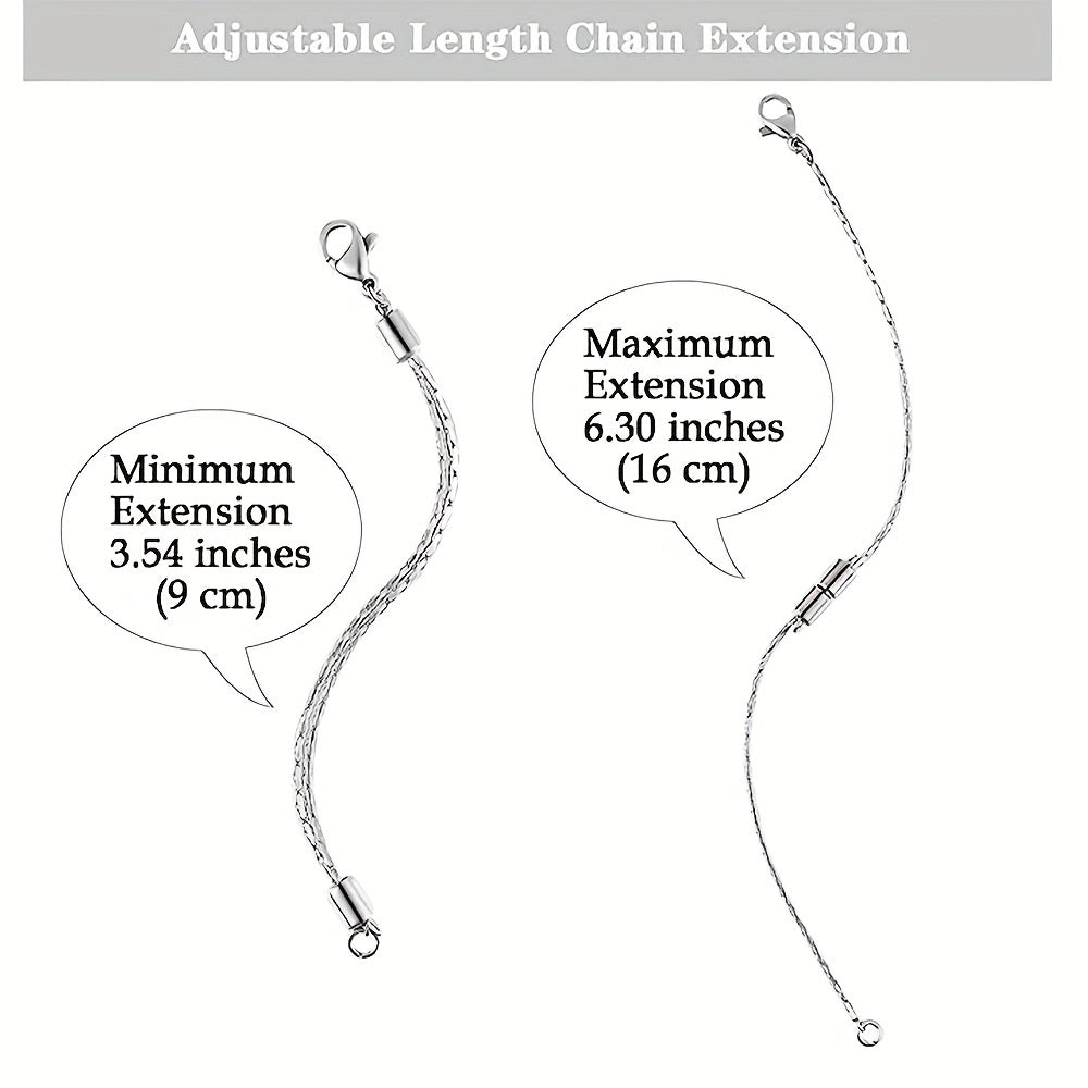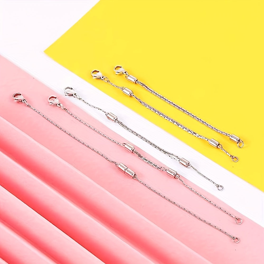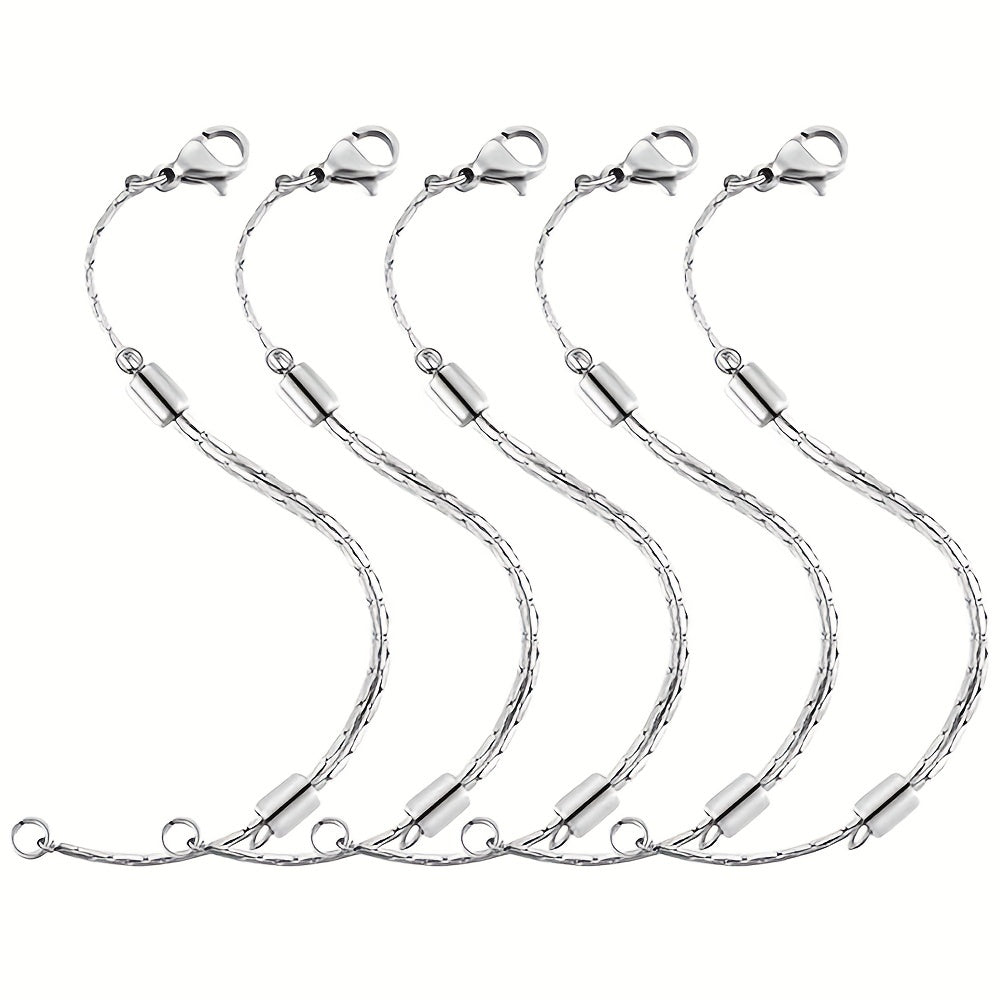 Enhance your jewelry making with this set of 5 extender chains. Made of stainless steel, these silvery chains are adjustable to suit your needs. Each chain features a lobster clasp for easy attachment to necklaces and bracelets.