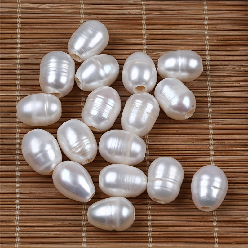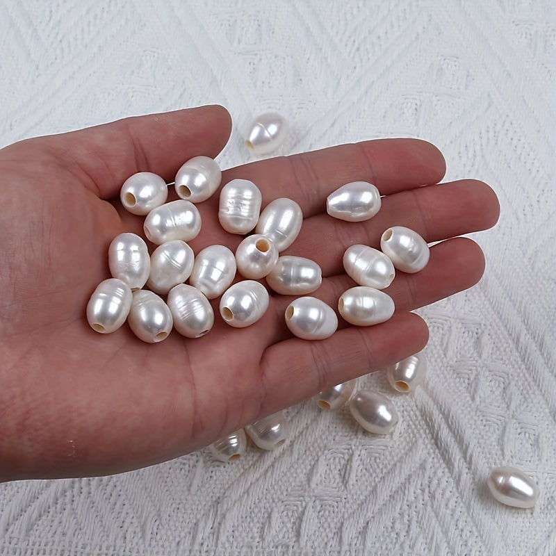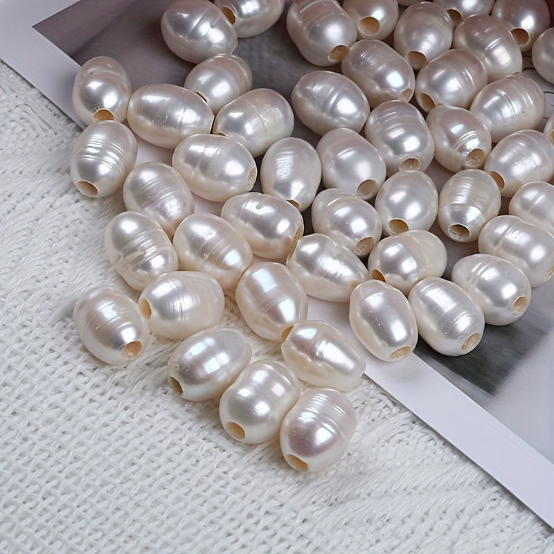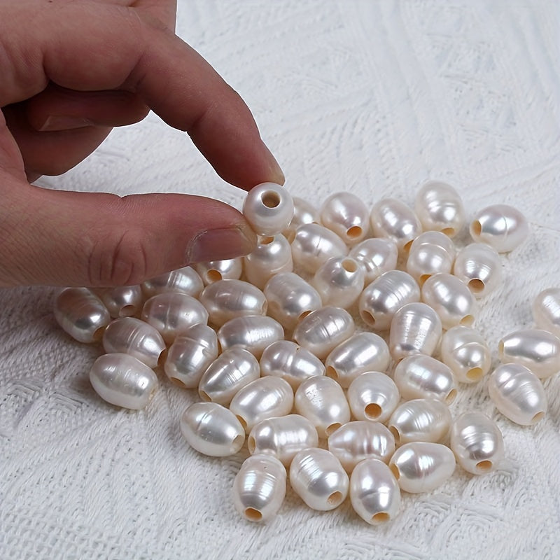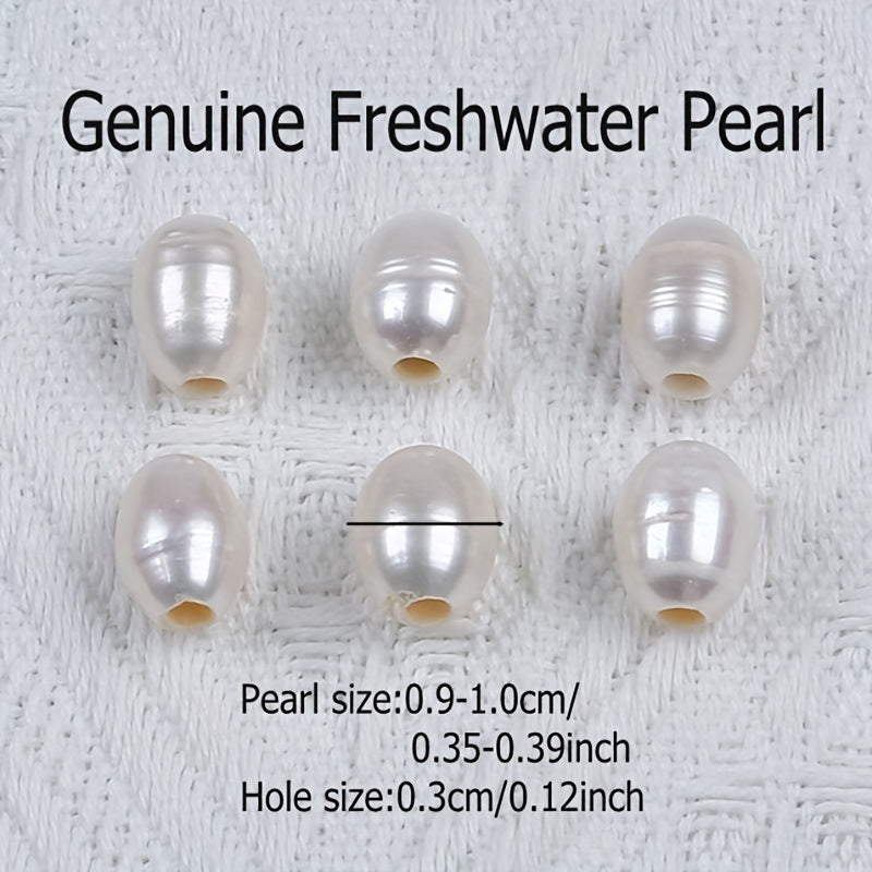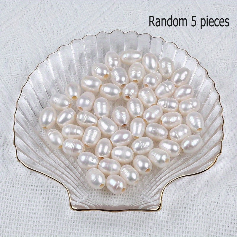 Get a set of 5 natural freshwater pearl large hole rice shaped beads to create stunning earrings, bracelets, and necklaces. Perfect for DIY jewelry projects.