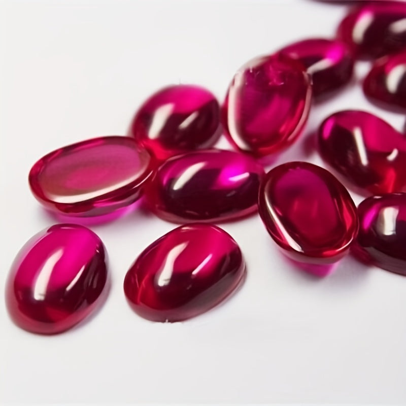 Elegant and versatile red corundum stones with flat bottom oval ring face. Perfect for jewelry making and crafting projects.