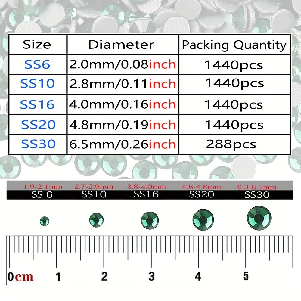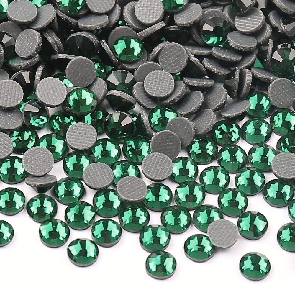 Add sparkle to your items with these hotfix green rhinestones. Perfect for clothes, bags, and shoes decoration. Glitter glass stones provide a charming touch.