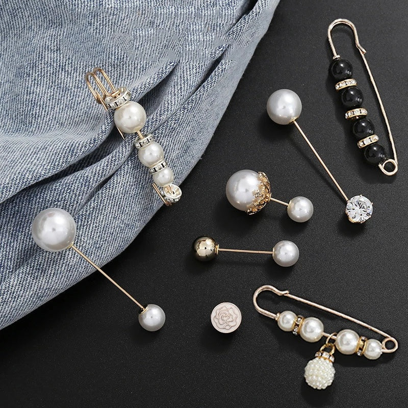 Add a touch of elegance to your outfit with these waist tightener buckle sweater shawl clips featuring faux pearls and rhinestones. Keep your sweater, shawl, collar or scarf in place and look stylish at the same time.