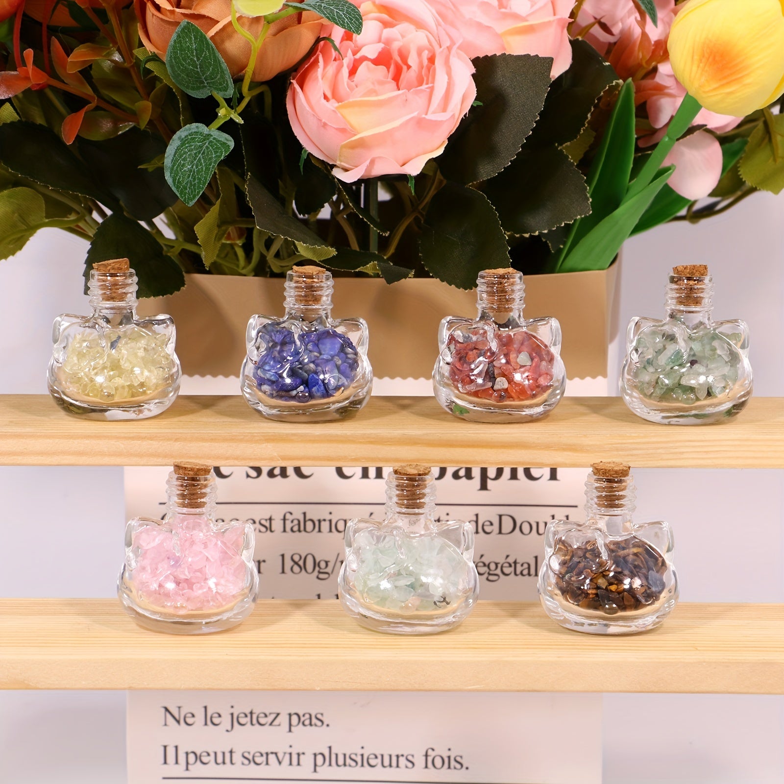 7pcs Kitten Shape Crystal Gravel Amethyst Glass Bottle Decoration