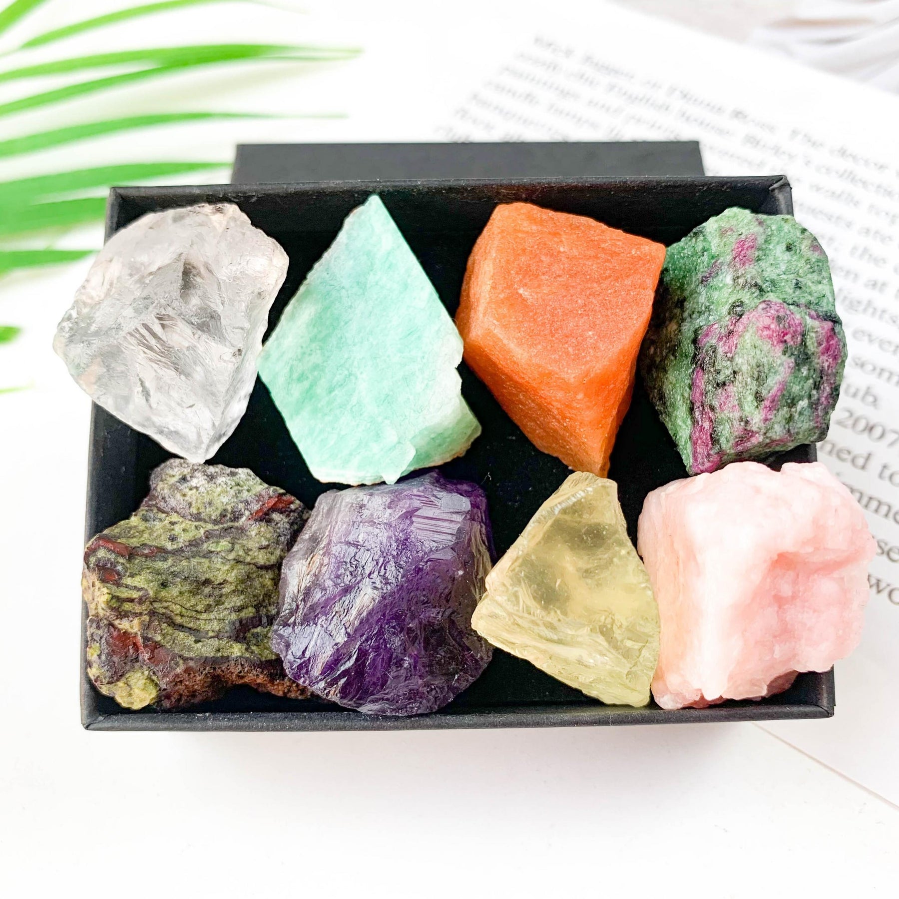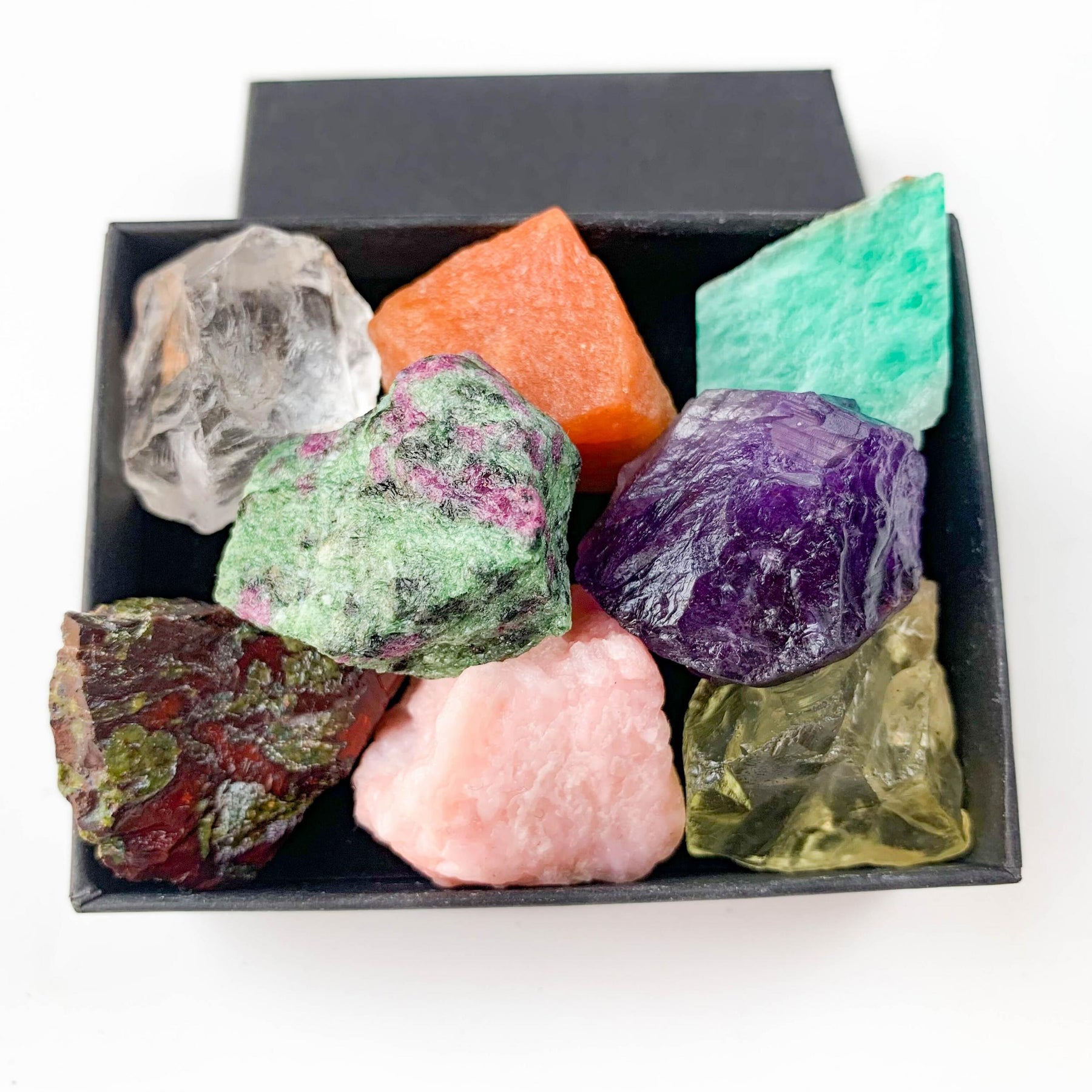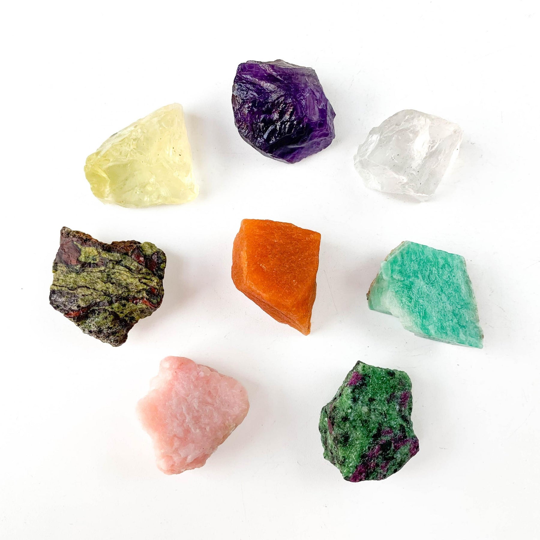 Enhance your space with this set of 8 large chakra healing stones. Perfect for crystal reiki, jewelry making, houseplants, and home decoration.