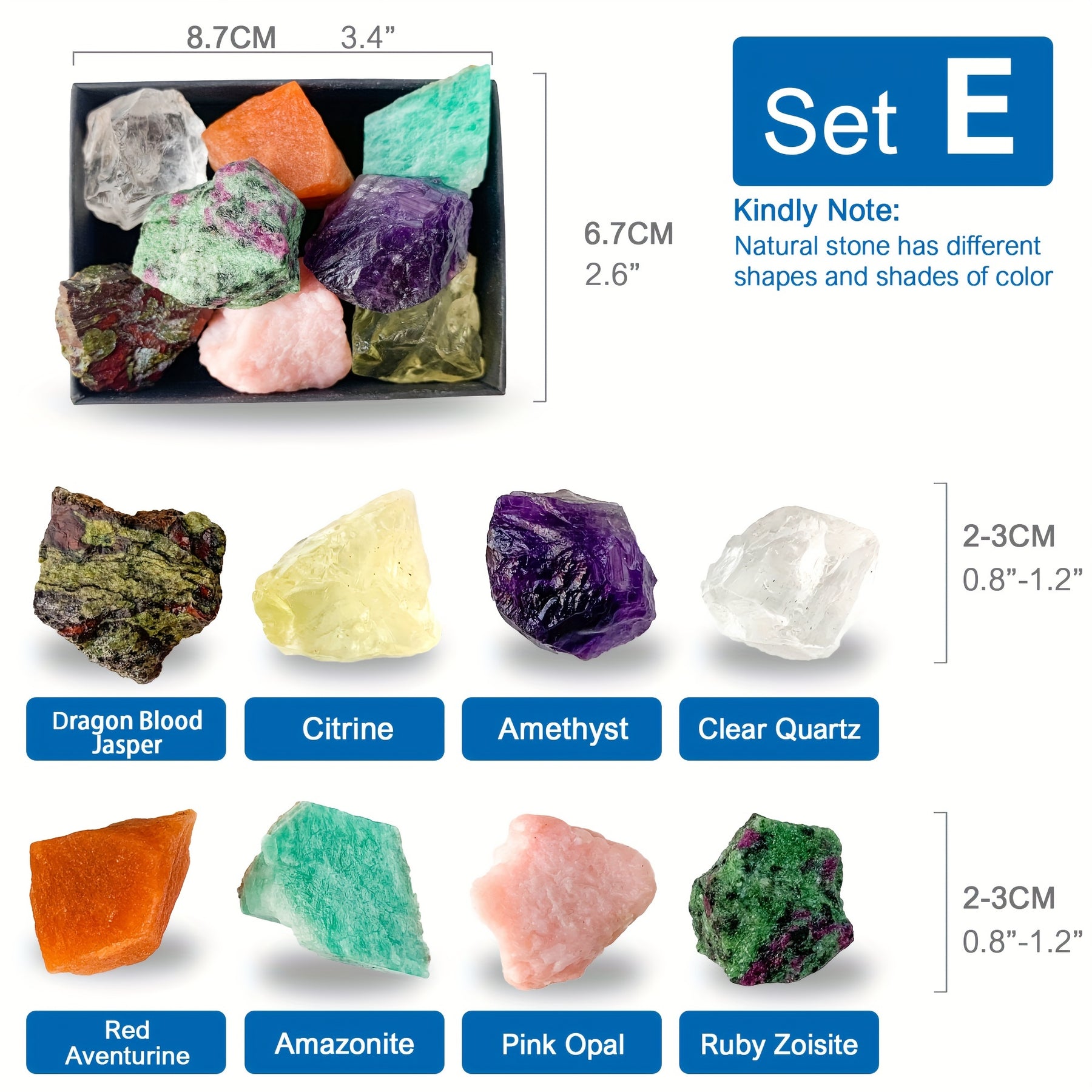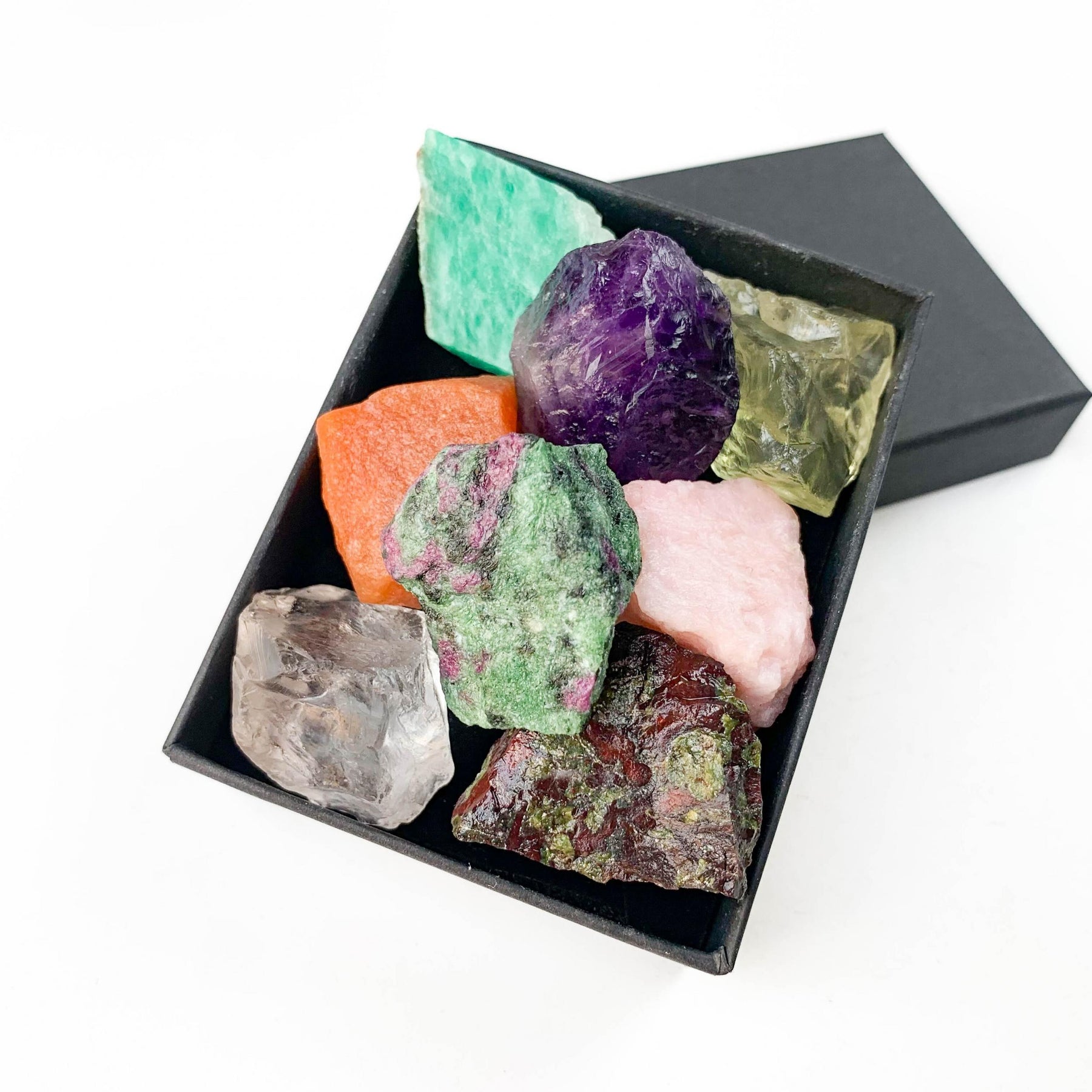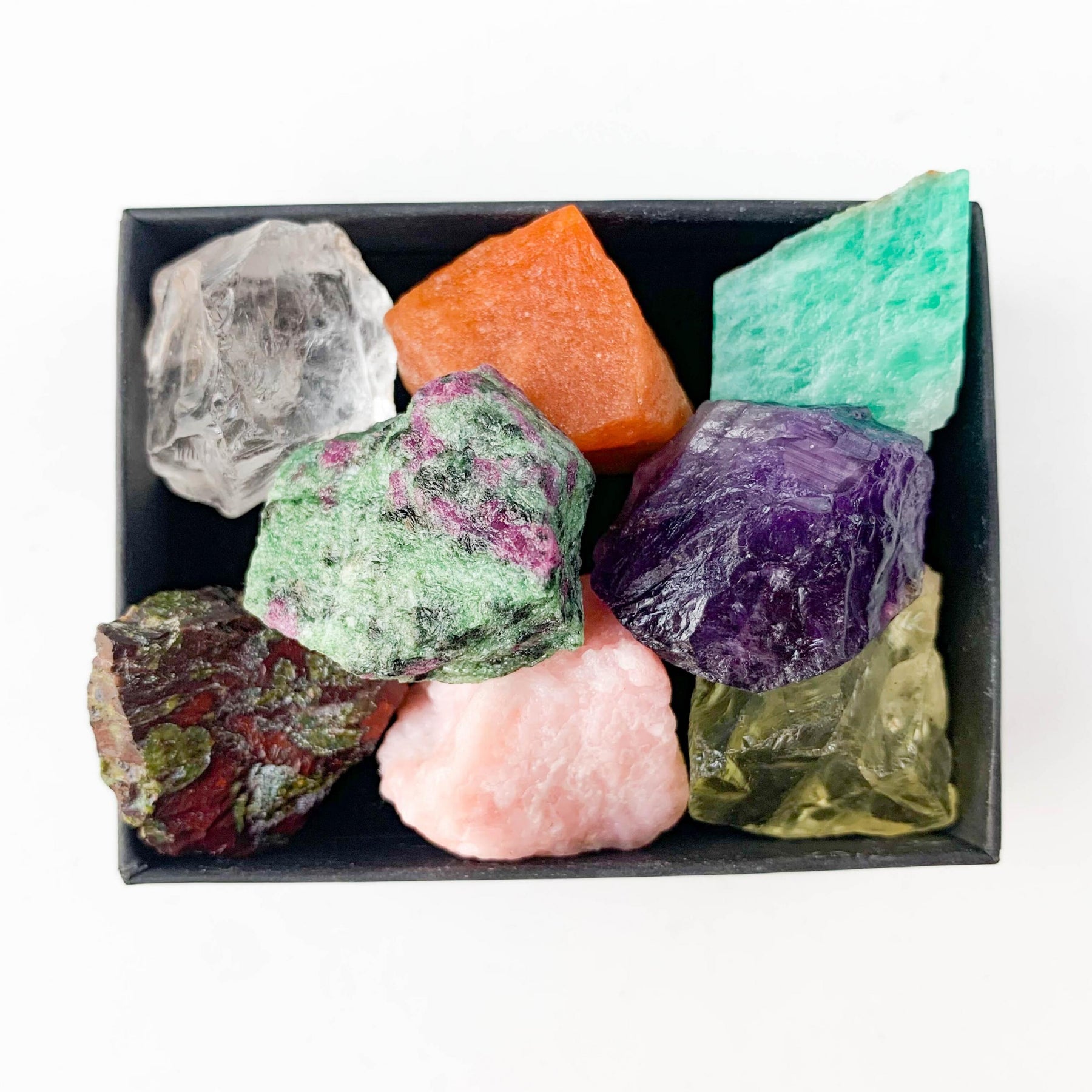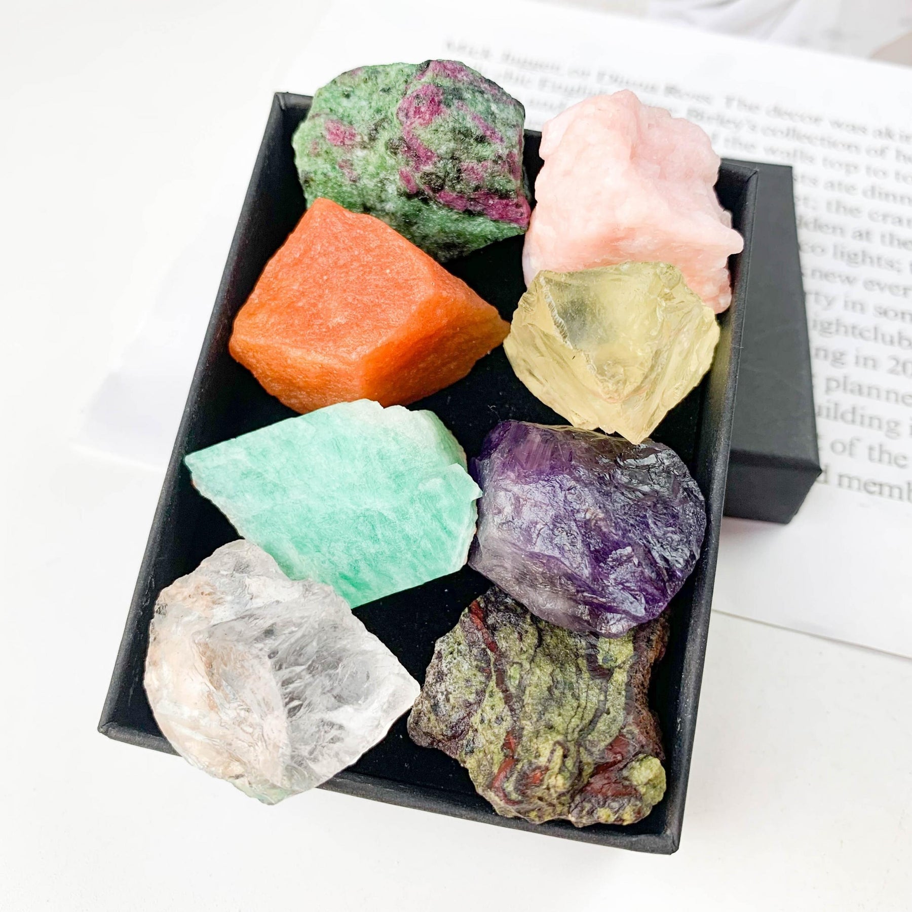 Enhance your space with this set of 8 large chakra healing stones. Perfect for crystal reiki, jewelry making, houseplants, and home decoration.
