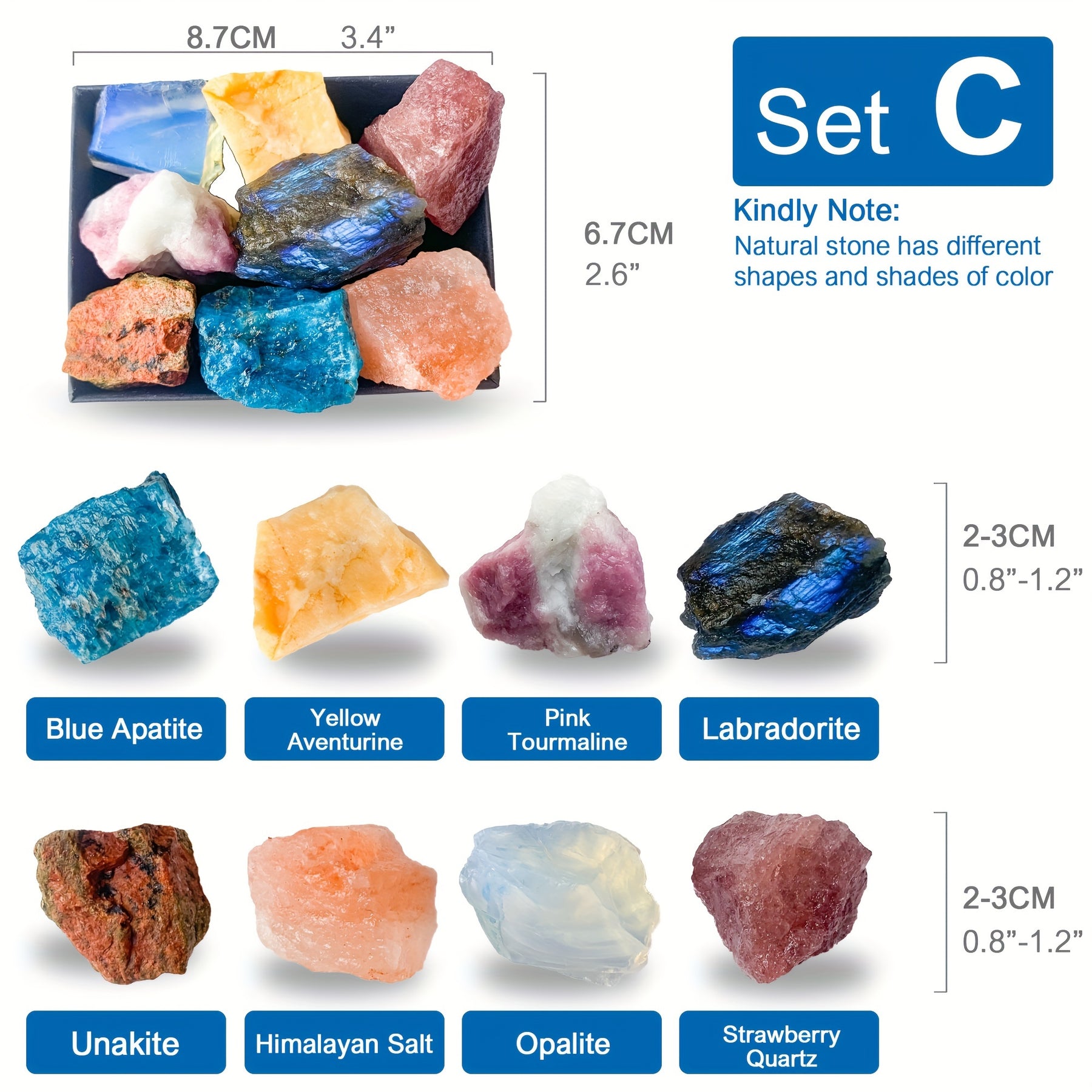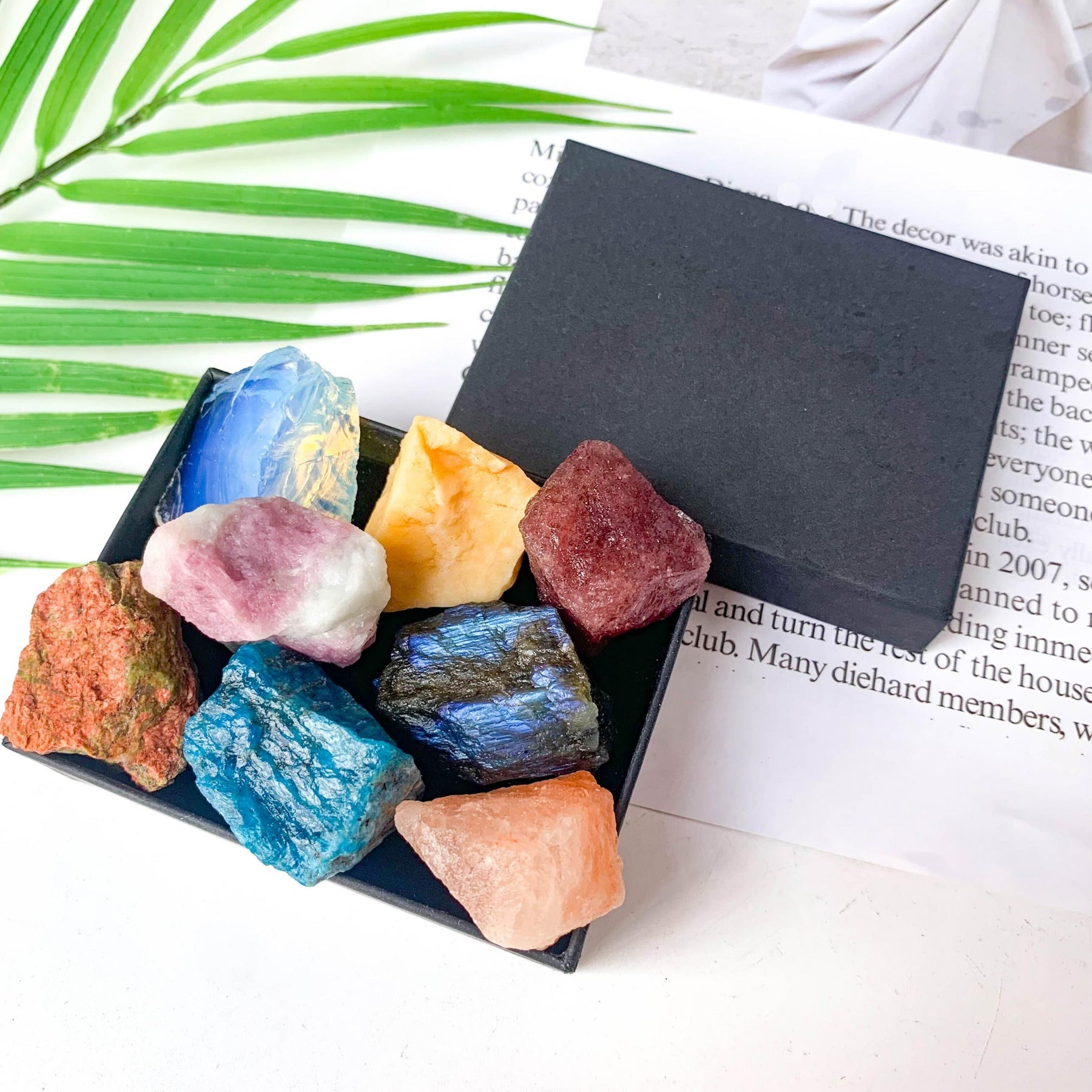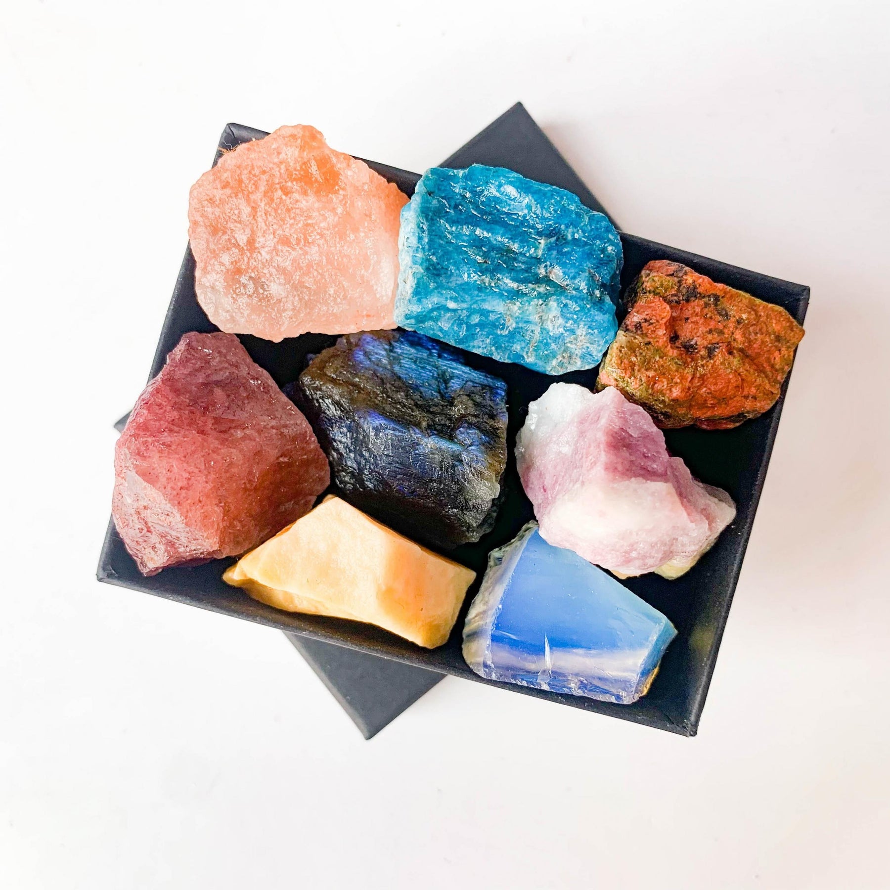 Discover the power of rare crystals with this set of 8 large chakra healing stones. Each crystal has unique properties to bring balance and positive energy to your life. Perfect for yourself or as a thoughtful gift for a loved one.
