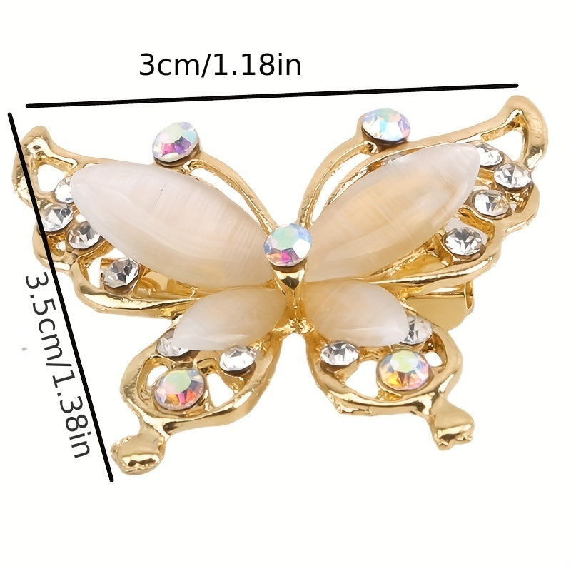 Elegant butterfly rhinestone brooch French barrette side clip, perfect for hair accessories.
