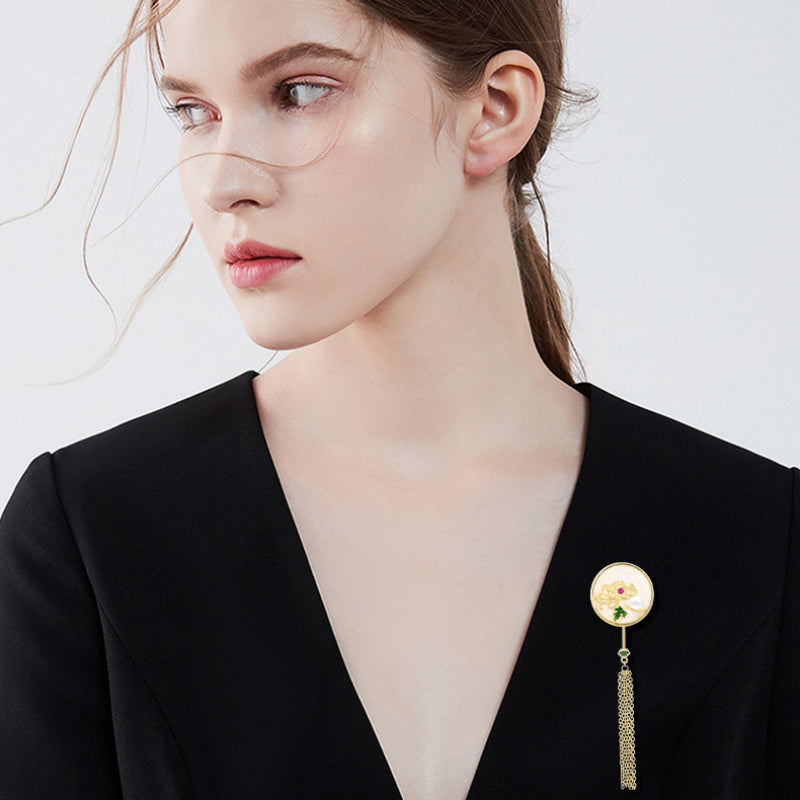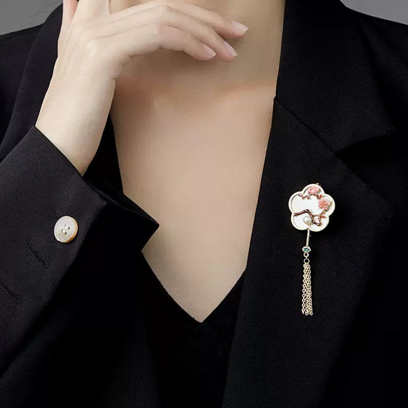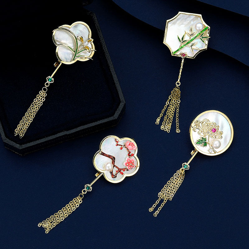 This vintage brooch features a Chinese traditional design with orchid and bamboo motifs, perfect for Hanfu attire. The tassel adds an elegant touch to the corsage or scarf clip.