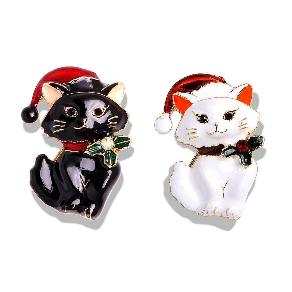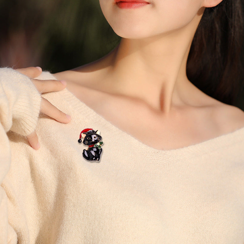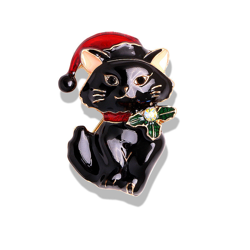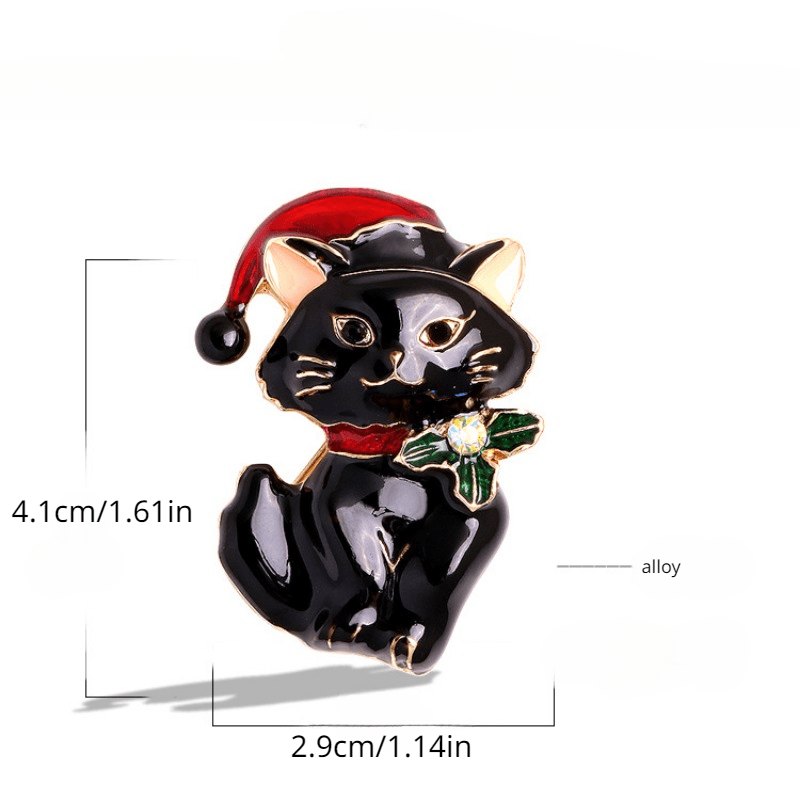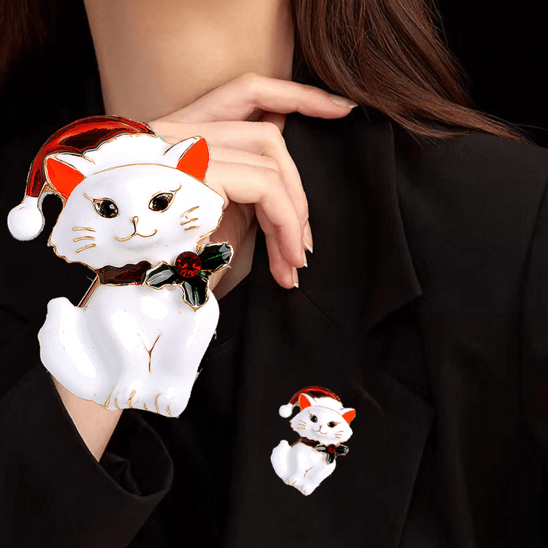 This adorable Christmas cat brooch pin is a perfect accessory for your shirt, suit, cardigan, or scarf. It adds a festive touch to your outfit. The pin features a cute cat design with holiday colors.
