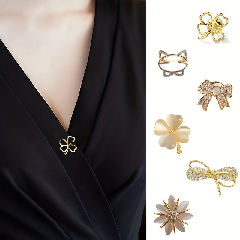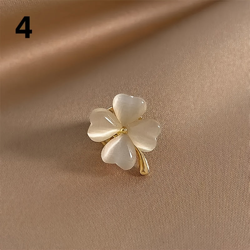 Add a touch of elegance to your outfit with this beautiful Clover Brooch Pin. Perfect for adorning collars, lapels, shirts, suits, cardigans, shawls, scarves, and even as a buckle on your breast.