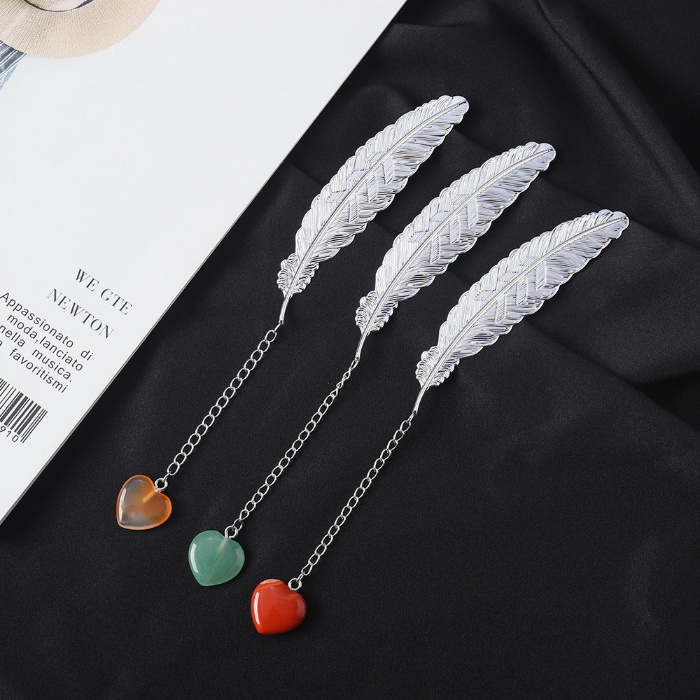 Add a touch of elegance to your reading experience with this crystal heart feather bookmark. Perfect for office decor or as a thoughtful stationery gift.