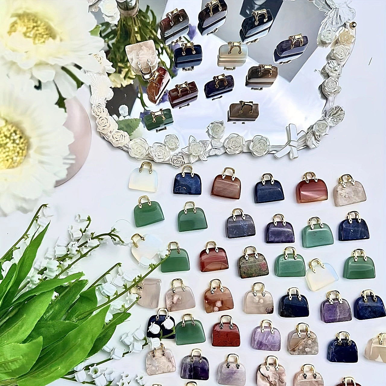 This mini bag carvings are made from natural crystals, perfect for healing energy and table decoration.